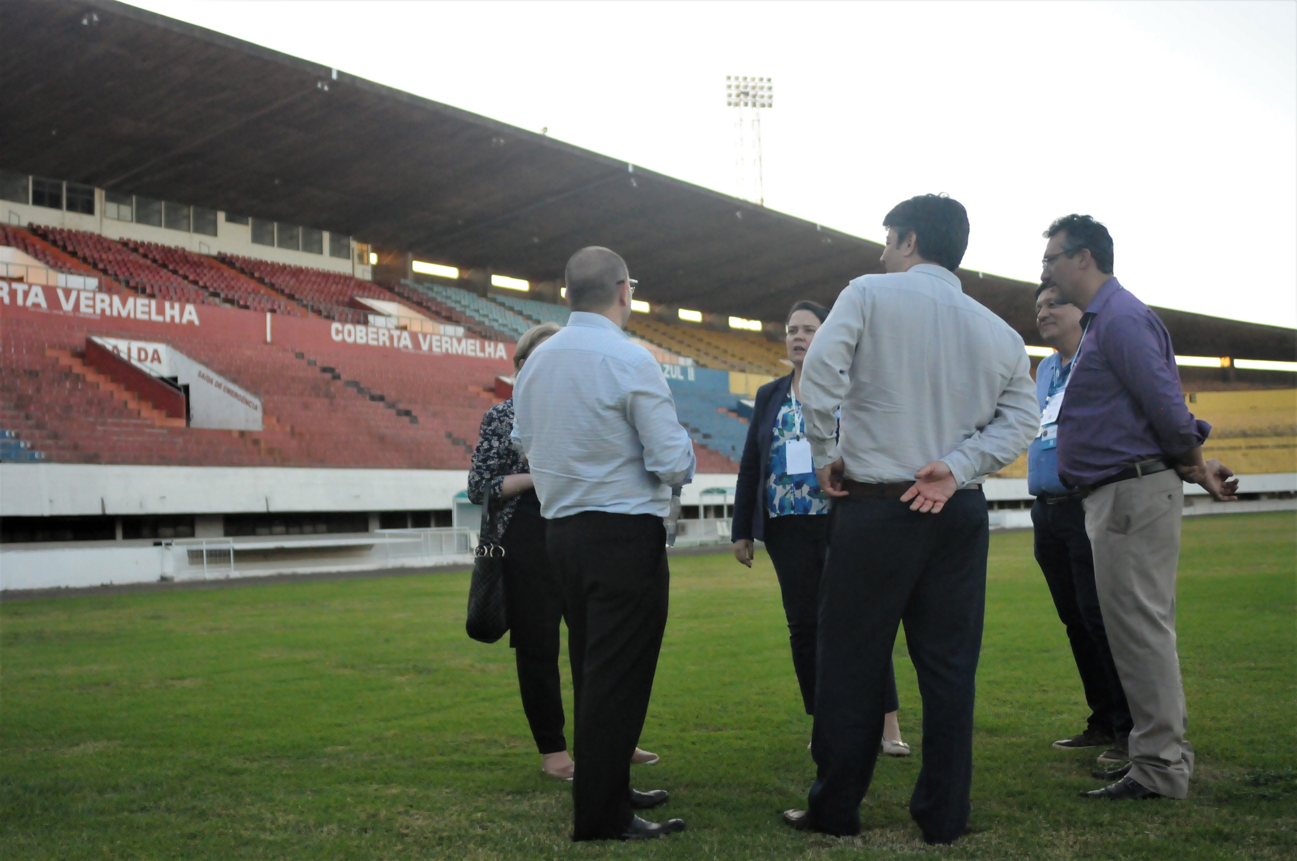 Na terça-feira (23), o reitor Marcelo Turine e a vice-reitora Camila Ítavo apresentaram as instalações da UFMS para o secretário de educação superior do Ministério da Educação (MEC), Arnaldo Barbosa de Lima Júnior. Também estavam presentes no Estádio Universitário Pedro Pedrossian, o Morenão, os responsáveis pela Pró-Reitoria de Administração e Infraestrutura (Proadi), Augusto Malheiros, Pró-Reitoria de Extensão, Cultura e Esporte (Proece), Marcelo Fernandes Pereira, e Pró-Reitoria de Planejamento, Orçamento e Finanças (Proplan), Dulce Maria Tristão.