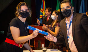 “Agradeço aos nossos gestores pela doação e parabenizo a todos os residentes pela trajetória nesses dois anos, vocês foram heróis! Somos uma universidade pública, gratuita e de qualidade e, graças ao amor e à paixão de nossos servidores e acadêmicos, estamos mantendo nossas atividades em dia”, enfatizou o reitor Marcelo Turine. Ele também agradeceu aos parceiros da Universidade que possibilitam o desenvolvimento das atividades práticas dos programas, como a Prefeitura Municipal de Campo Grande, o Hospital Universitário Maria Aparecida Pedrossian (Humap-UFMS/Ebserh), o Hospital São Julião, a Apae e a Escola de Saúde Pública. “Estamos emocionados, pois fazia dois anos que não participávamos de uma solenidade presencial. Agradeço a Deus por termos a oportunidade de estarmos aqui, hoje, e aos residentes por terem confiado na UFMS”, disse.