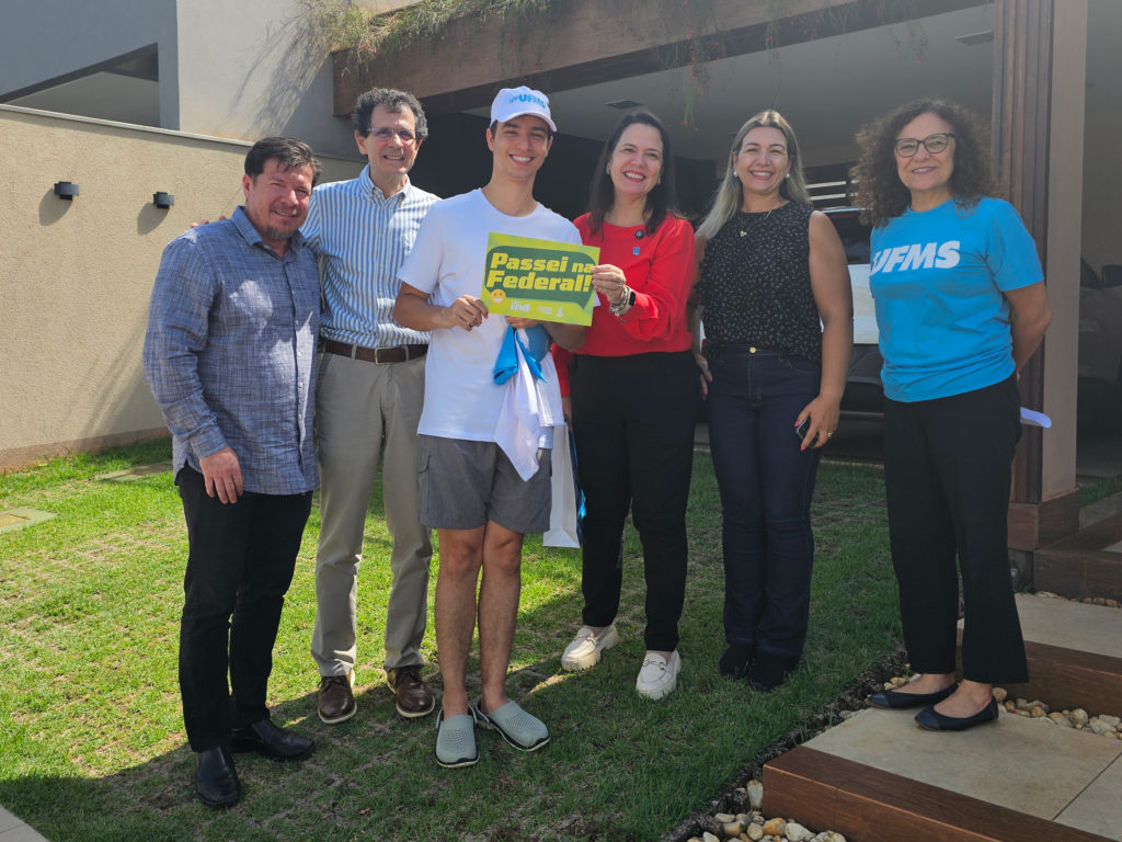 Entre os aprovados está Gabriel Araújo, que passou no curso de Direito da Faculdade de Direito por meio do PASSE UFMS e recebeu a visita da reitora e do vice-reitor em sua casa. “É muita felicidade ter a recompensa dos seus estudos e ver que valeu a pena estudar o ano inteiro. Estou muito feliz de receber essa notícia assim, é uma notícia incrível que vai fazer meus próximos cinco anos muito felizes”, celebrou.
