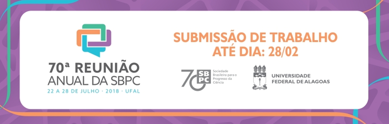 Estão abertas as inscrições para a 70ª Reunião Anual da Sociedade Brasileira para o Progresso da Ciência (SBPC), que será realizada de 22 a 28 de julho de 2018 na Universidade Federal de Alagoas em Maceió (AL). O tema será “Ciência, Responsabilidade Social e Soberania”.
