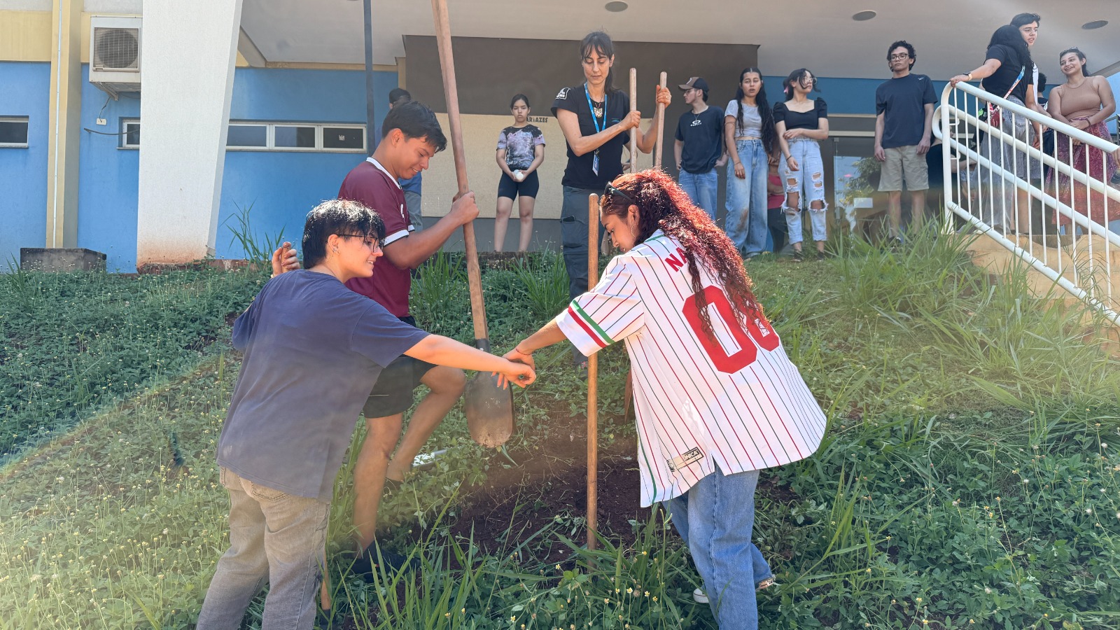 Entre as ações programadas, o Instituto de Biociências promoveu o plantio de mudas de espécies nativas nos arredores da unidade, incentivando o contato direto com a prática acadêmica desde o primeiro dia. A professora Letícia Couto, fundadora e coordenadora do Laboratório Ecologia da Intervenção, destacou o significado da atividade. “Muitos estudantes nunca tinham manuseado ferramentas simples ou conhecido as espécies nativas. A ideia é que acompanhem o crescimento dessas plantas ao longo do curso. Será simbólico e importante para que desenvolvam o cuidado e o sentimento de pertencimento”, explicou.