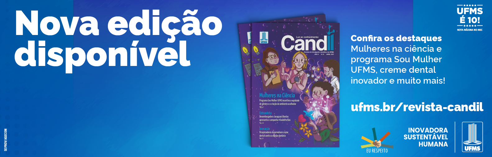 Está disponível a 20ª edição da Candil, revista de divulgação científica da Universidade, com destaque de capa para o programa Sou Mulher UFMS, que promove a equidade de gênero na ciência e a criação de ambiente acolhedor na Instituição. Pela primeira vez, a publicação também terá versões em inglês e espanhol.