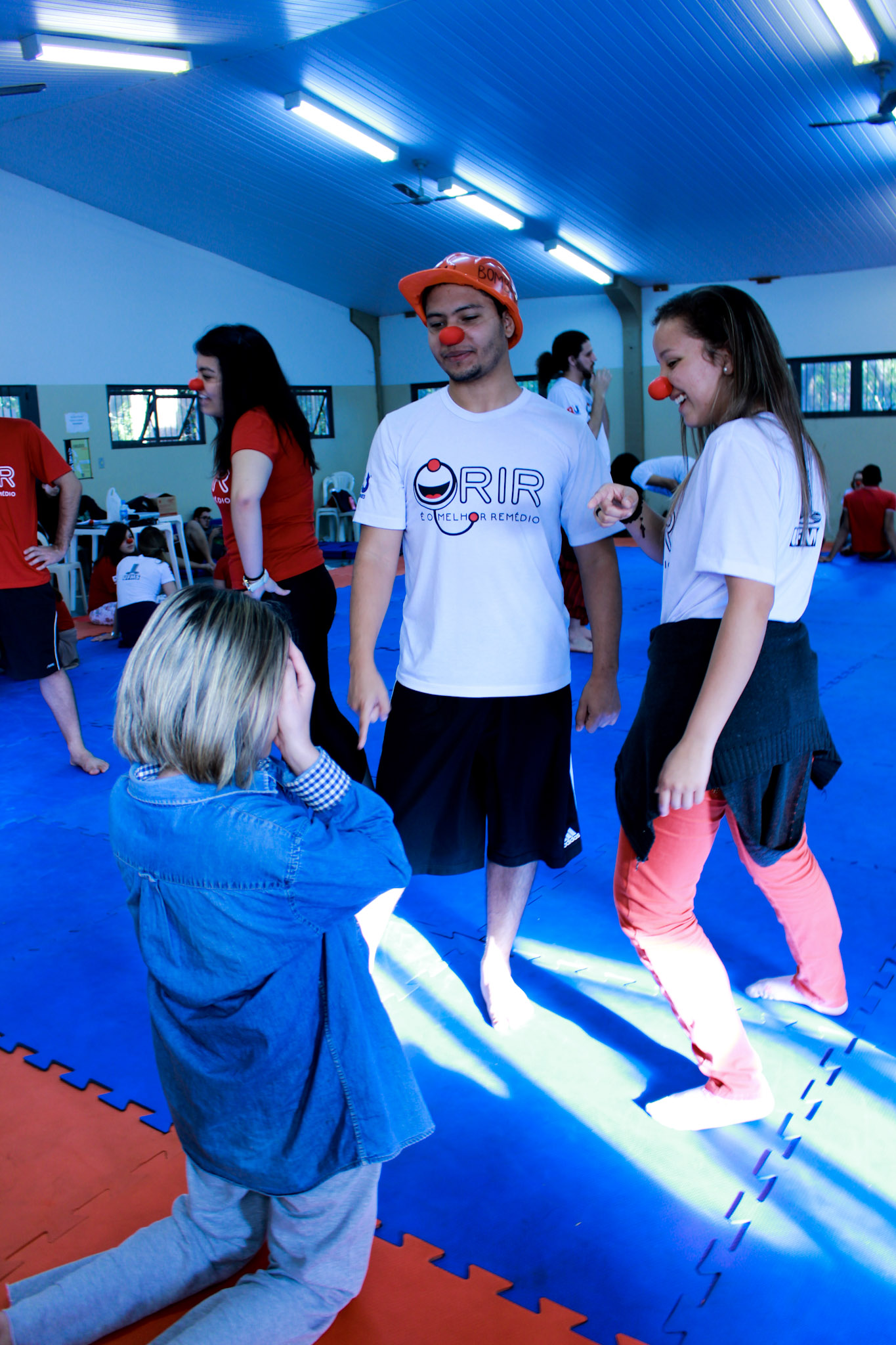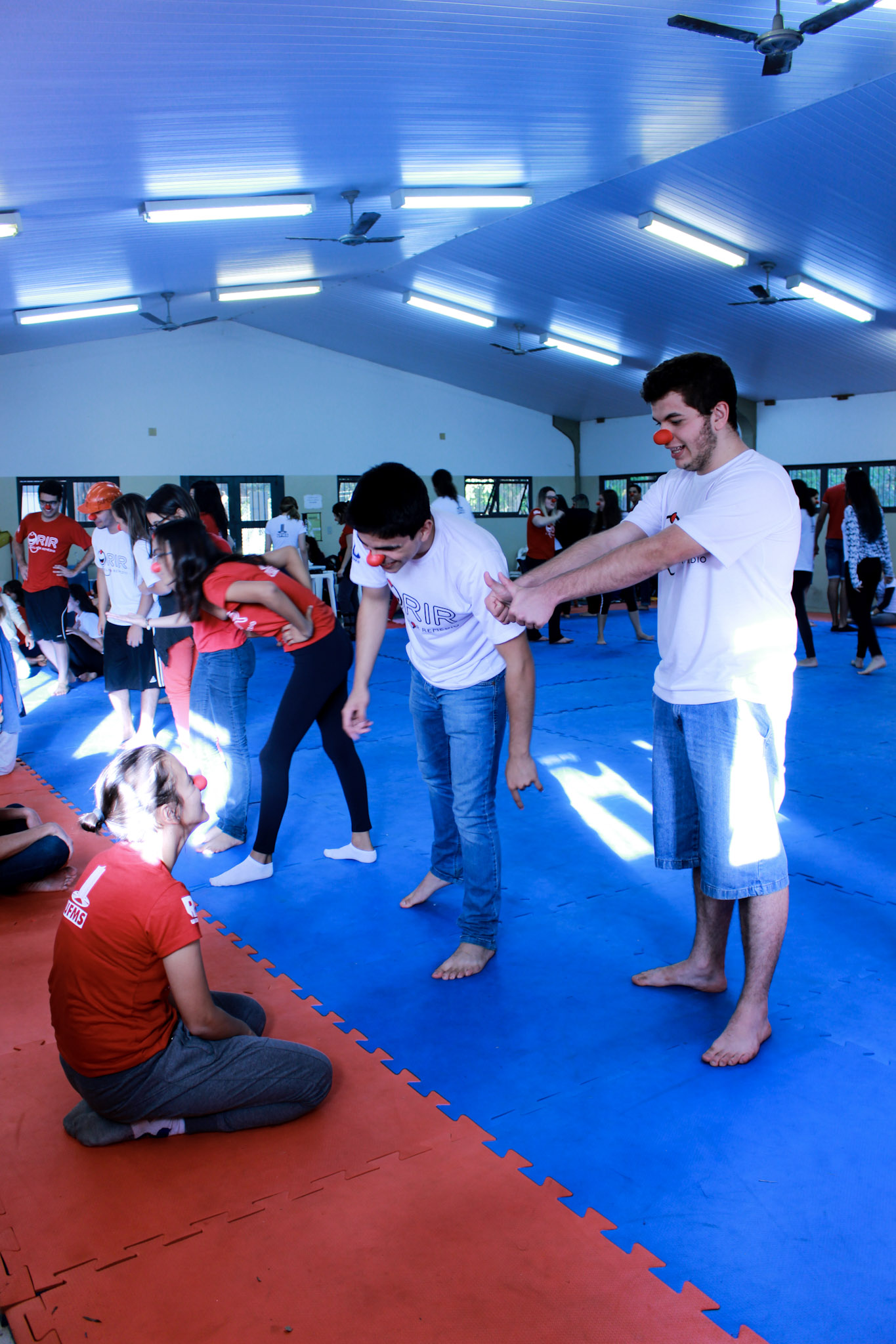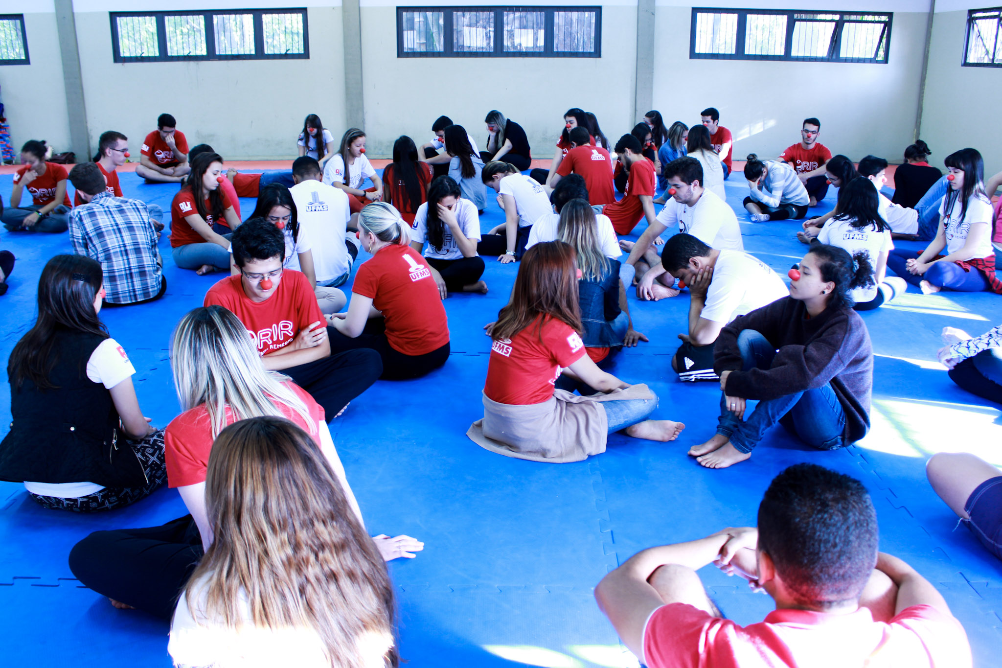 Os coordenadores organizam então reuniões semanais para todo o primeiro semestre, onde são feitas capacitações diversas relacionadas à desinibição, ao sorriso, à integração, improviso, criatividade, aos sentimentos e à musicalização, entre outros. “Especificamente a música é uma das atividades que fazem bastante diferença dentro do hospital, se bobear mais da metade da nossa atuação lá dentro é com música. Então fazemos reuniões para prepará-los para saberem cantar músicas de criança, de sertanejo raiz que os idosos adoram, música gospel…”, explica Priscilla.