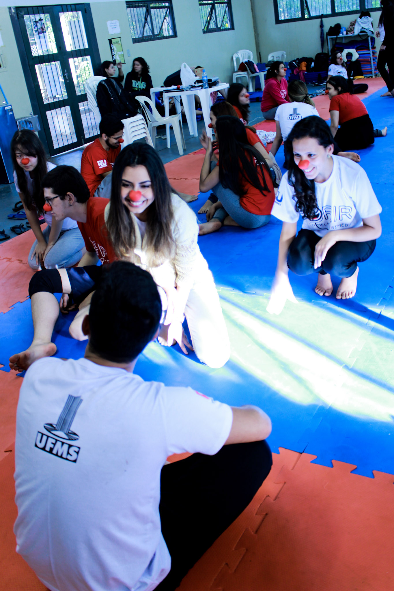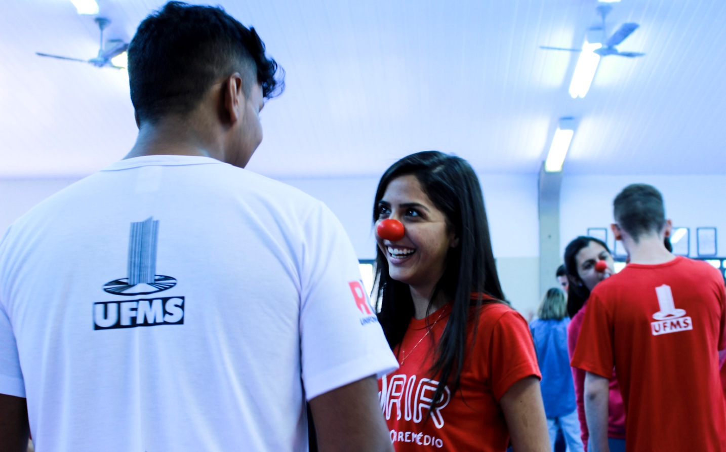 Há seis anos um projeto de extensão tem levado acadêmicos da área da saúde para um “atendimento” diferenciado no Hospital Universitário Maria Aparecida Pedrossian (HUMAP). Com um jaleco branco, mas com o rosto colorido, adereços engraçados e um nariz de palhaço, os calouros e veteranos visitam periodicamente algumas alas do hospital em busca do riso dos pacientes.
