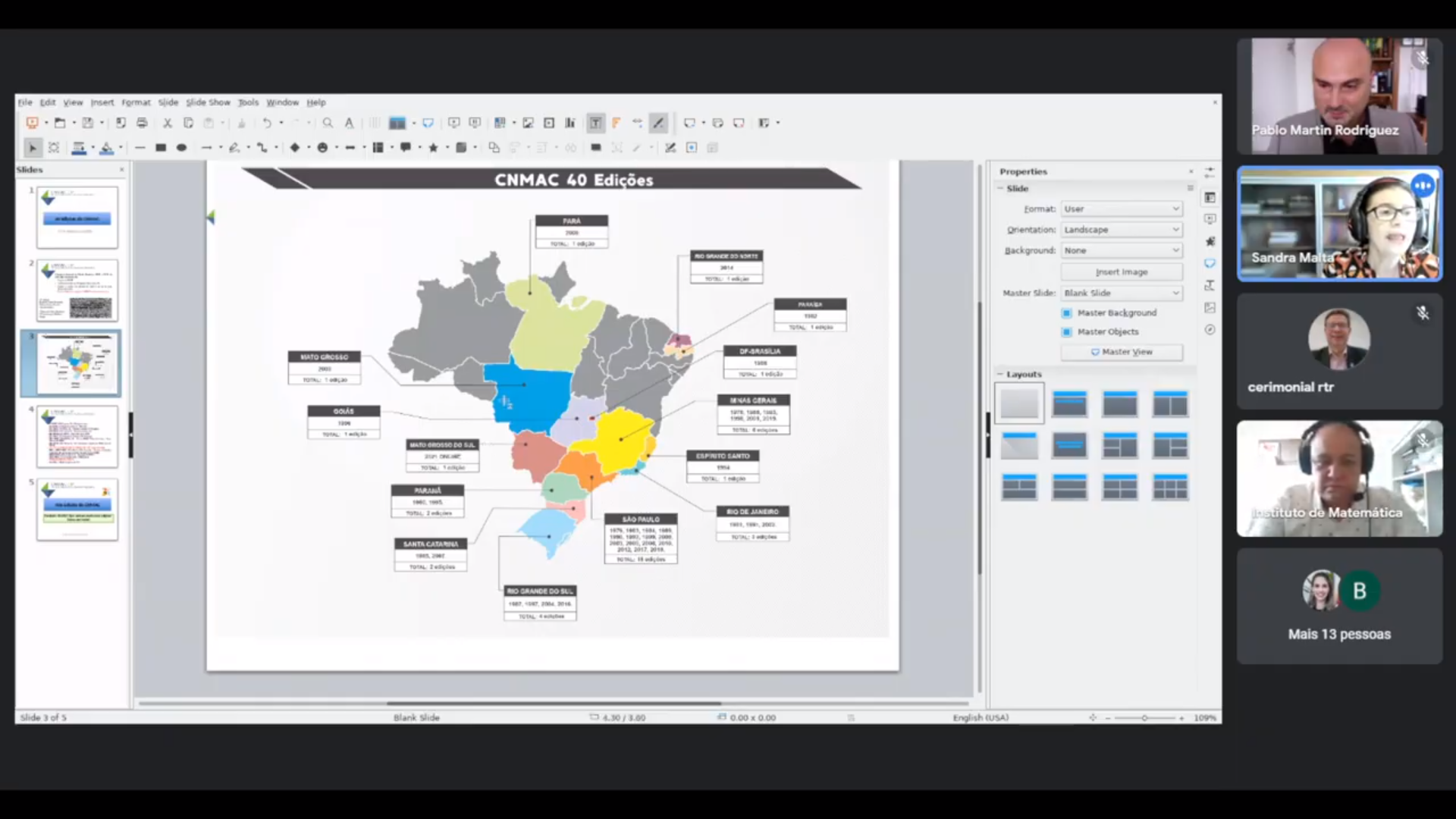 O presidente da Sociedade Brasileira de Matemática Aplicada e Computacional, Pablo Martin Rodriguez, também comentou sobre o momento difícil enfrentado nesta edição, por conta da pandemia, parabenizou os participantes que não mediram esforços para participarem do evento e prestou solidariedade aos que tiveram alguma perda neste período ou que estão doentes.
