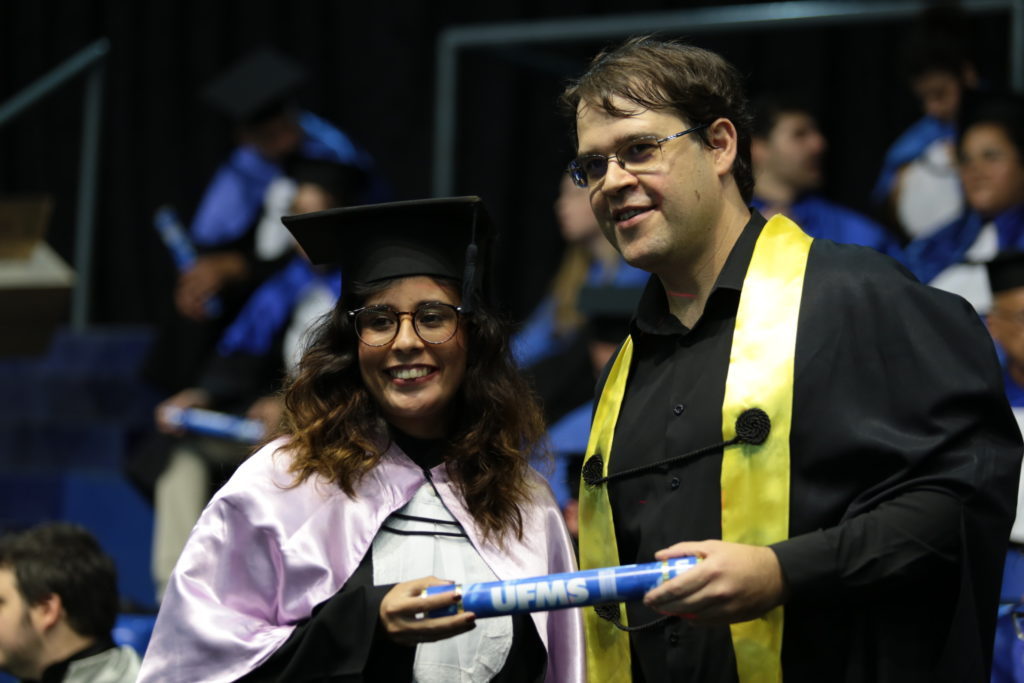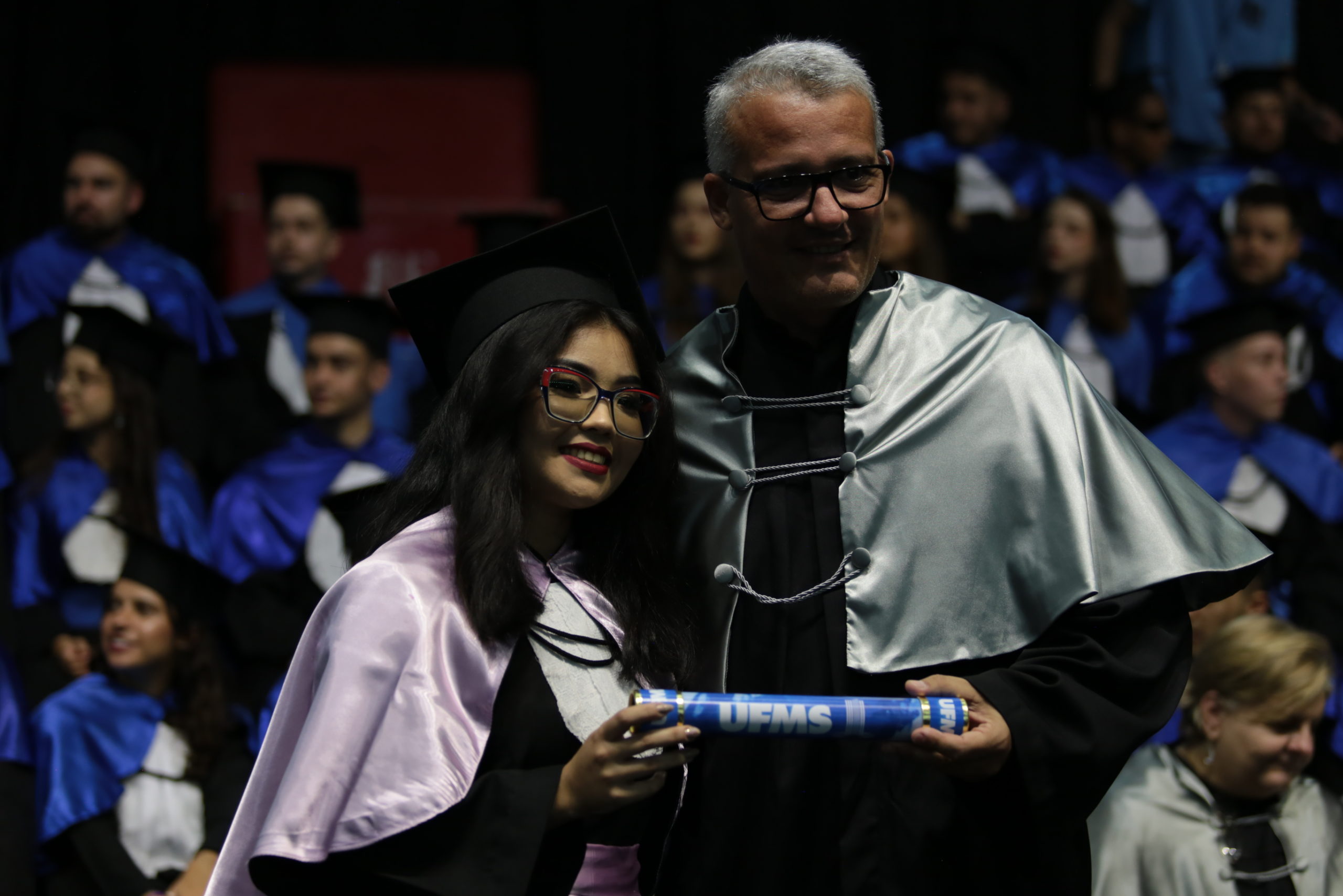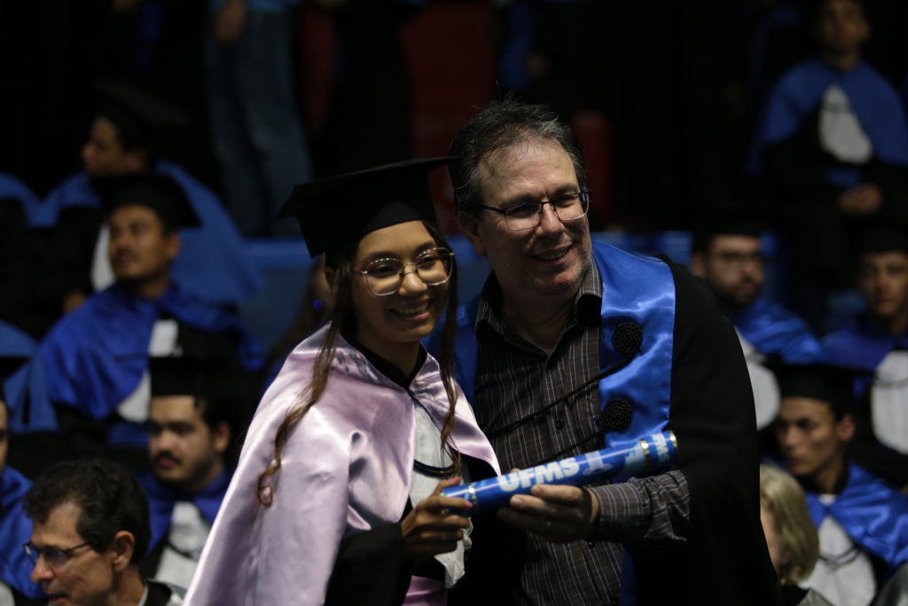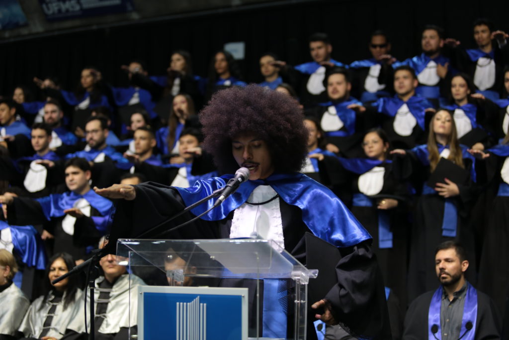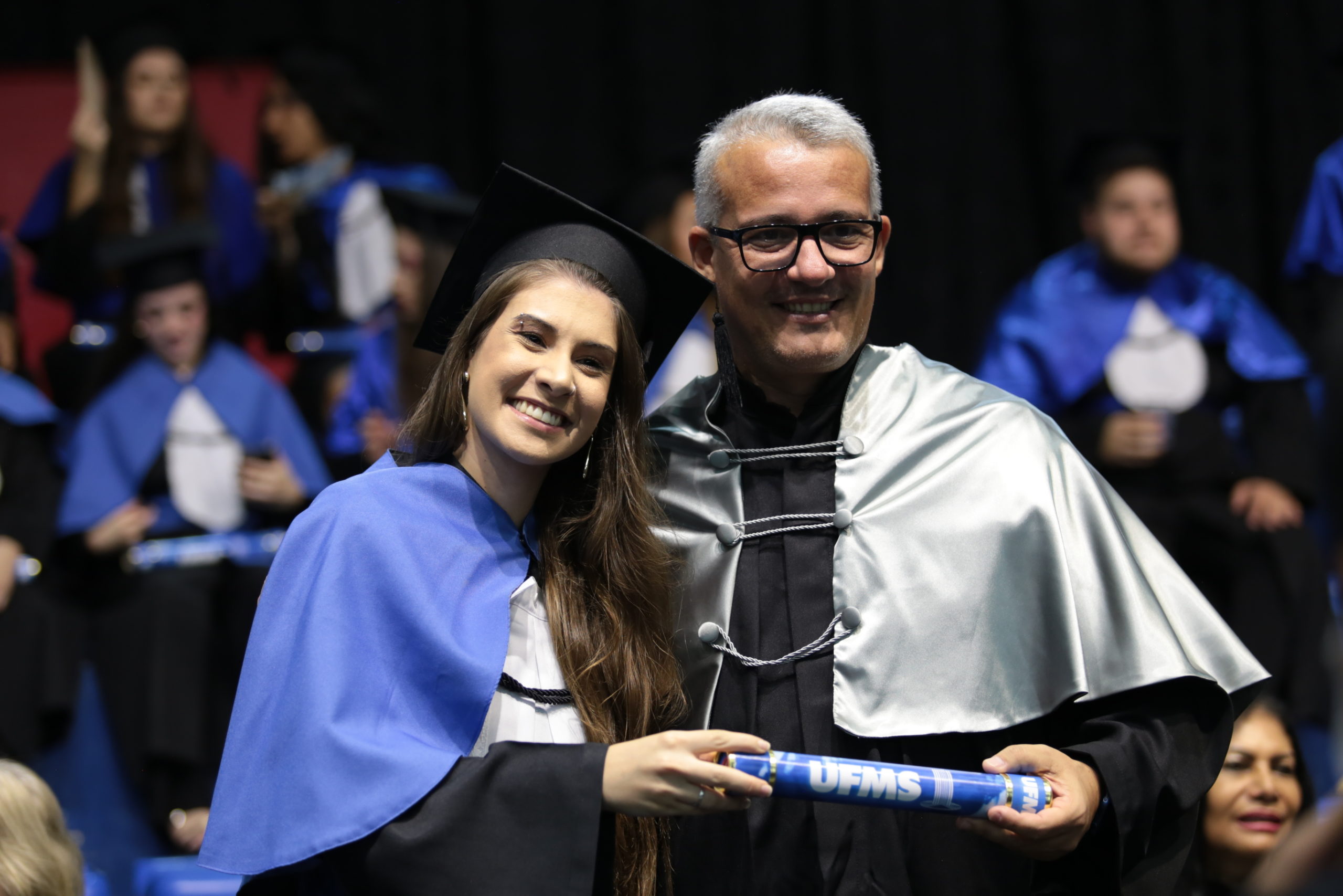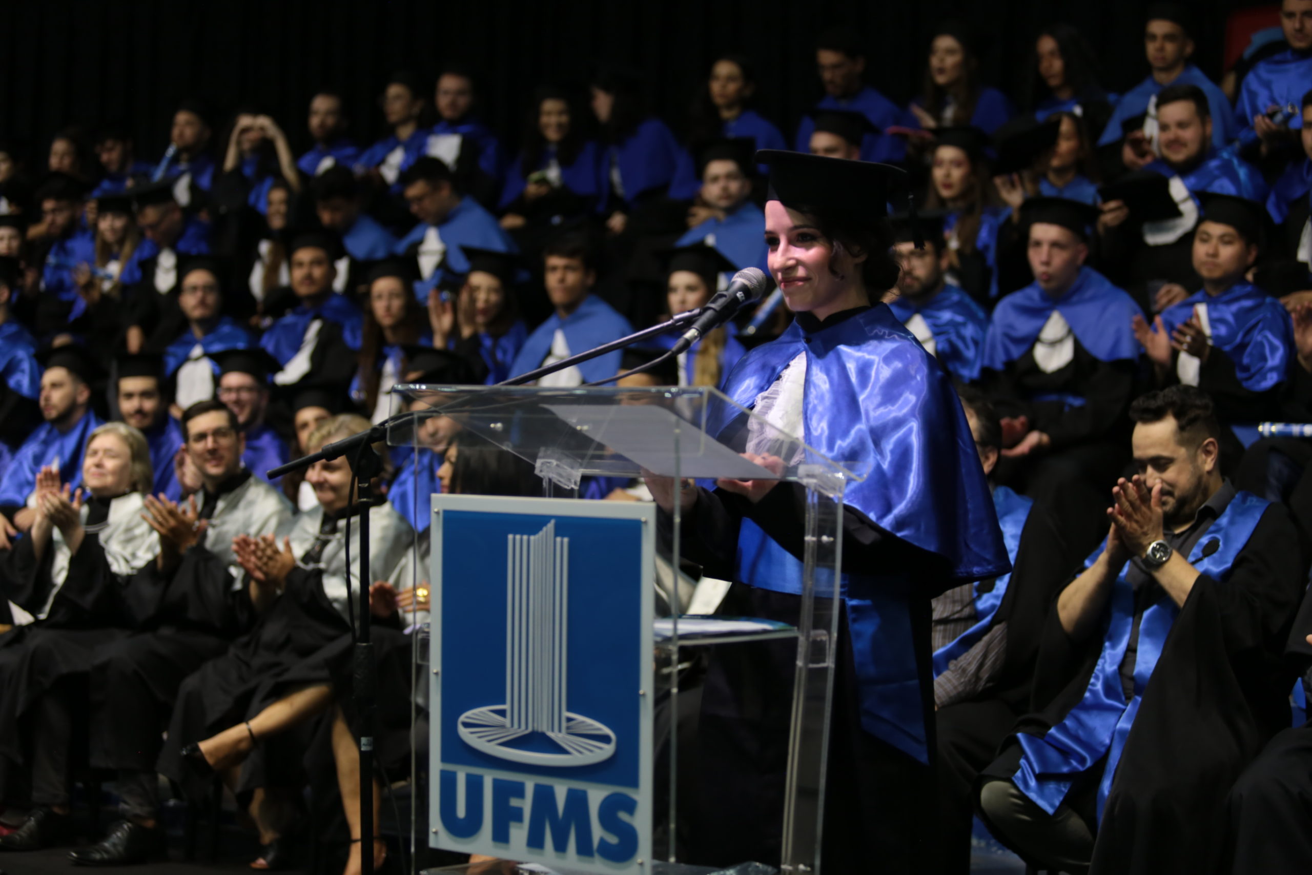 O vice-reitor Albert Schiaveto desejou sucesso na nova caminhada e lembrou sobre o poder de educação na vida de cada um dos novos profissionais. “Vocês acordaram hoje estudantes e vão dormir profissionais, acordaram fazendo parte de uma família de mais de 40 mil estudantes e vão dormir fazendo parte da família de egressos. Temos 45 anos de federalização, mais de 75 mil egressos e vamos dobrar esse número em poucos anos, pois a UFMS cresceu e tem transformado nosso Estado e País. A educação muda as nossas vidas e os mais novos profissionais são os responsáveis por transformar o mundo em que vivemos. A UFMS continua aqui e vocês vão sair para o mercado de trabalho e o sucesso de vocês é o nosso sucesso, a UFMS vai voar com o sucesso de vocês, onde estiverem. Sejam felizes e transformem a realidade!”.