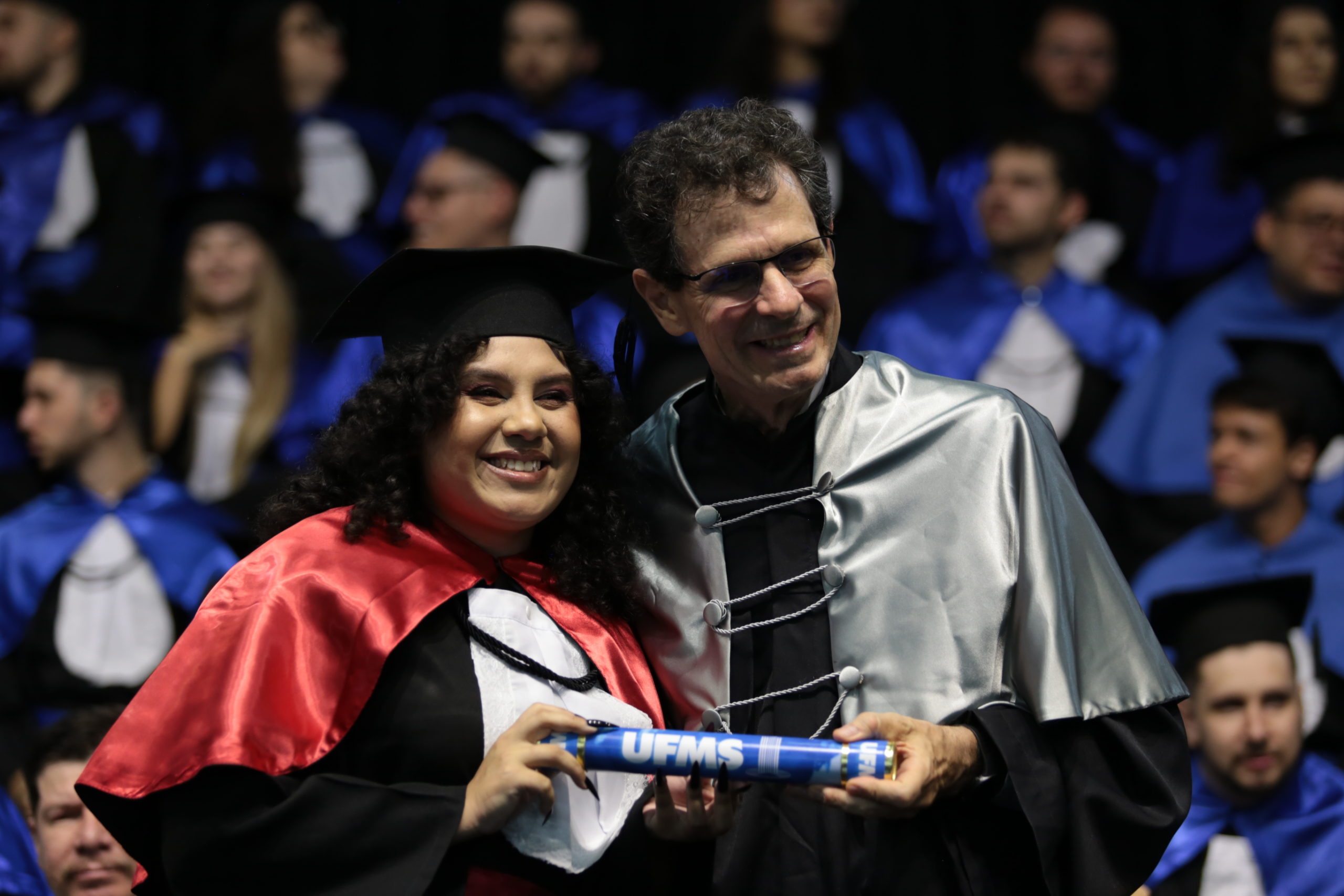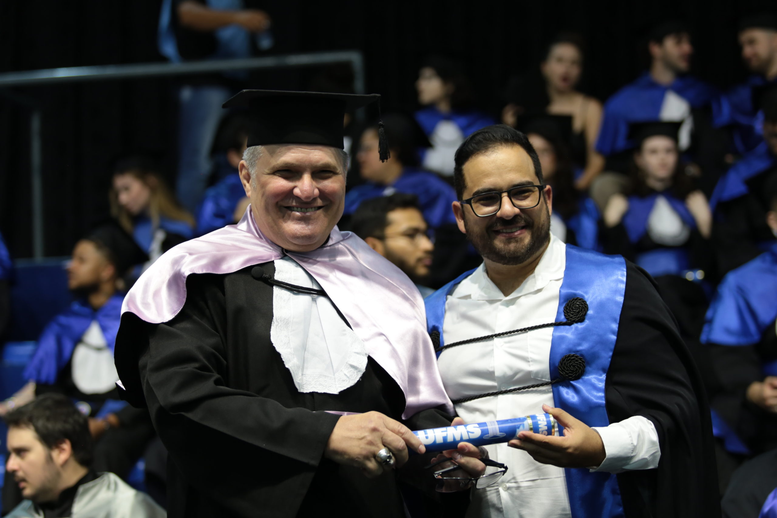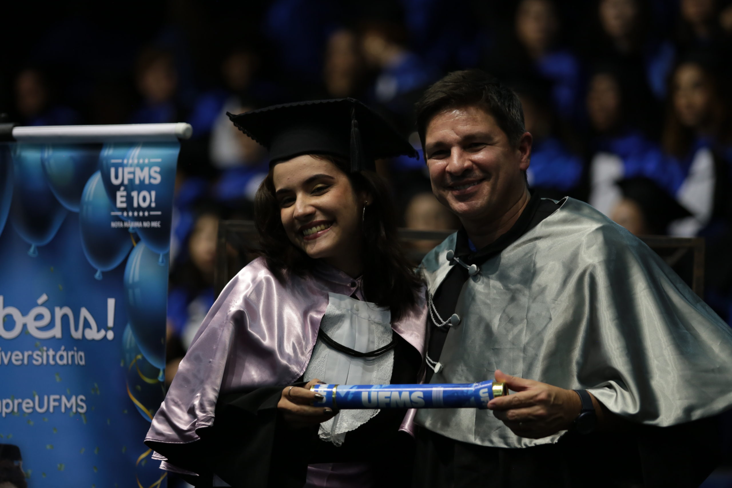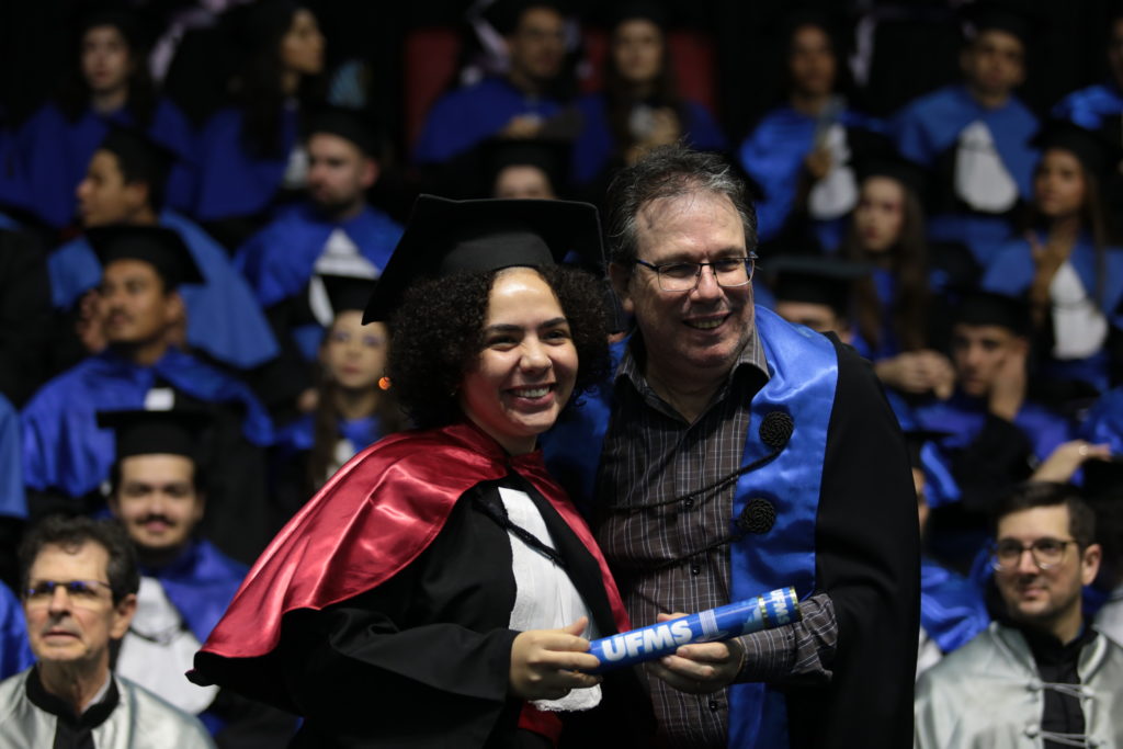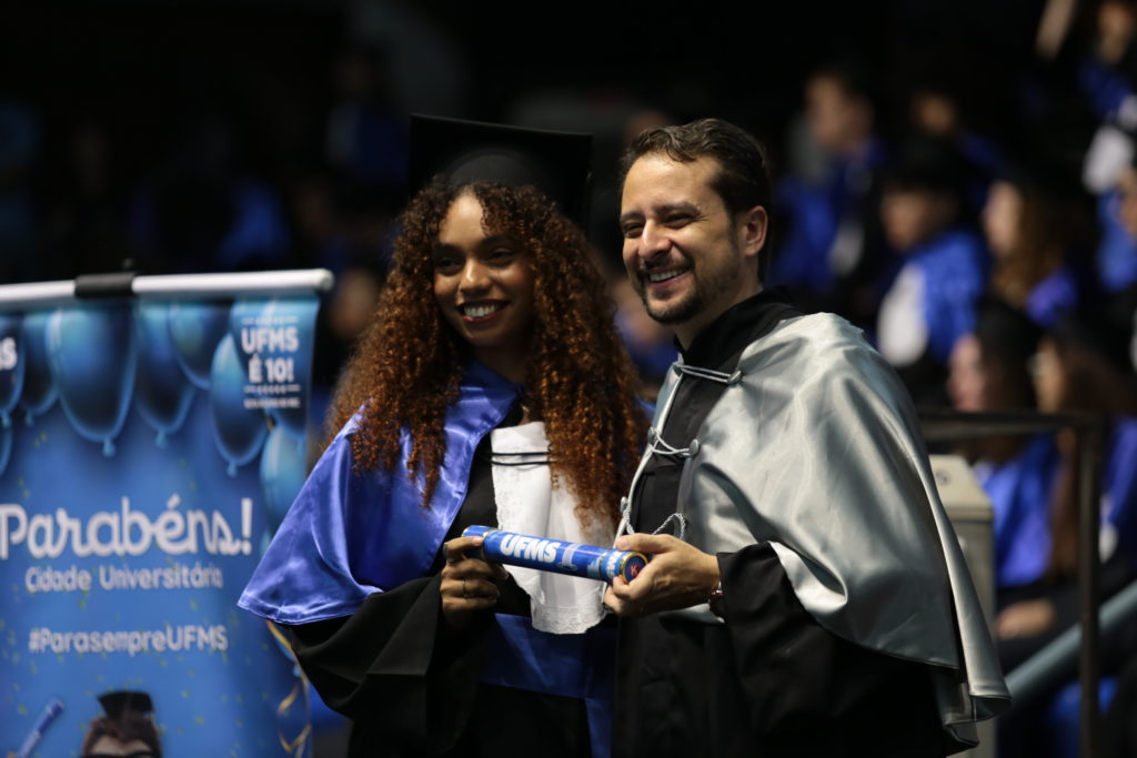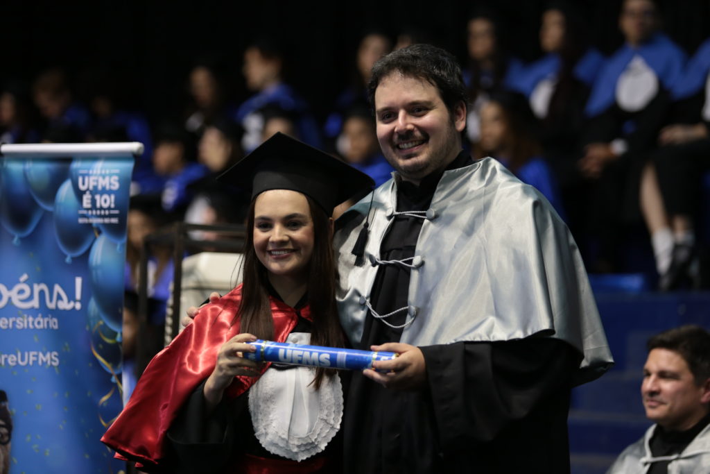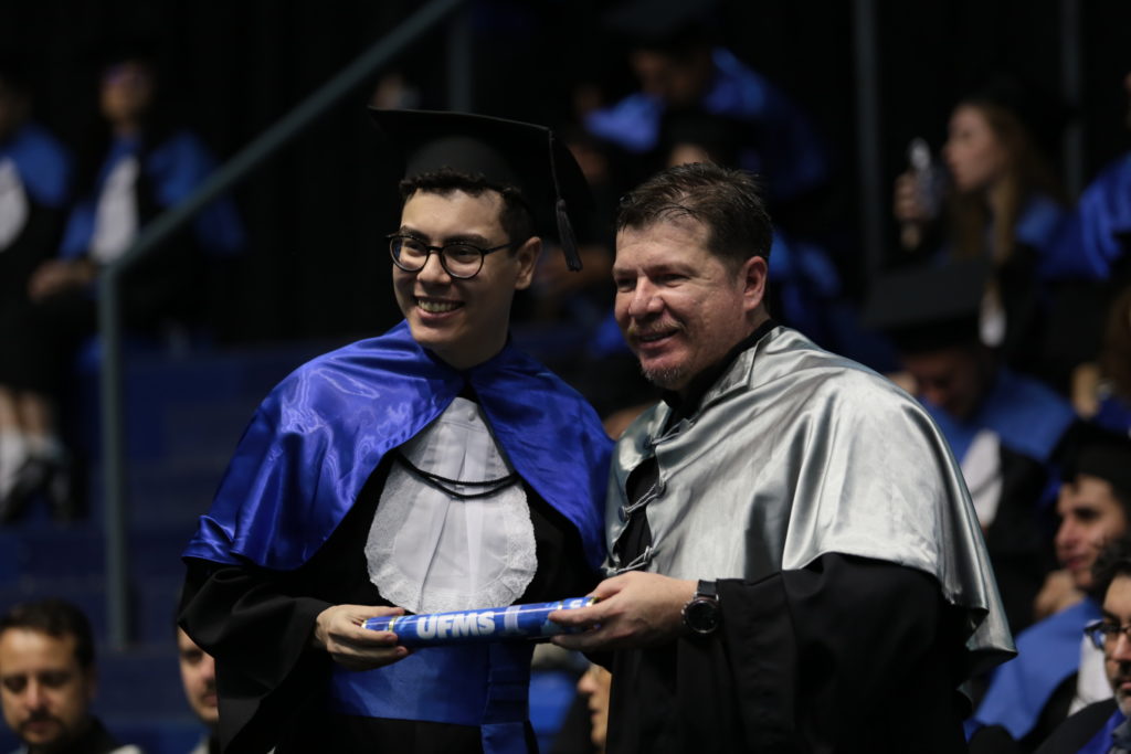 O vice-reitor Albert Schiaveto desejou sucesso na nova caminhada e lembrou sobre o poder de educação na vida de cada um dos novos profissionais. “Vocês acordaram hoje estudantes e vão dormir profissionais, acordaram fazendo parte de uma família de mais de 40 mil estudantes e vão dormir fazendo parte da família de egressos. Temos 45 anos de federalização, mais de 75 mil egressos e vamos dobrar esse número em poucos anos, pois a UFMS cresceu e tem transformado nosso Estado e País. A educação muda as nossas vidas e os mais novos profissionais são os responsáveis por transformar o mundo em que vivemos. A UFMS continua aqui e vocês vão sair para o mercado de trabalho e o sucesso de vocês é o nosso sucesso, a UFMS vai voar com o sucesso de vocês, onde estiverem. Sejam felizes e transformem a realidade!”.