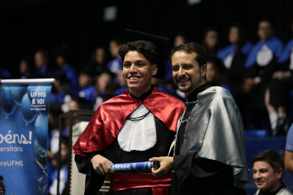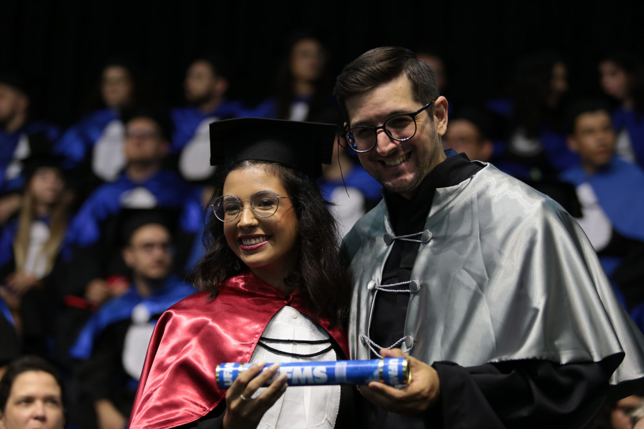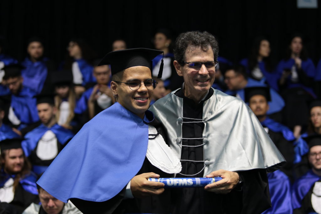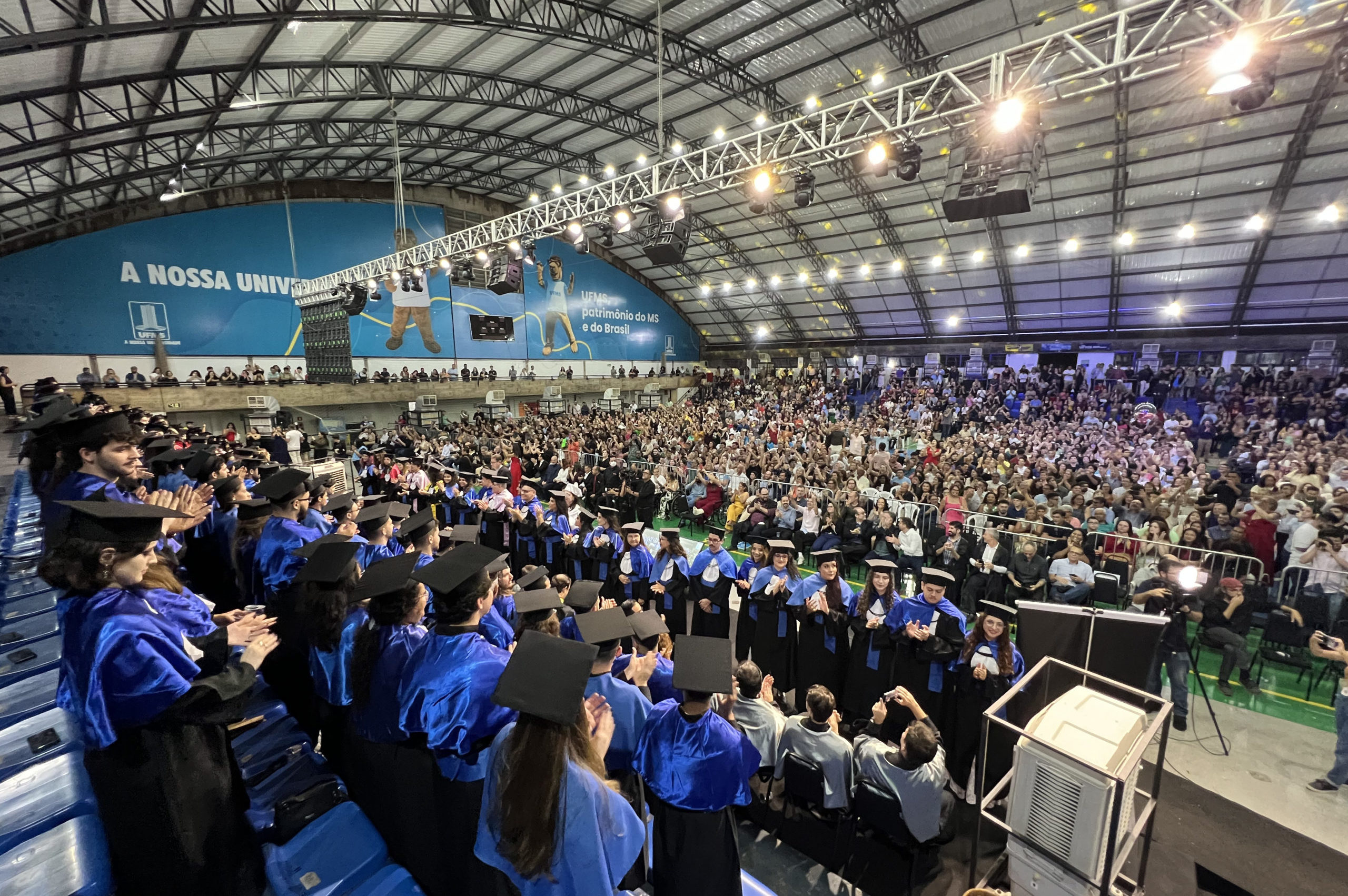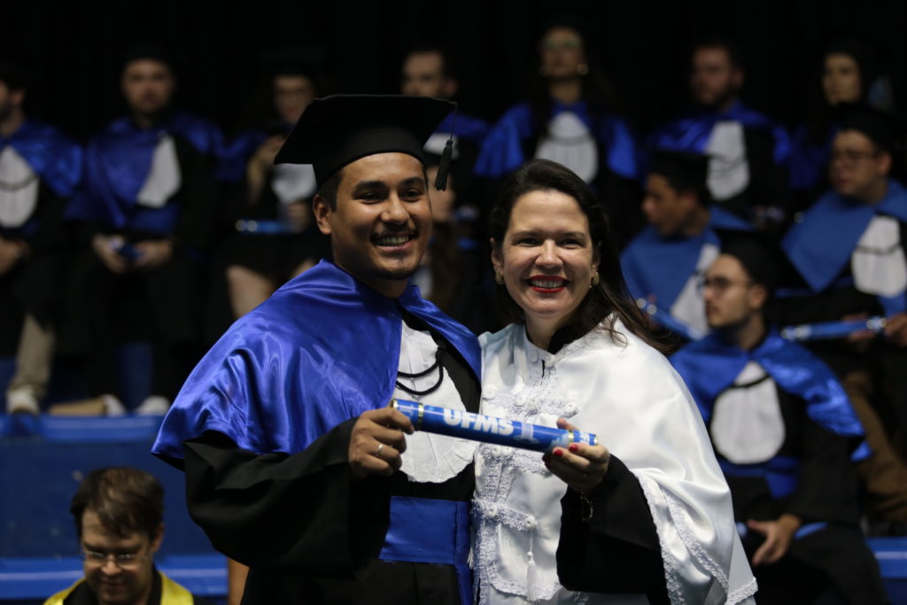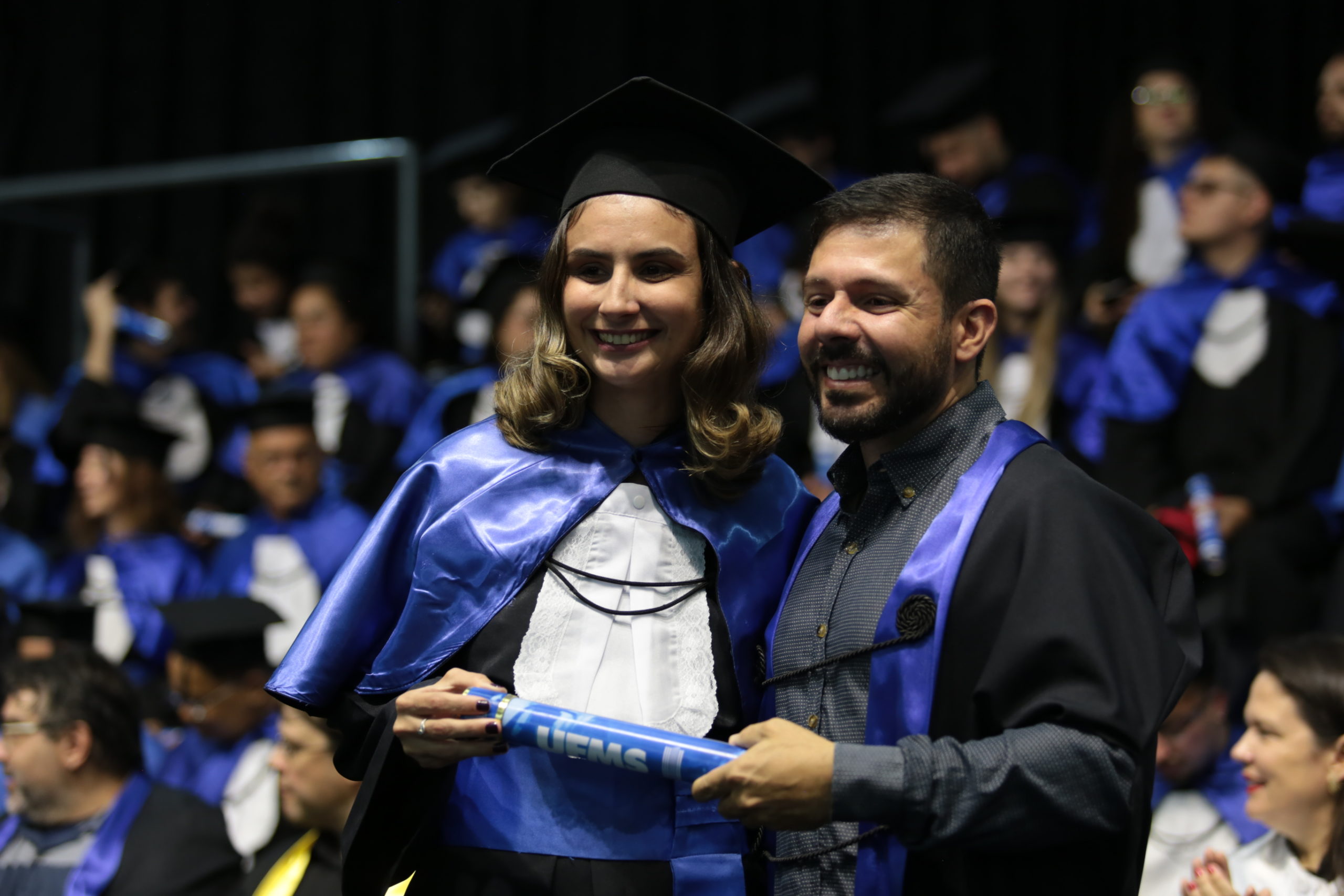 O vice-reitor Albert Schiaveto desejou sucesso na nova caminhada e lembrou sobre o poder de educação na vida de cada um dos novos profissionais. “Vocês acordaram hoje estudantes e vão dormir profissionais, acordaram fazendo parte de uma família de mais de 40 mil estudantes e vão dormir fazendo parte da família de egressos. Temos 45 anos de federalização, mais de 75 mil egressos e vamos dobrar esse número em poucos anos, pois a UFMS cresceu e tem transformado nosso Estado e País. A educação muda as nossas vidas e os mais novos profissionais são os responsáveis por transformar o mundo em que vivemos. A UFMS continua aqui e vocês vão sair para o mercado de trabalho e o sucesso de vocês é o nosso sucesso, a UFMS vai voar com o sucesso de vocês, onde estiverem. Sejam felizes e transformem a realidade!”.