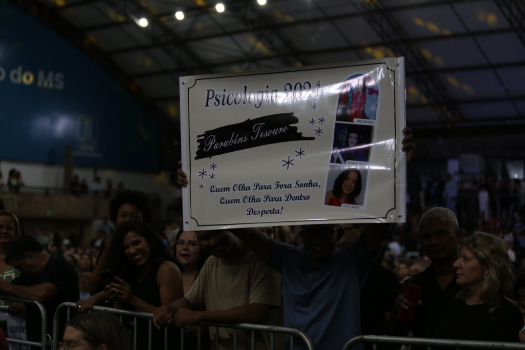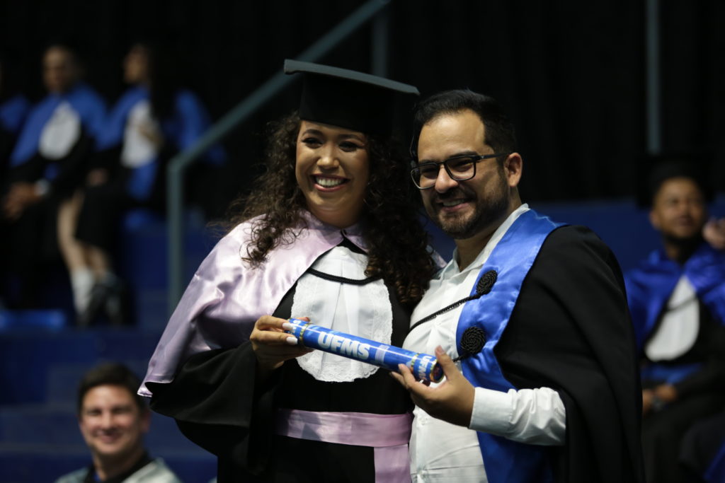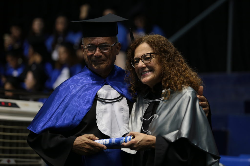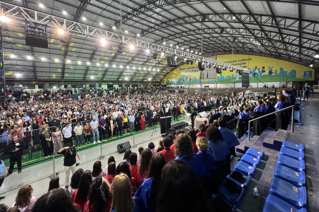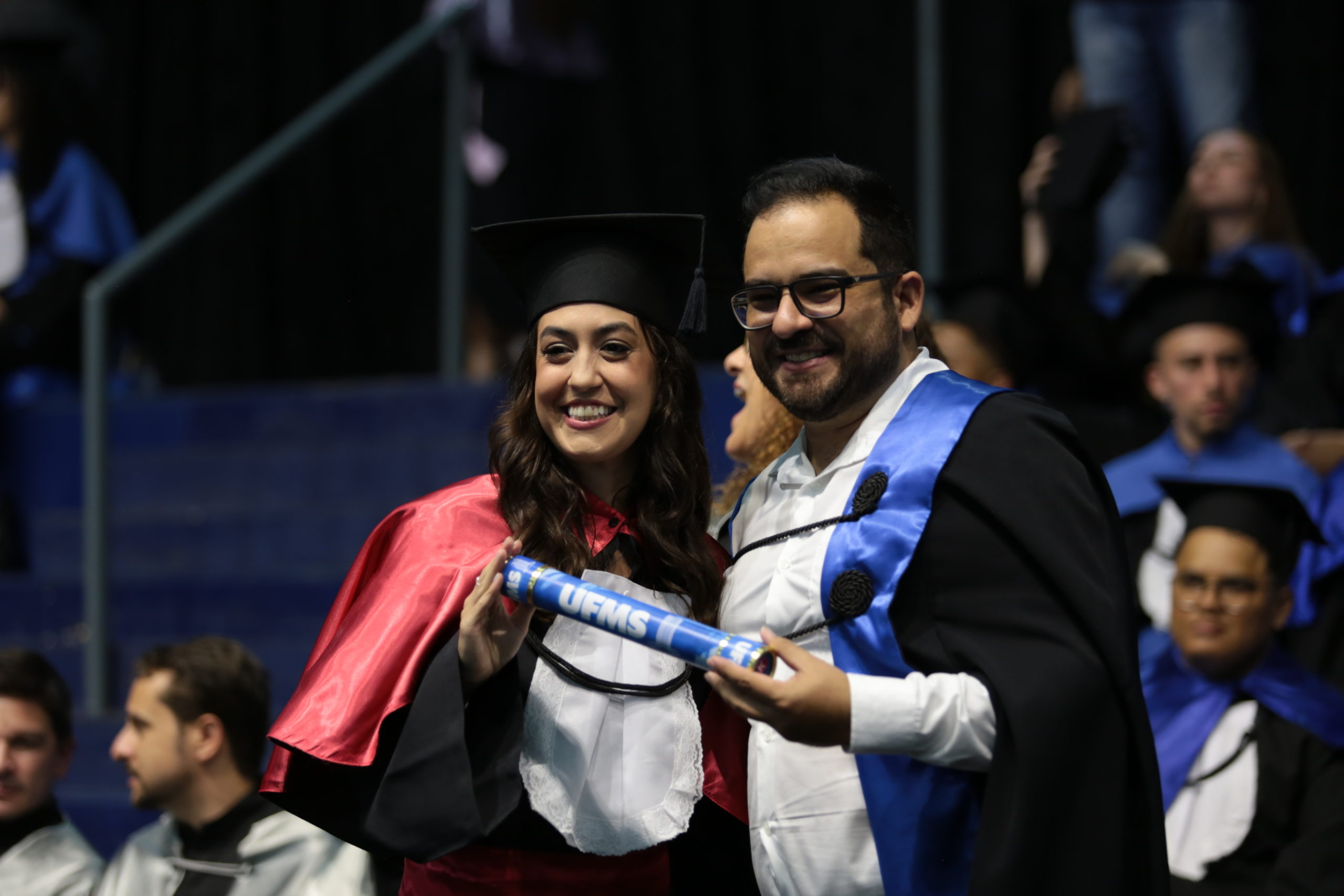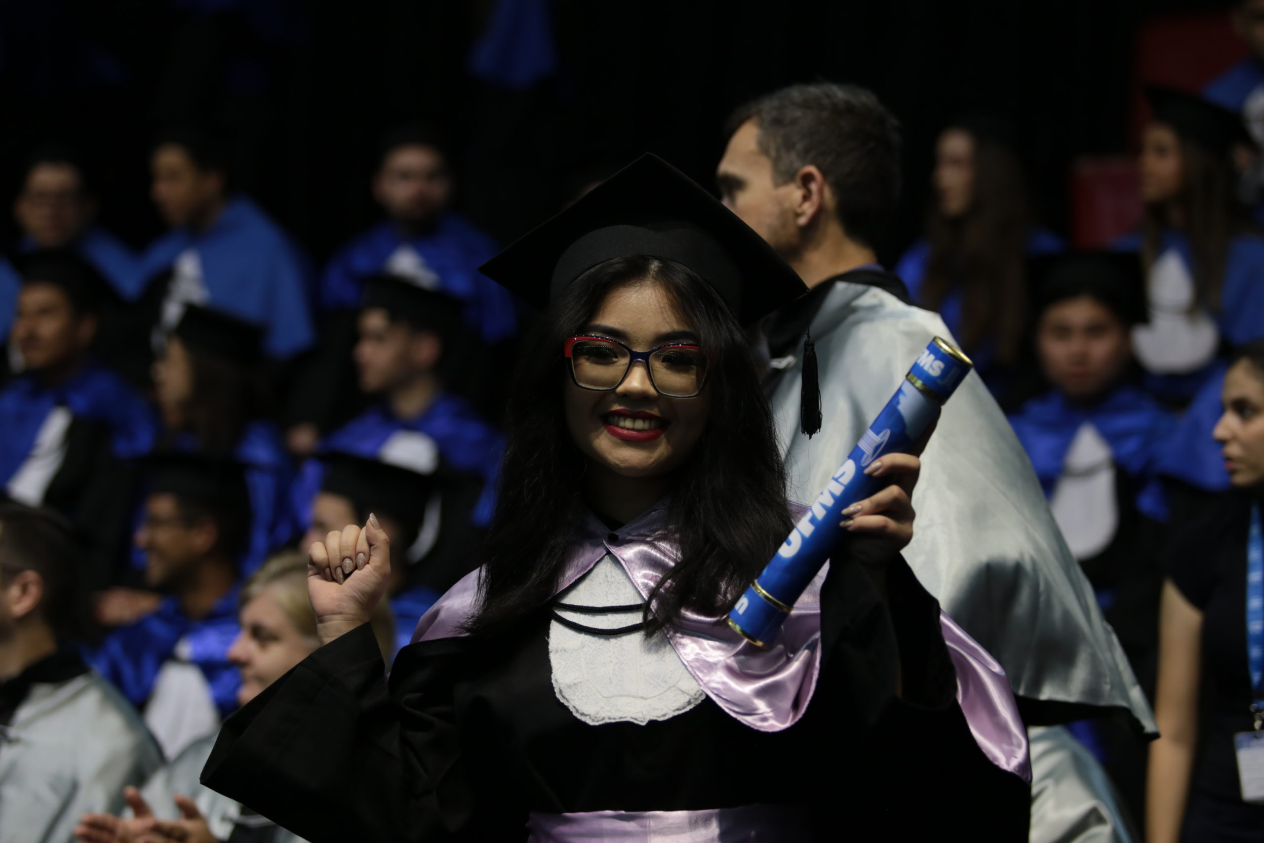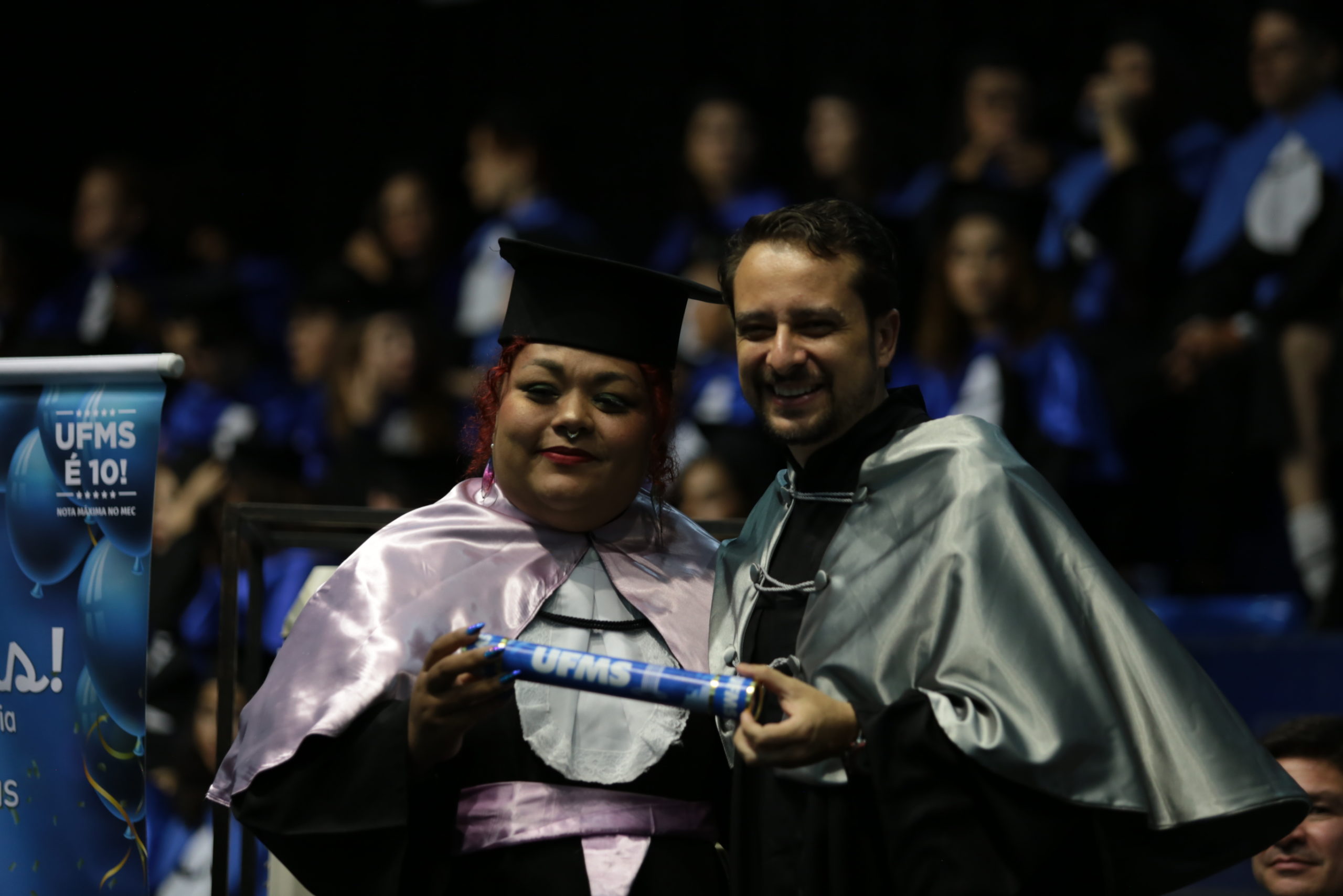 O vice-reitor Albert Schiaveto desejou sucesso na nova caminhada e lembrou sobre o poder de educação na vida de cada um dos novos profissionais. “Vocês acordaram hoje estudantes e vão dormir profissionais, acordaram fazendo parte de uma família de mais de 40 mil estudantes e vão dormir fazendo parte da família de egressos. Temos 45 anos de federalização, mais de 75 mil egressos e vamos dobrar esse número em poucos anos, pois a UFMS cresceu e tem transformado nosso Estado e País. A educação muda as nossas vidas e os mais novos profissionais são os responsáveis por transformar o mundo em que vivemos. A UFMS continua aqui e vocês vão sair para o mercado de trabalho e o sucesso de vocês é o nosso sucesso, a UFMS vai voar com o sucesso de vocês, onde estiverem. Sejam felizes e transformem a realidade!”.