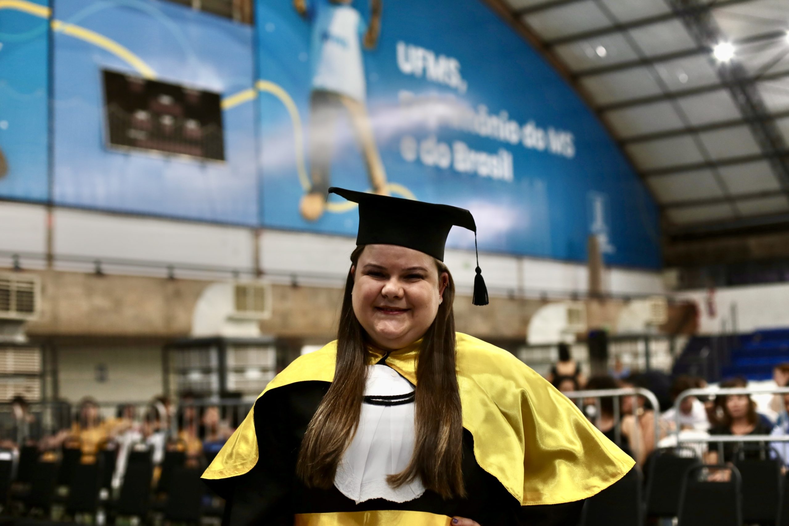 A formanda do Curso de Matemática do Inma Daiane Martins relatou o orgulho de encerrar um ciclo com a sensação de ter aproveitado todas as oportunidades oferecidas pela Universidade. “Estou muito feliz, agradeço por estar aqui e principalmente a UFMS, que nos apoiou durante a jornada. Estou muito feliz por me formar em Matemática. Foram anos muito difíceis, eu lutei bastante, fiz muitos projetos, tentei auxiliar o máximo os colegas, agregar no curso e no Instituto, me sinto realizada nesse momento, toda essa conquista, toda essa batalha valeu a pena”.