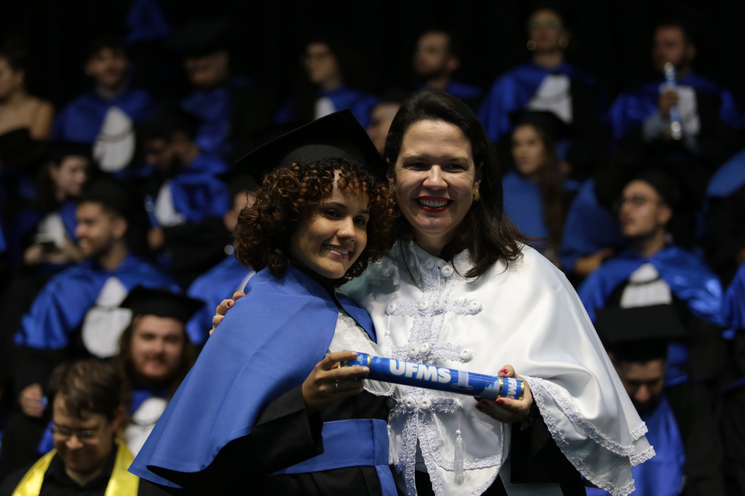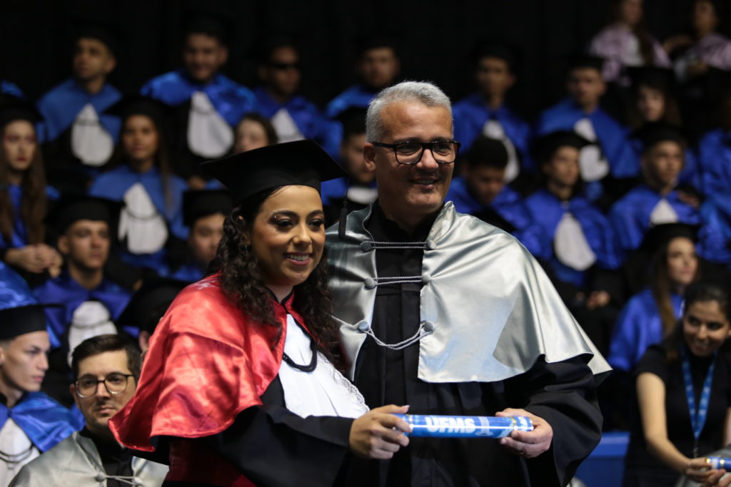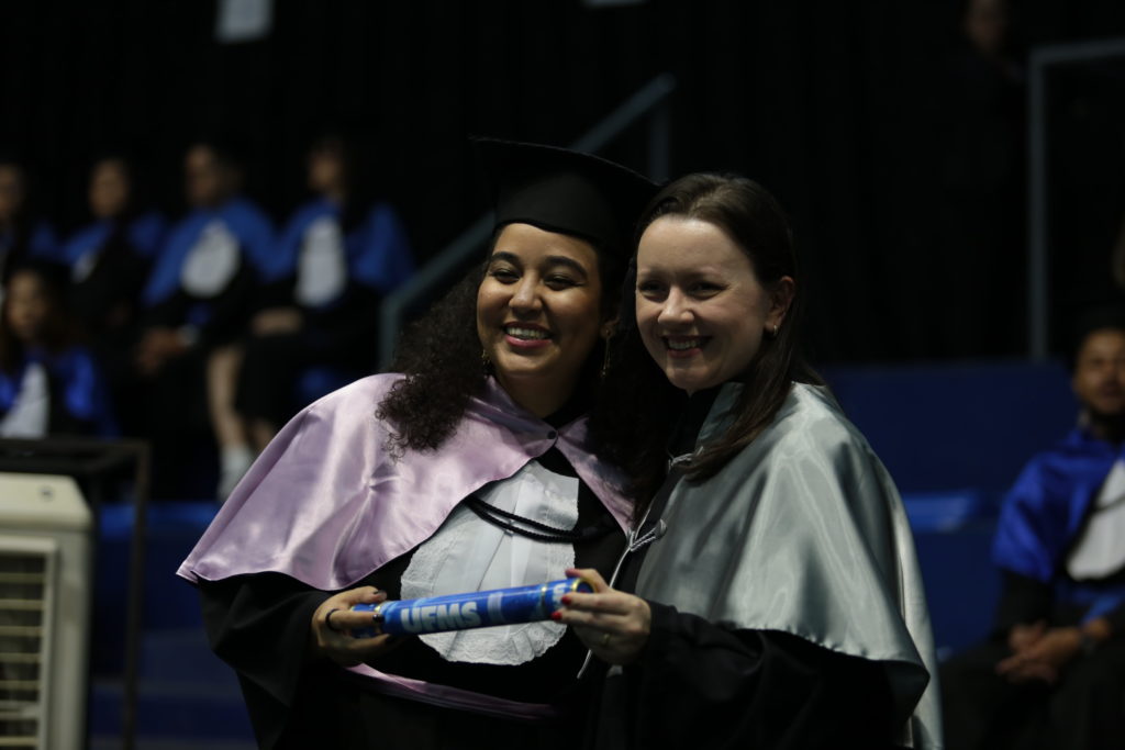A reitora Camila Ítavo destacou a missão dos novos profissionais e relembrou a cada um sobre honrar àqueles que os ajudaram. “Sempre defendam a Universidade pública. Tenho certeza que cada professor, professora, técnico e técnica são melhores por causa de vocês. O compromisso que assumem hoje se traduz em missão e disponibilidade, nunca se esqueçam que tiveram a oportunidade de estudar em uma Universidade pública, gratuita, inclusiva e de qualidade, nunca se esqueçam das pessoas que aplaudem cada um de vocês. Sempre estejam disponíveis para ajudar, apoiar e ser a diferença. Sejam felizes e nunca se esqueçam de iluminar os colegas e abrir oportunidades. Levem o nosso nome sempre. Aqui tem um porto seguro, a casa é sempre de vocês”.