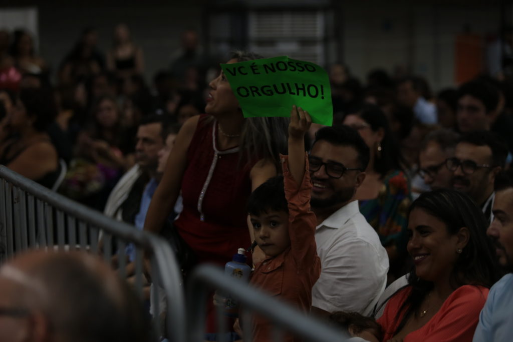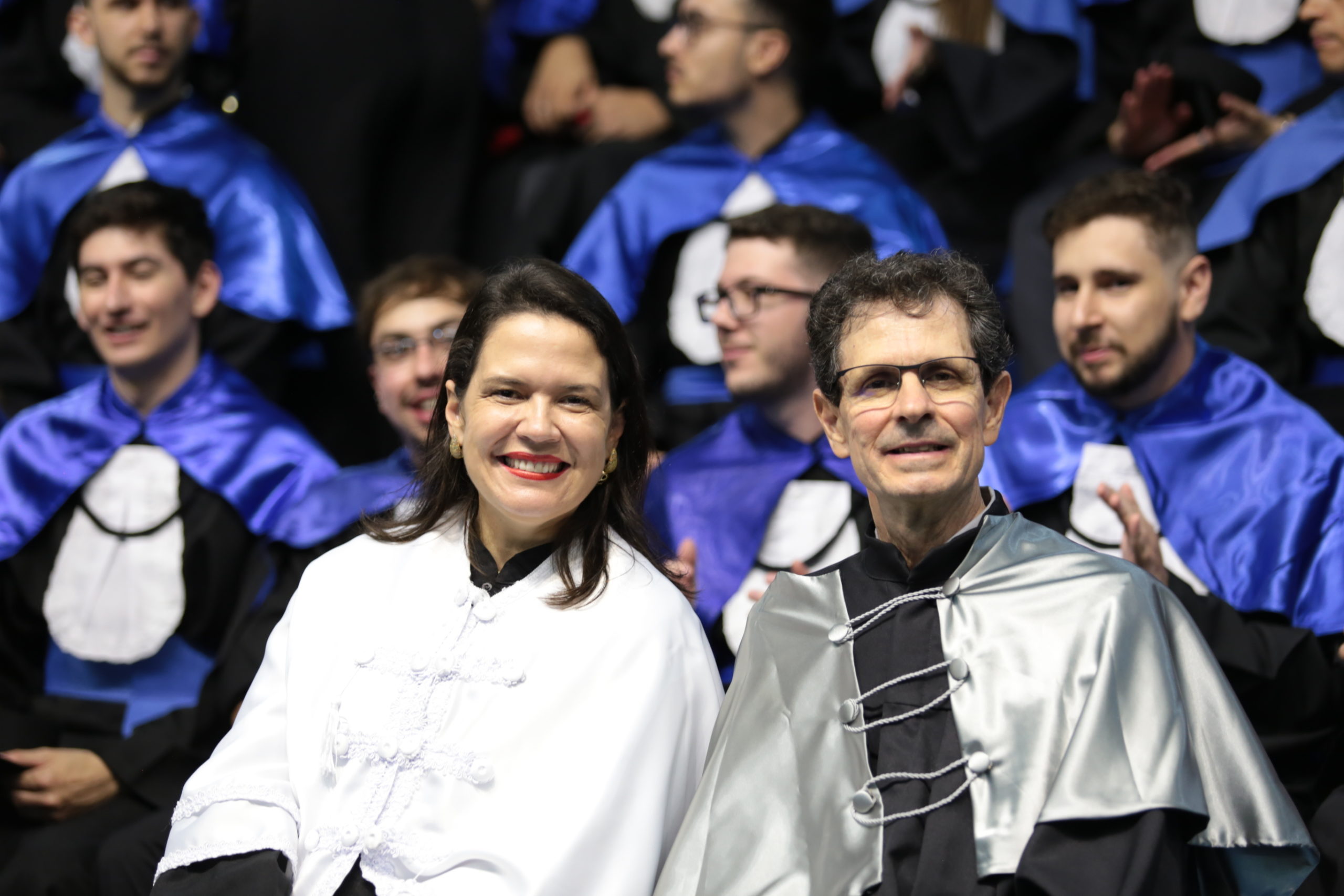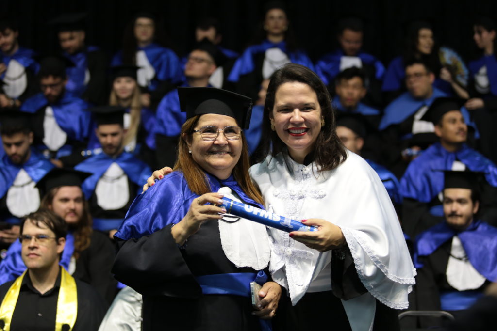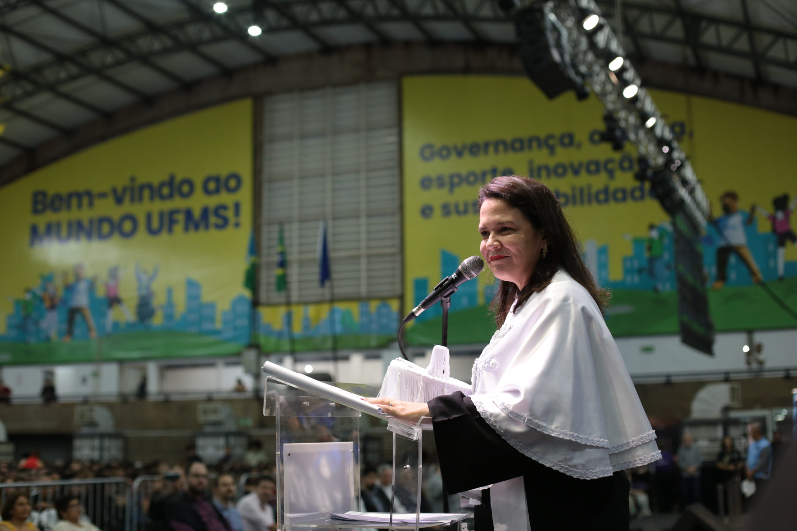 A reitora Camila Ítavo destacou a missão dos novos profissionais e relembrou a cada um sobre honrar àqueles que os ajudaram. “Sempre defendam a Universidade pública. Tenho certeza que cada professor, professora, técnico e técnica são melhores por causa de vocês. O compromisso que assumem hoje se traduz em missão e disponibilidade, nunca se esqueçam que tiveram a oportunidade de estudar em uma Universidade pública, gratuita, inclusiva e de qualidade, nunca se esqueçam das pessoas que aplaudem cada um de vocês. Sempre estejam disponíveis para ajudar, apoiar e ser a diferença. Sejam felizes e nunca se esqueçam de iluminar os colegas e abrir oportunidades. Levem o nosso nome sempre. Aqui tem um porto seguro, a casa é sempre de vocês”.