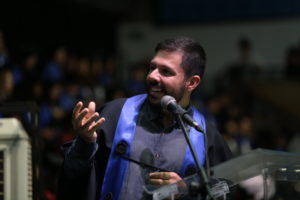 “Me sinto muito privilegiado ao ver o olhar de vocês ao receber o diploma. Quero agradecer a todos os familiares e amigos que estão presentes. É muito gratificante ver cada cartaz levantado, em homenagem a cada um. Gostaria de externar que vocês são o nosso orgulho, orgulho dos familiares, amigos e toda a nossa Universidade. Tenho certeza que vocês deixarão muitas pessoas orgulhosas na profissão, os desafios vão chegar, mas toda a base vocês já possuem e também todas as ferramentas para transformar a sociedade”, disse o diretor do Inqui, Carlos Nazário.