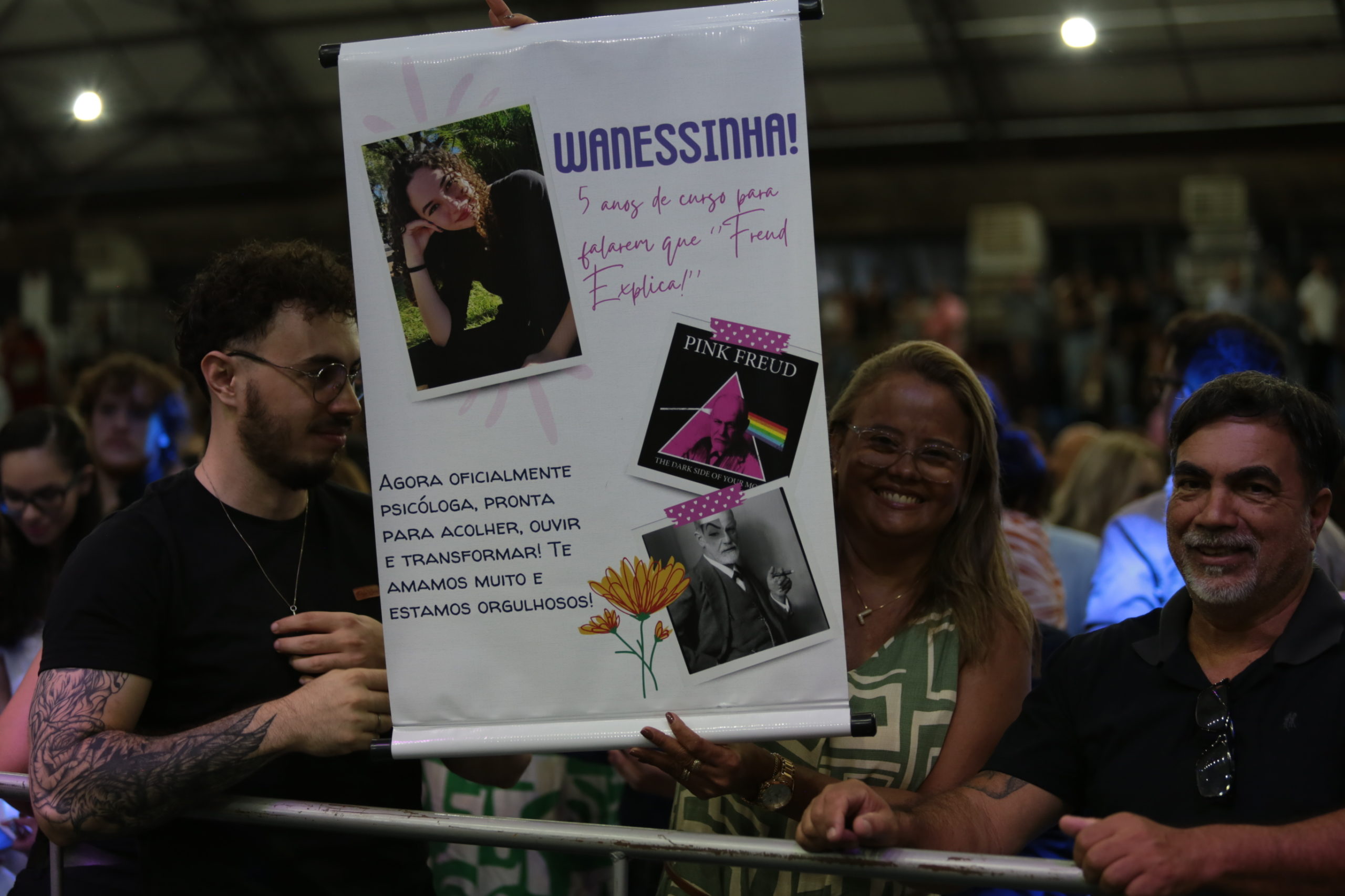 A família também se emociona e vibra junto. A professora Mariane Melo falou sobre a concretização do sonho da irmã, que colou grau no Curso de História da Fach. “Ela estudou muito, se dedicou demais, nós vimos ela realmente dar o sangue para conseguir ser aprovada e realizar o sonho dela. Não é um curso que as pessoas associam sucesso e mesmo assim era o sonho dela e foi muito especial ver ela realizar. A família inteira torceu muito e vendo ela vestindo a beca é incrível, sensação é maravilhosa, é uma conquista da família inteira”.