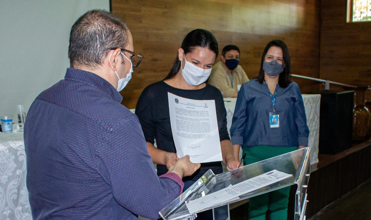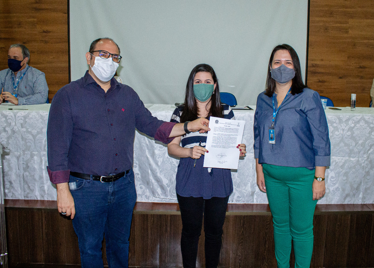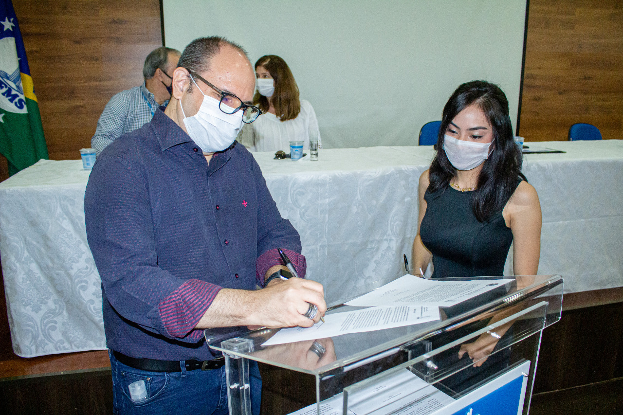 Nesta sexta-feira, 27, seis novos servidores foram empossados pelo reitor Marcelo Turine e pela vice-reitora Camila Ítavo. Para a realização da cerimônia no auditório do Complexo de EaD e Extensão, todas as recomendações do Plano de Biossegurança da UFMS foram observadas.