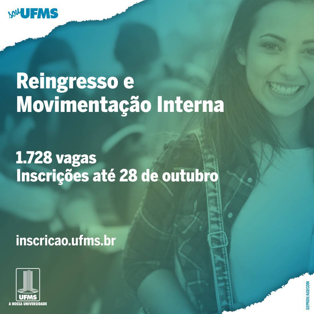 Ao todo, são 1.728 vagas em cursos de graduação em todos os câmpus. A ocupação será feita com prioridade para o reingresso, ou seja, oportunidades para estudantes que estão inativos no sistema e desejam retomar os estudos. Podem participar aqueles que foram excluídos por desistência, jubilação, reprovação ou solicitação.