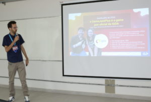 Também participaram da abertura os representantes da Associação de Criadores de Jogos de Mato Grosso do Sul. “Estamos em processo de implantação da Associação. Também tenho uma empresa de criação de jogos. Fazer jogos não é fácil, por isso decidimos criar a Associação para deixar esse processo menos difícil. Temos hoje 13 empresas em Mato Grosso do Sul, dessas, apenas oito são legalizadas”, diz o presidente da Associação, Maurício de Souza. “O ambiente que vocês estão, hoje, na Universidade, é o melhor para aprender. É onde vocês podem errar. Então, um conselho que eu dou é: aproveitem muito o que a UFMS tem a oferecer, as parcerias e os professores. Fiquem perto deles”, completa.