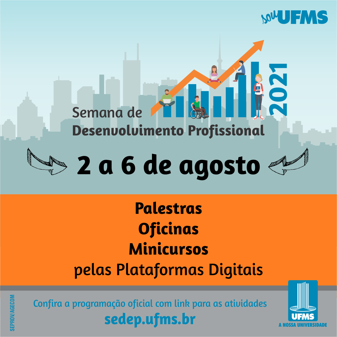 Mais de 120 atividades estão sendo realizadas nestes cinco dias de evento. Acesse sedep.ufms.br para conferir a programação completa, bem como analisar o currículo dos profissionais convidados para ministrar as palestras, workshops e minicursos.