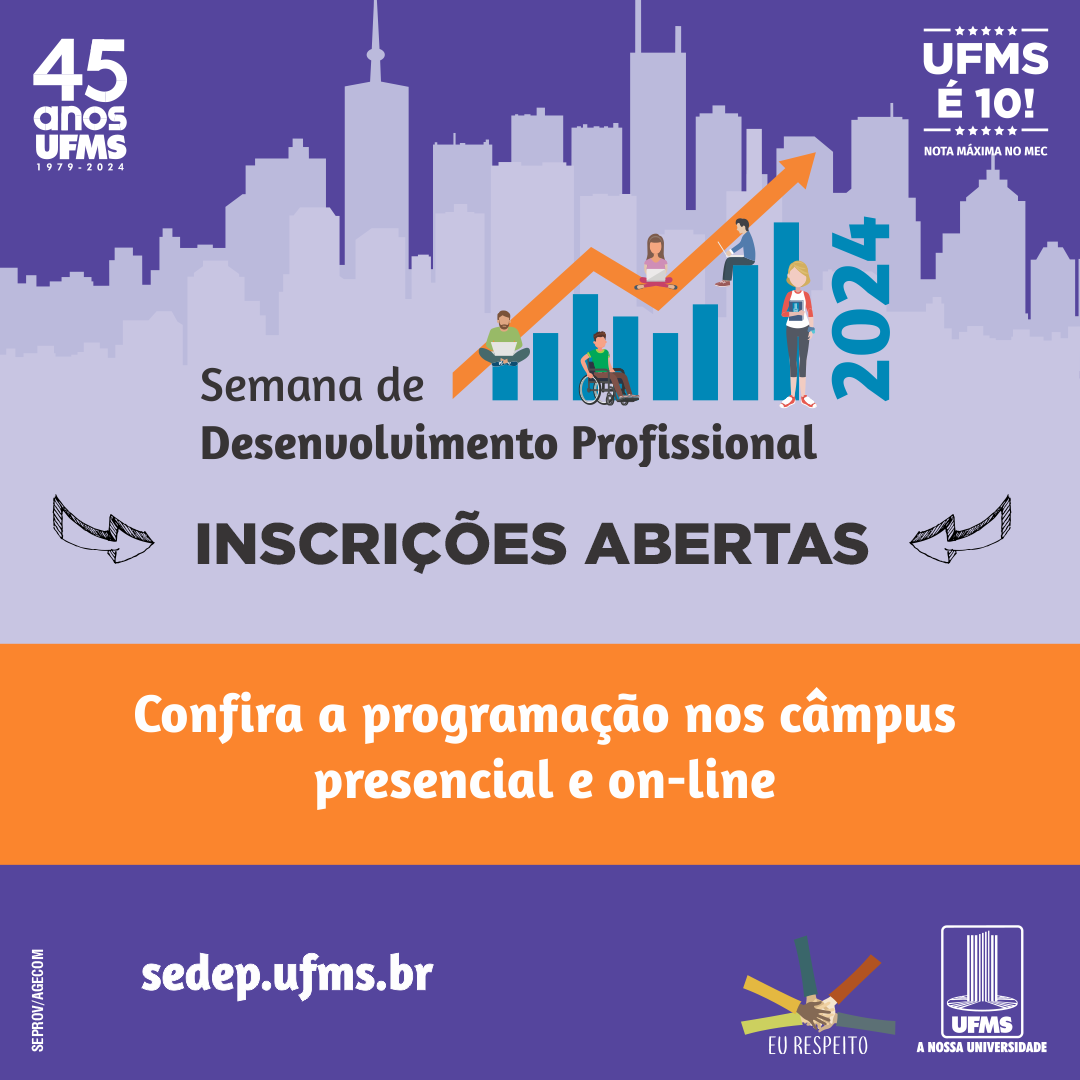 Como uma forma de integrar estudantes, profissionais e egressos, a Semana de Desenvolvimento Profissional chega à sua 8ª edição com programação na Cidade Universitária e nos câmpus, entre os dias 6 e 11 de maio. O evento é gratuito e aberto a todos e vai debater a Inteligência Artificial e os impactos no mercado de trabalho. As inscrições podem ser feitas na página até o último dia do evento. Confira a programação completa aqui.