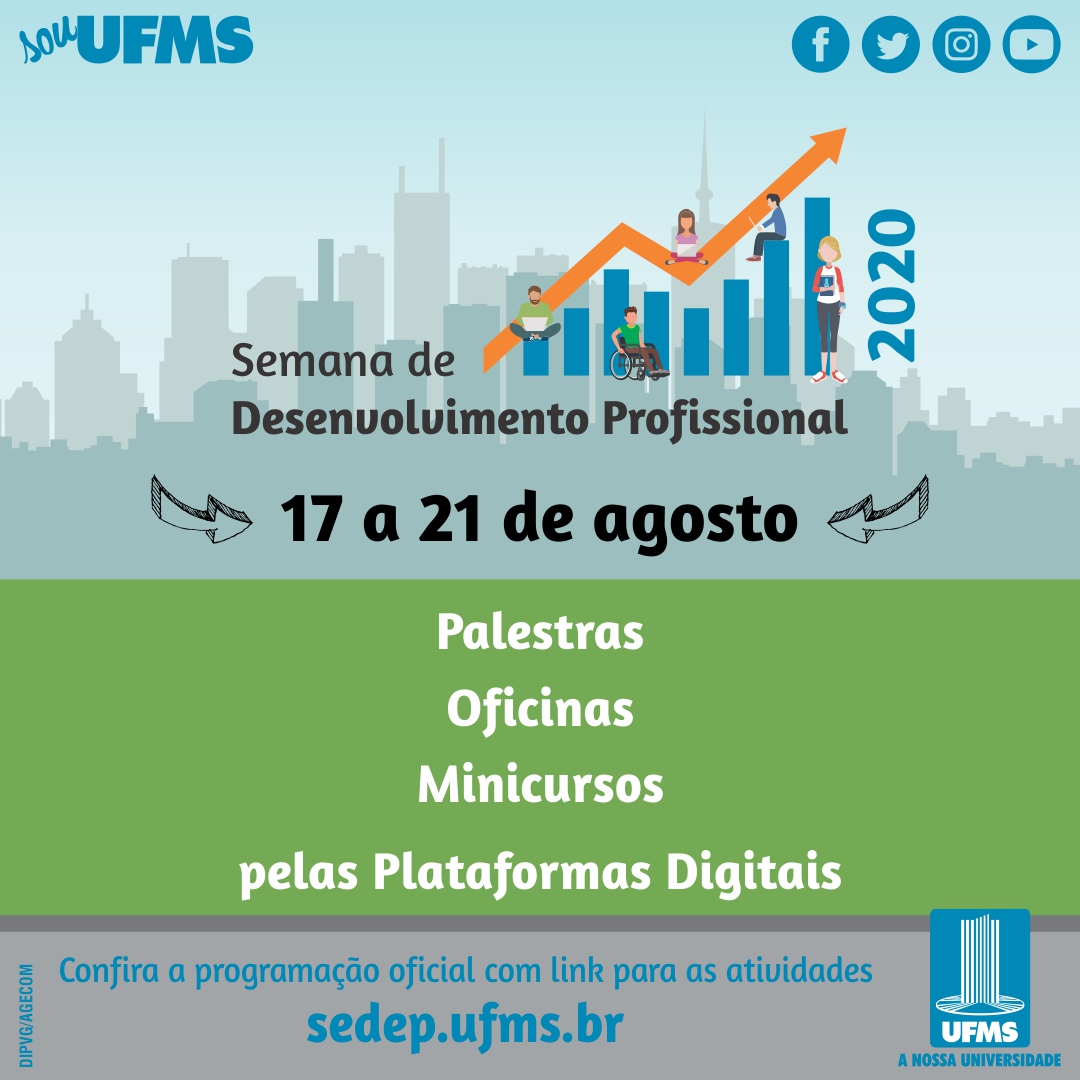 Acesse o site sedep.ufms.br para se inscrever e confira a programação completa abaixo. “O prazo para inscrições é até o último dia do evento, 21 de agosto, mas claro que quem se inscrever no último dia só participará das palestras daquele dia”, esclarece Fernando.