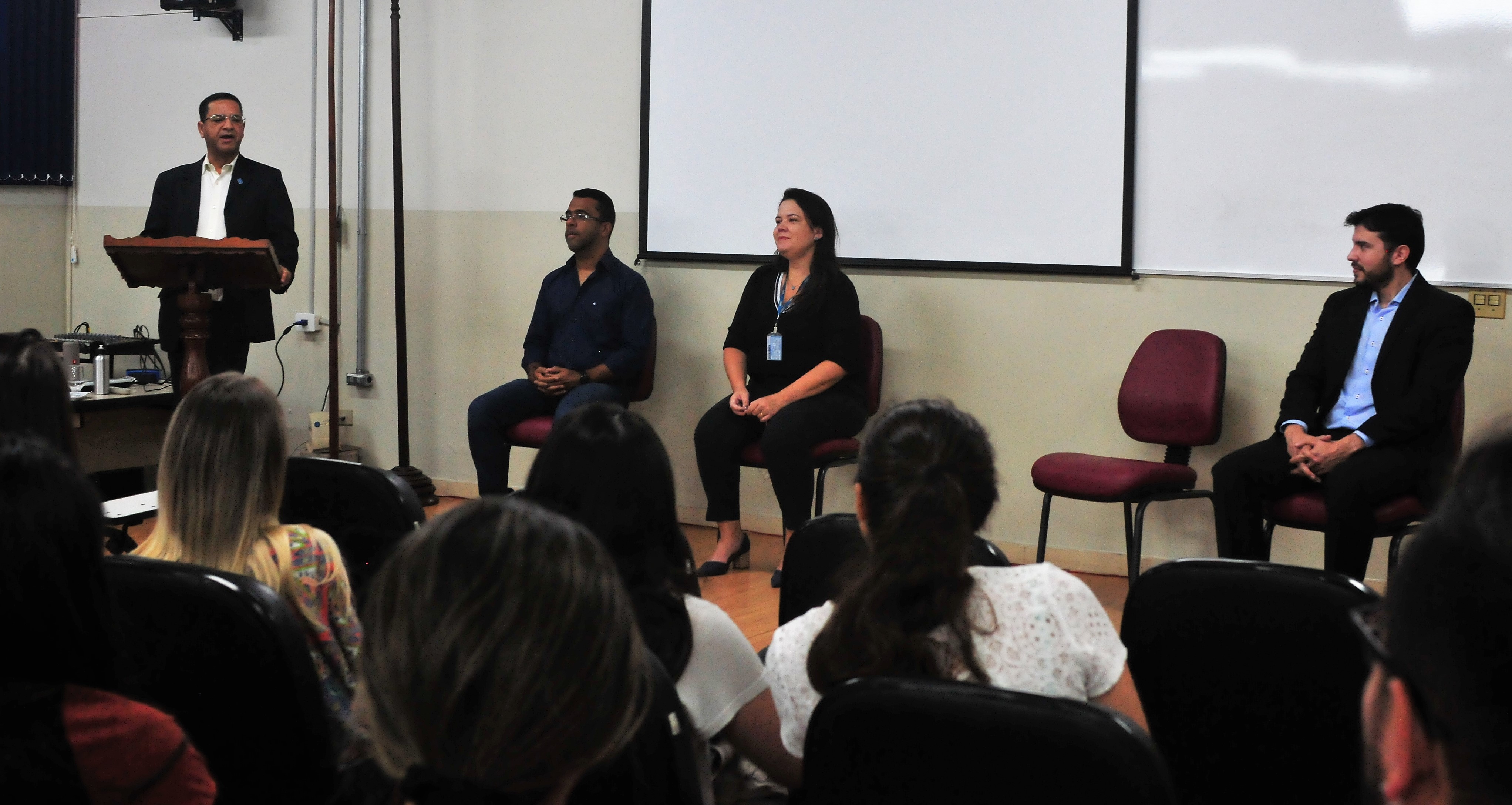 Os coordenadores dos cursos de Administração, Filipi Quevedo, e de Tecnologia em Processos Gerenciais, Marcelo Ribeiro Silva, também participaram da abertura.