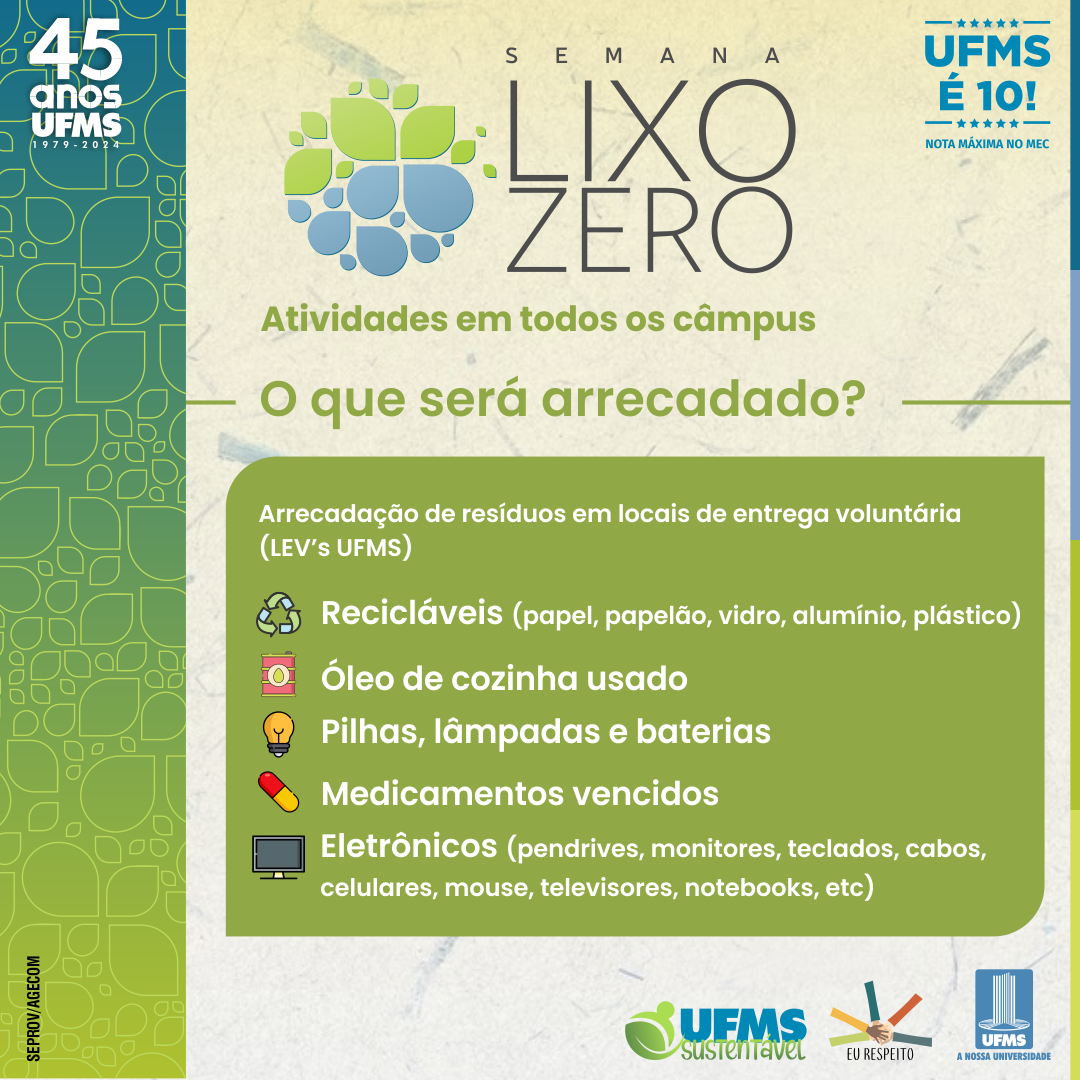 O diretor de Desenvolvimento Sustentável, Leonardo Chaves de Carvalho, destaca a importância de ações como a Semana Lixo Zero UFMS para a formação de uma comunidade consciente e responsável. “As universidades têm o papel de formar cidadãos e profissionais com valores éticos e sustentáveis. Essas iniciativas demonstram, na prática, como cada pessoa pode contribuir para a preservação do meio ambiente, reforçando o papel da sociedade na construção de um futuro sustentável”, pontua. “Este é um momento de unir forças para construir uma UFMS mais sustentável e responsável”, complementa.