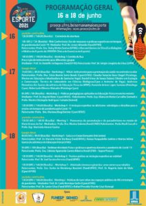 As discussões atenderão a três principais frentes do esporte: a saúde, a competição e o lazer. “O evento terá discussões acadêmicas voltadas para quem pesquisa o esporte, discussões voltadas para os professores de educação física que estão nas escolas e fazendo trabalho de base e também ações para os servidores e estudantes, com atividades práticas acontecendo em formato digital”, explica o pró-reitor de Extensão, Cultura e Esporte, Marcelo Fernandes.