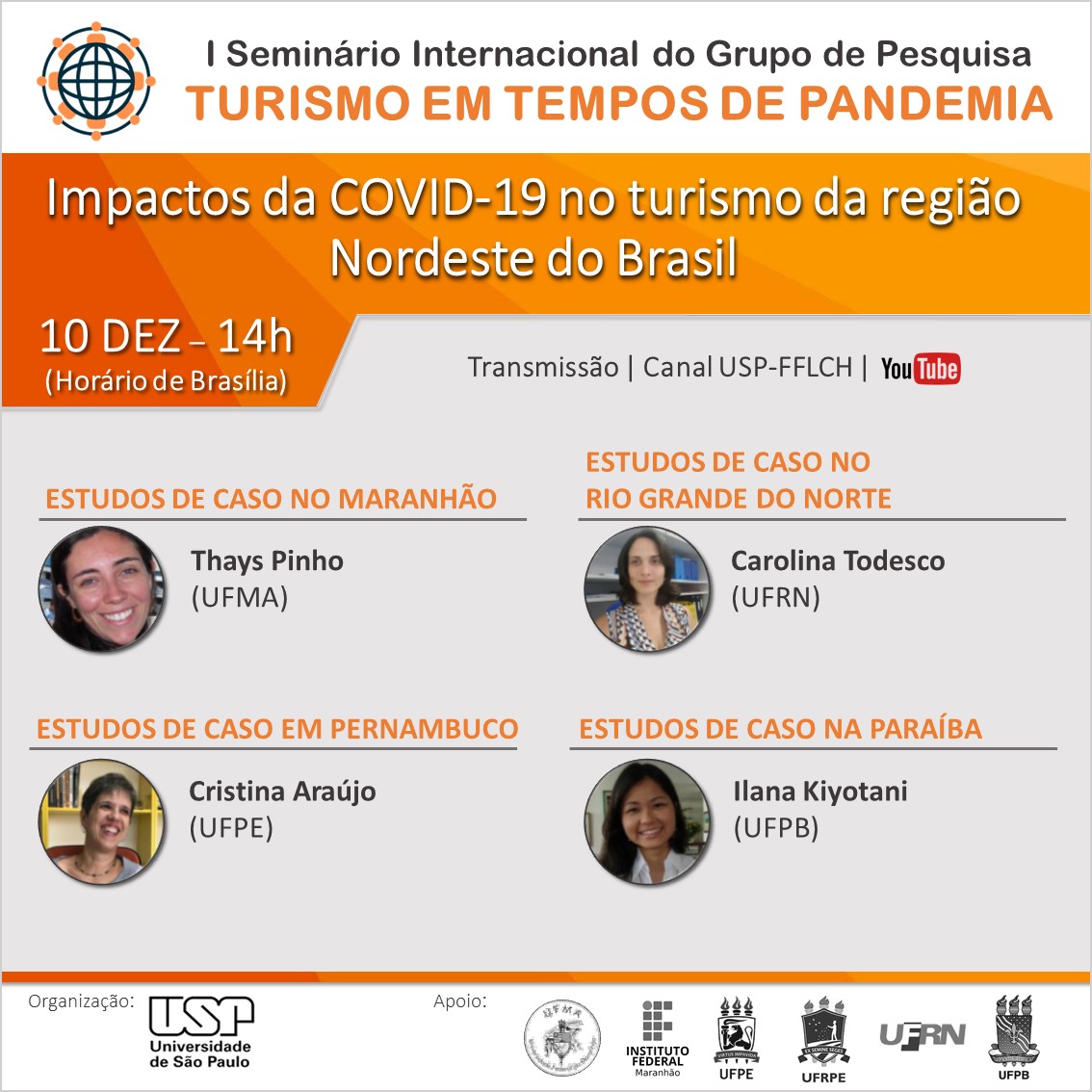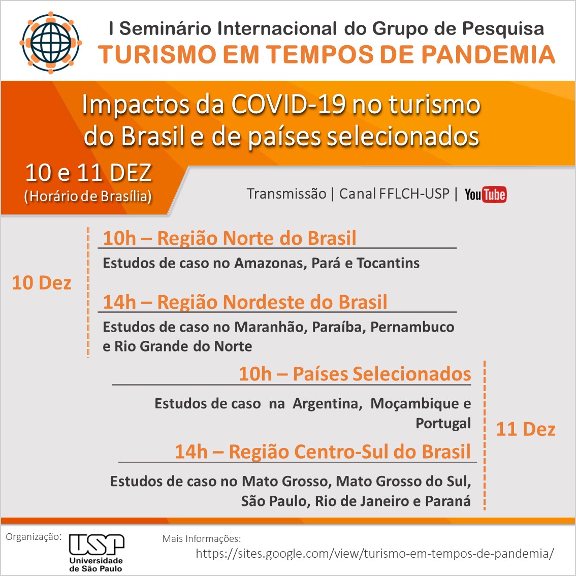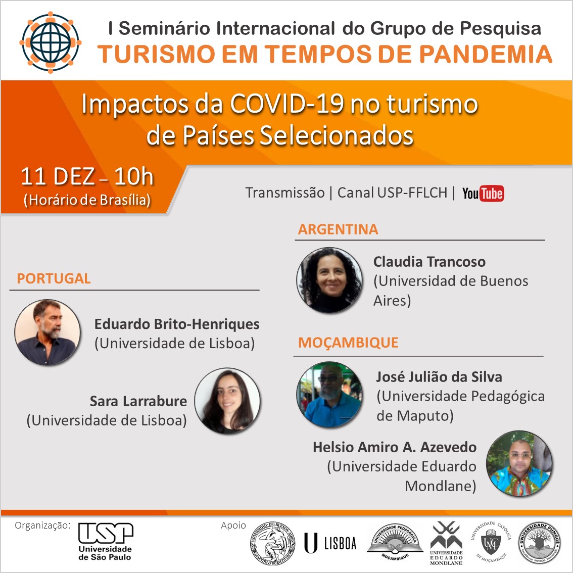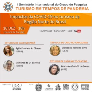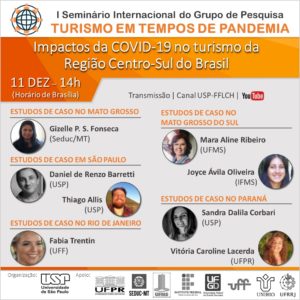 Nos dias 10 e 11 de dezembro será realizado o 1º Seminário internacional do grupo de pesquisa Turismo em Tempos de Pandemia, que irá destrinchar quais foram e são os impactos da Covid-19 nas regiões do Brasil e em Moçambique, Argentina e Portugal.