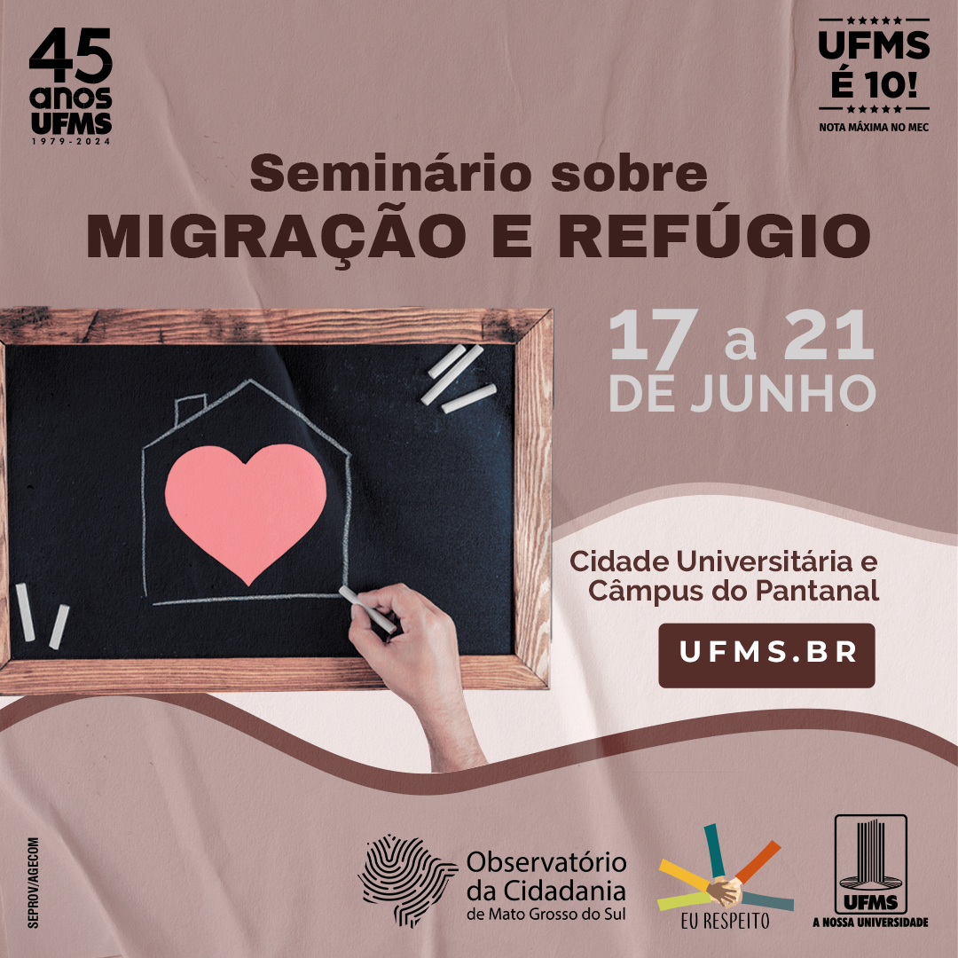 O Semigre integra a campanha Eu Respeito de junho e será promovido como resultado da colaboração entre os projetos de pesquisa Casa do Migrante de Corumbá/MS: análise do fluxo de acolhida e encaminhamento dos migrantes invisíveis na fronteira Brasil-Bolívia e Análise do Tráfico de Pessoas e Migração na Fronteira de Mato Grosso do Sul – 2.