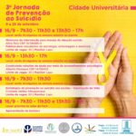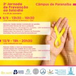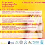 Com uma programação extensa, a 3ª Jornada de Prevenção ao Suicídio será realizada na Cidade Universitária, entre os dias 14 e 16 de setembro, e nos Câmpus de Chapadão do Sul e de Aquidauana, nos dias 15 e 16; do Pantanal, nos dias 15, 20, 22 e 28; de Paranaíba, nos dias 9 e 13; e de Três Lagoas, no dia 21.