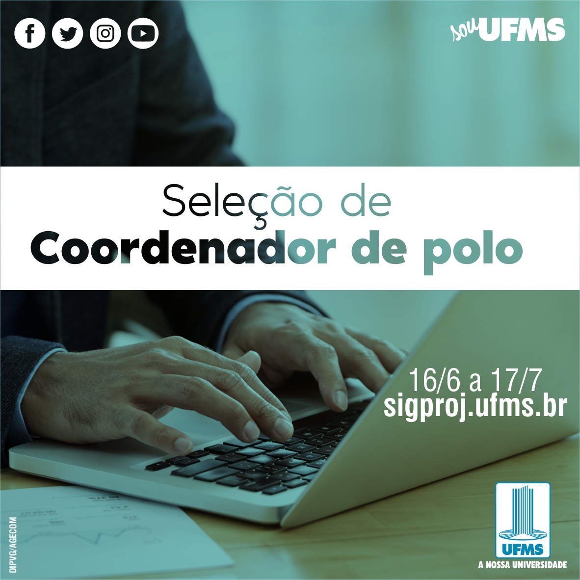 Está aberta seleção para interessados em atuar como coordenador de polo associado à Universidade Aberta do Brasil (UAB/UFMS). As oportunidades são para servidores que trabalham em Corumbá, Coxim, Naviraí, Ponta Porã e Três Lagoas e as inscrições podem ser feitas até 17 de julho no Sigproj.