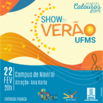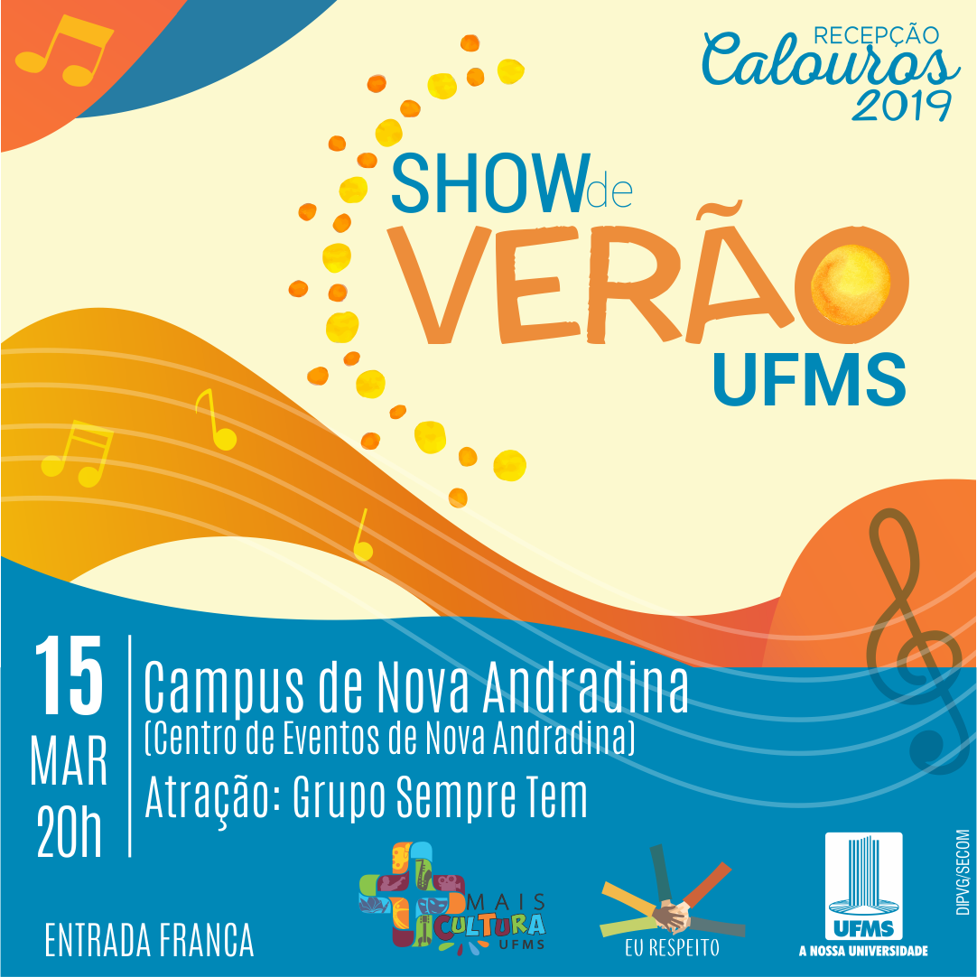 Como parte da Recepção dos Calouros, a partir de amanhã (22), a UFMS promove uma programação cultural especial em todos os câmpus. O Show de Verão tem como objetivo o acolhimento e recepção aos ingressantes dos cursos de graduação, a integração de toda a comunidade universitária e a democratização do acesso e o fomento à cultura artística musical.