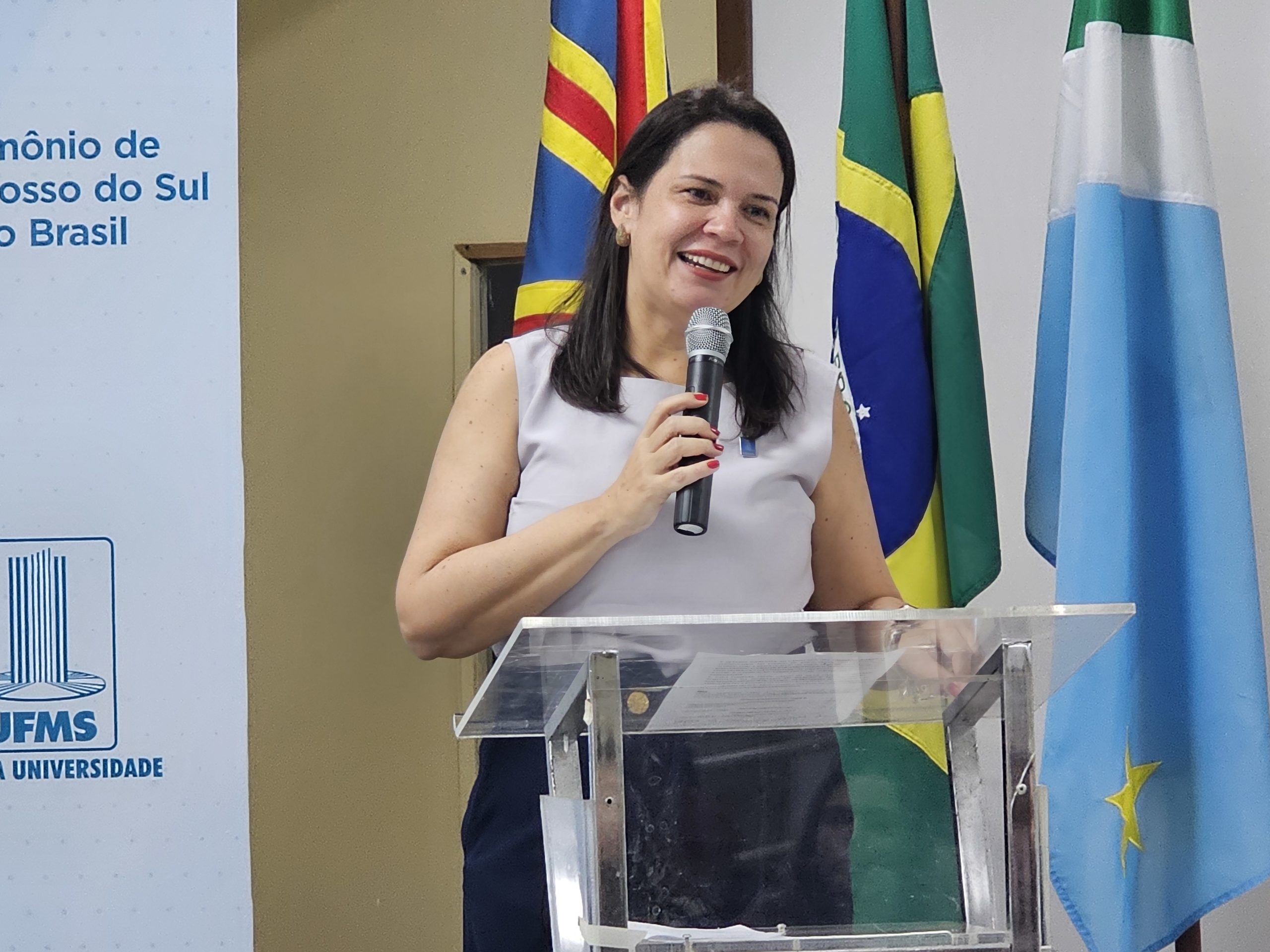 A diretora do Câmpus do Pantanal, Andreliza de Souza, prestigiou a cerimônia e desejou as boas-vindas para os empossados. “A UFMS é um lugar muito bom de trabalhar, é uma família. Aqui nós construímos, nós conhecemos, nós elaboramos e executamos novos projetos, mas também comemoramos as conquistas em conjunto. Sejam bem-vindos, venham com o coração aberto, nós esperamos vocês para somar, para crescer cada vez mais”.