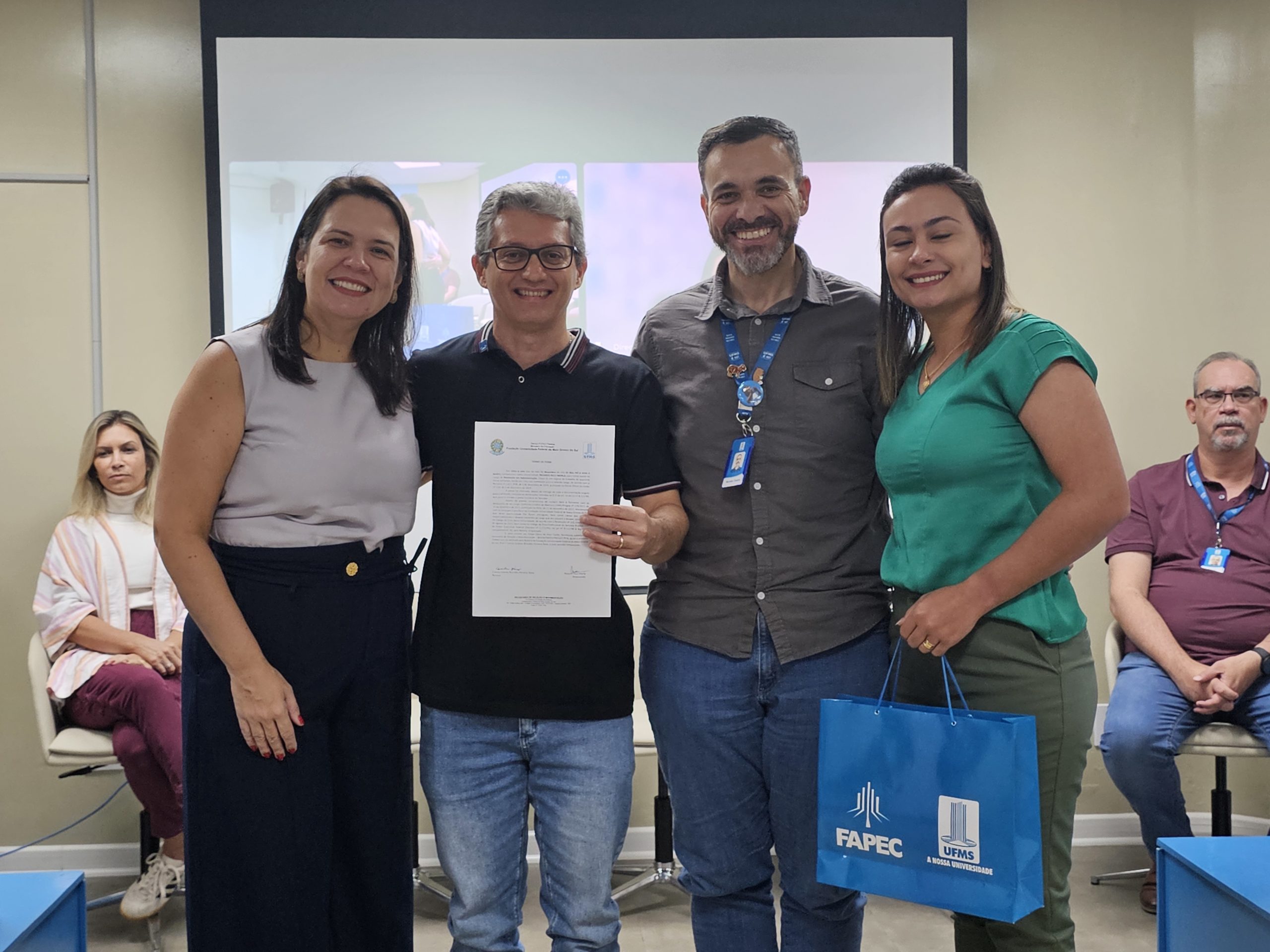 Na manhã de hoje, 27, cinco servidores foram empossados na Cidade Universitária, com a presença de familiares, amigos e membros das equipes que os profissionais devem compor. A solenidade celebrou a chegada dos assistentes em administração Débora dos Santos, Michael Feeney e Ricardo Morla; a técnica de Laboratório Giovana Gomes; e a técnica em Assuntos Educacionais Caroline Echeverria.