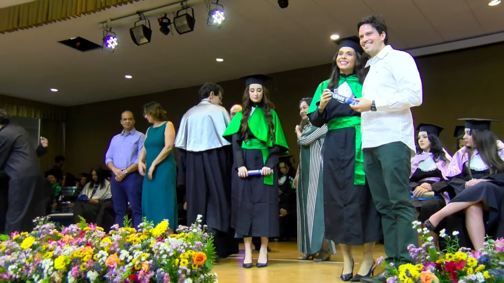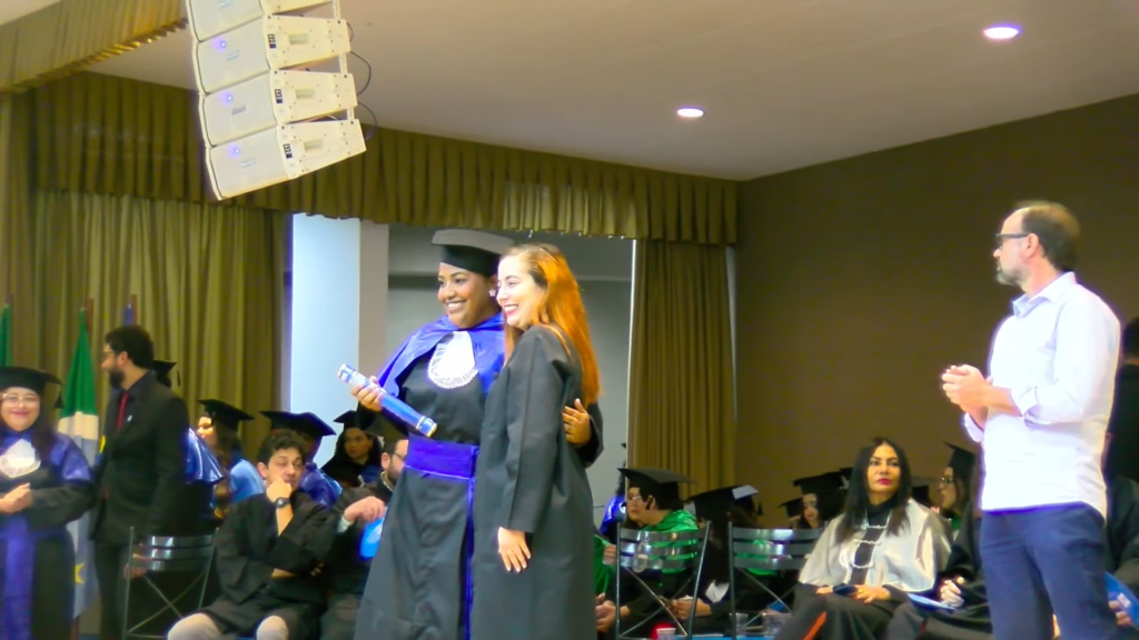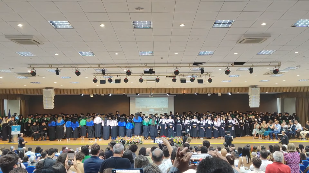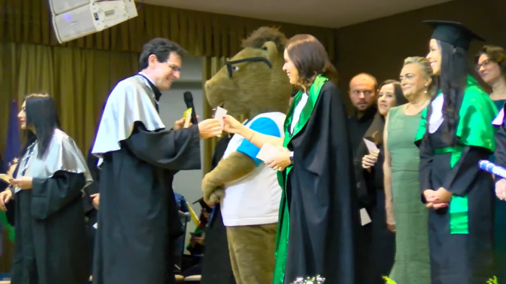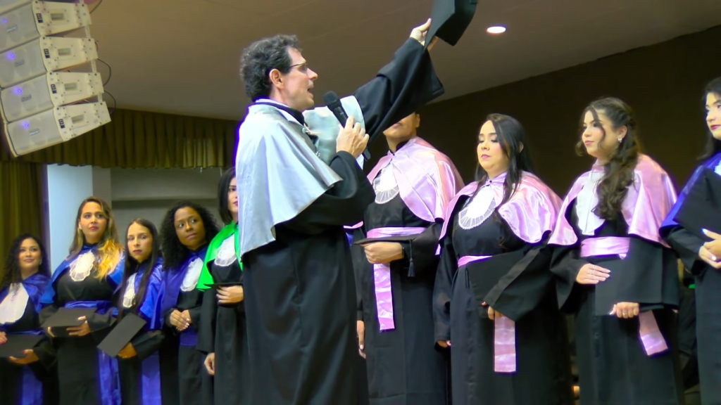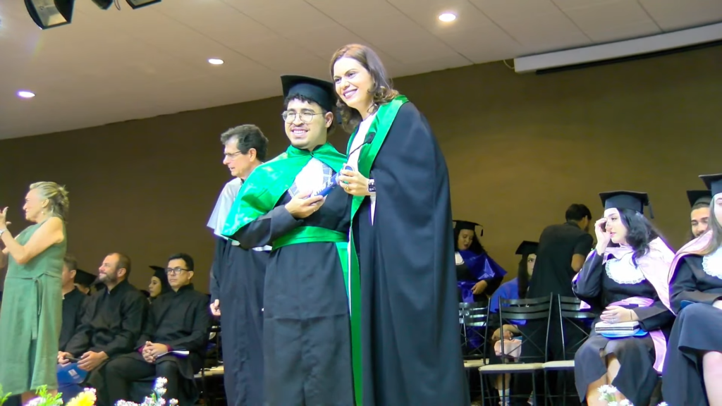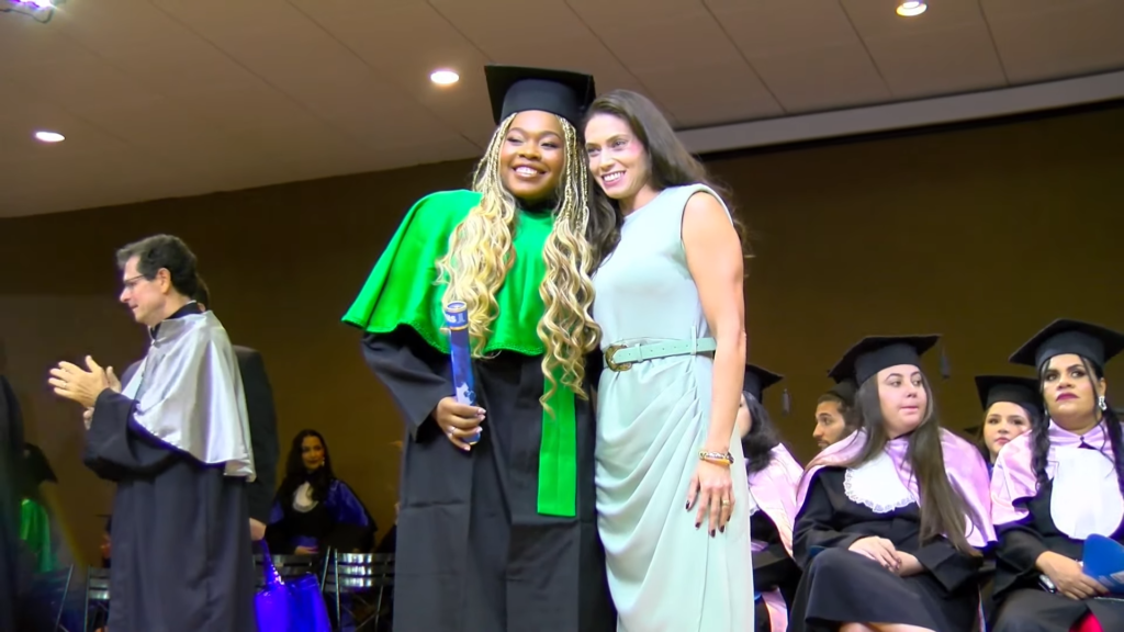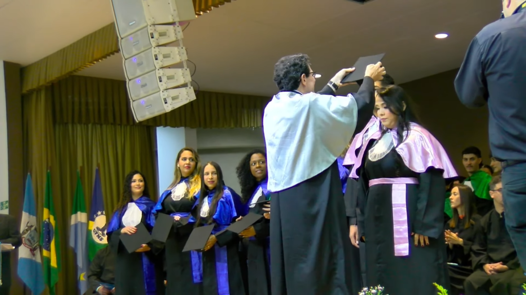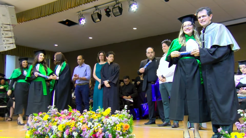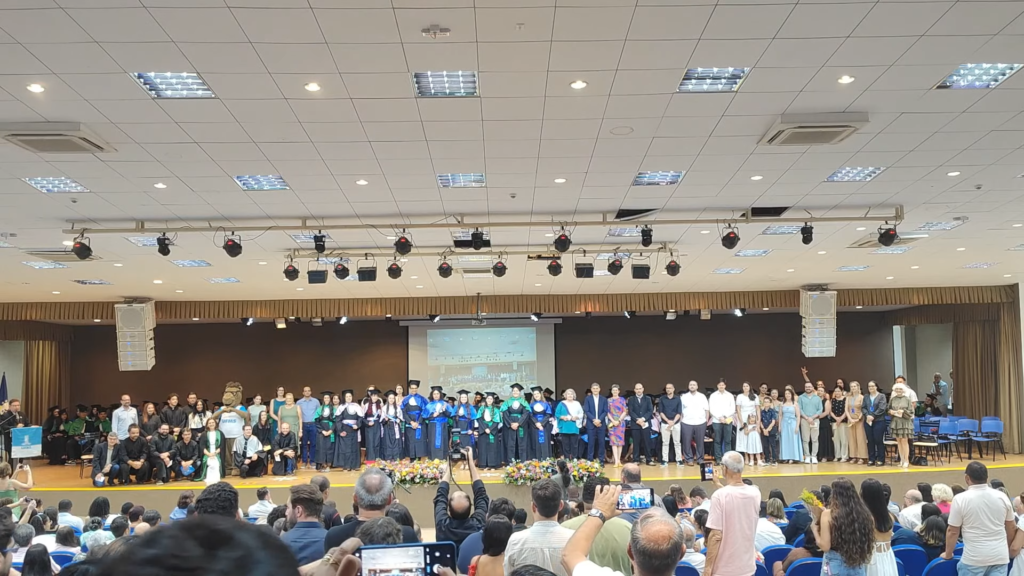 Por sua vez, a oradora representante das turmas, a licenciada em Letras Lamara Cristina Pereira, comemorou a conquista do tão sonhado diploma. “Conciliamos estudo, trabalho, família e vida pessoal e aprendemos que persistir também é um ato de coragem. Como nos ensina Guimarães Rosa, ‘o correr da vida embrulha tudo’. A vida é assim: esquenta, esfria, aperta e daí afrouxa, sossega e depois desinquieta. O que ela quer da gente é coragem. Foi ela que nos manteve de pé, mesmo quando o peso parecia maior do que as nossas forças, seguimos. Porque desistir nunca foi a nossa escolha. Hoje celebramos não apenas uma formatura, mas a consolidação de um processo formativo. Saímos diferentes de quando entramos, mais conscientes, mais críticos e mais preparados para os caminhos que se abrem à nossa frente. Levamos conosco não apenas um diploma, mas uma história construída com esforço, fé e perseverança”, concluiu.