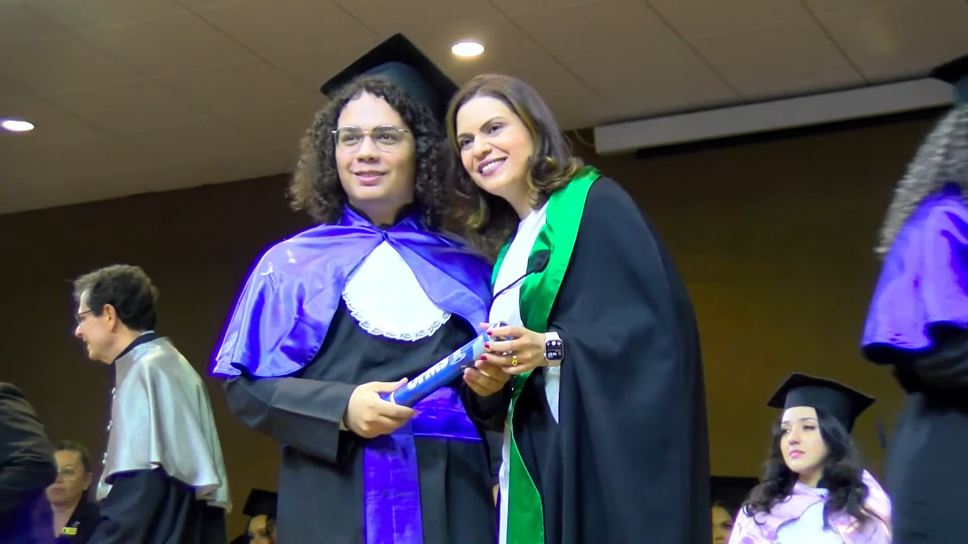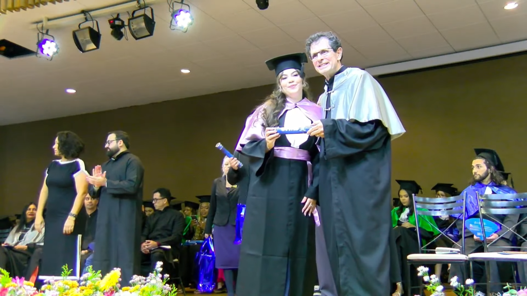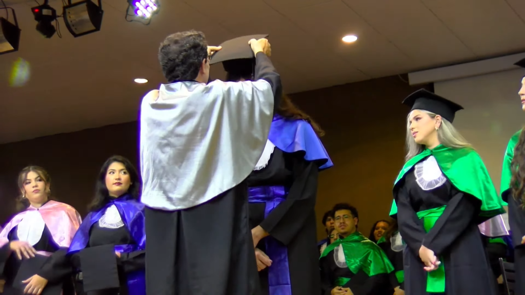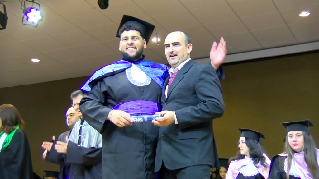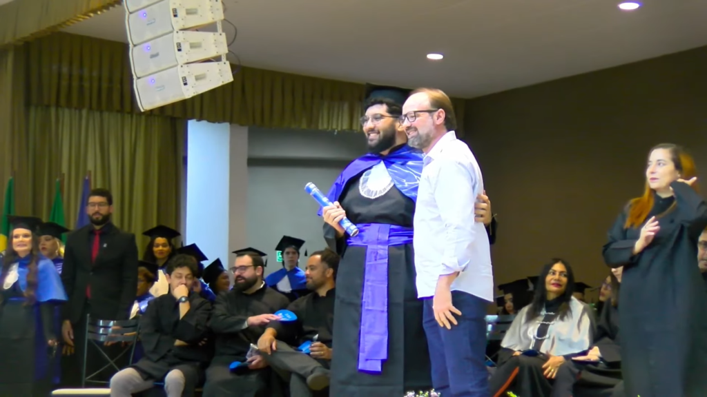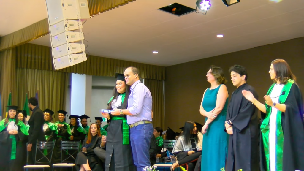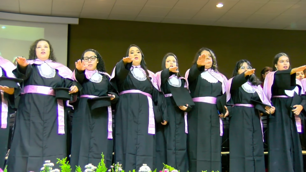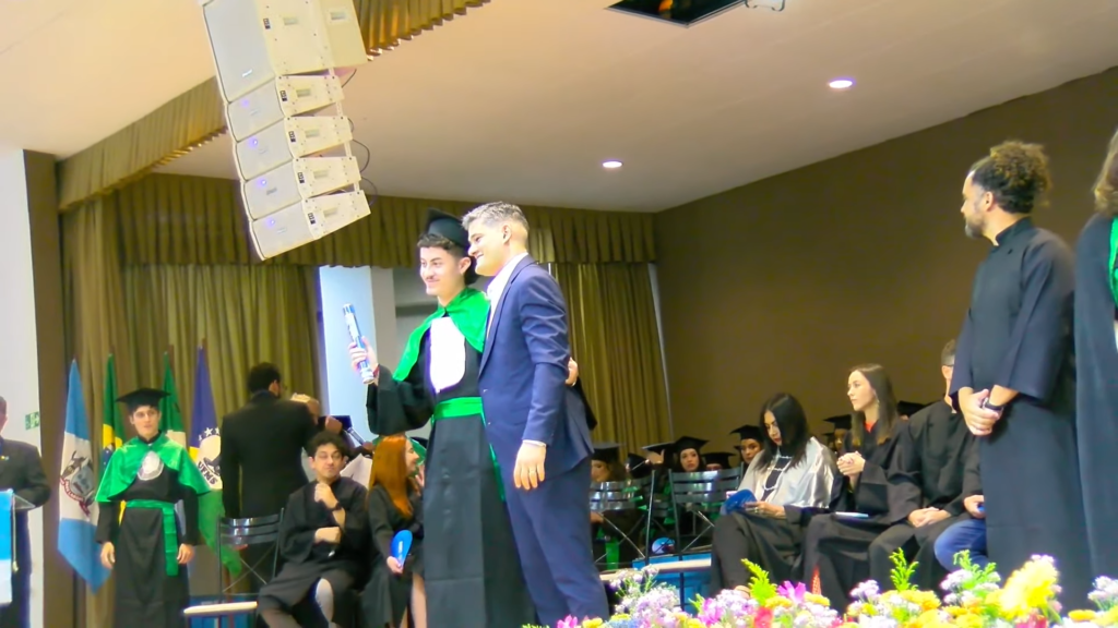 Por sua vez, a oradora representante das turmas, a licenciada em Letras Lamara Cristina Pereira, comemorou a conquista do tão sonhado diploma. “Conciliamos estudo, trabalho, família e vida pessoal e aprendemos que persistir também é um ato de coragem. Como nos ensina Guimarães Rosa, ‘o correr da vida embrulha tudo’. A vida é assim: esquenta, esfria, aperta e daí afrouxa, sossega e depois desinquieta. O que ela quer da gente é coragem. Foi ela que nos manteve de pé, mesmo quando o peso parecia maior do que as nossas forças, seguimos. Porque desistir nunca foi a nossa escolha. Hoje celebramos não apenas uma formatura, mas a consolidação de um processo formativo. Saímos diferentes de quando entramos, mais conscientes, mais críticos e mais preparados para os caminhos que se abrem à nossa frente. Levamos conosco não apenas um diploma, mas uma história construída com esforço, fé e perseverança”, concluiu.