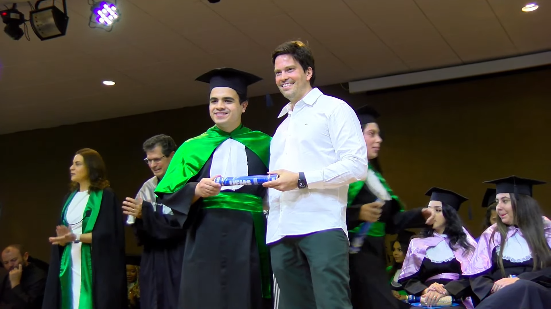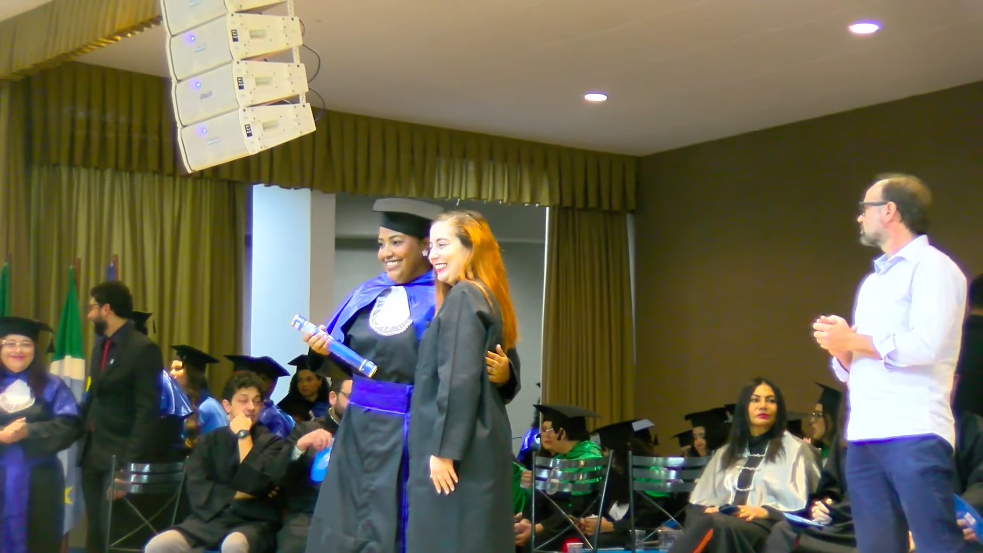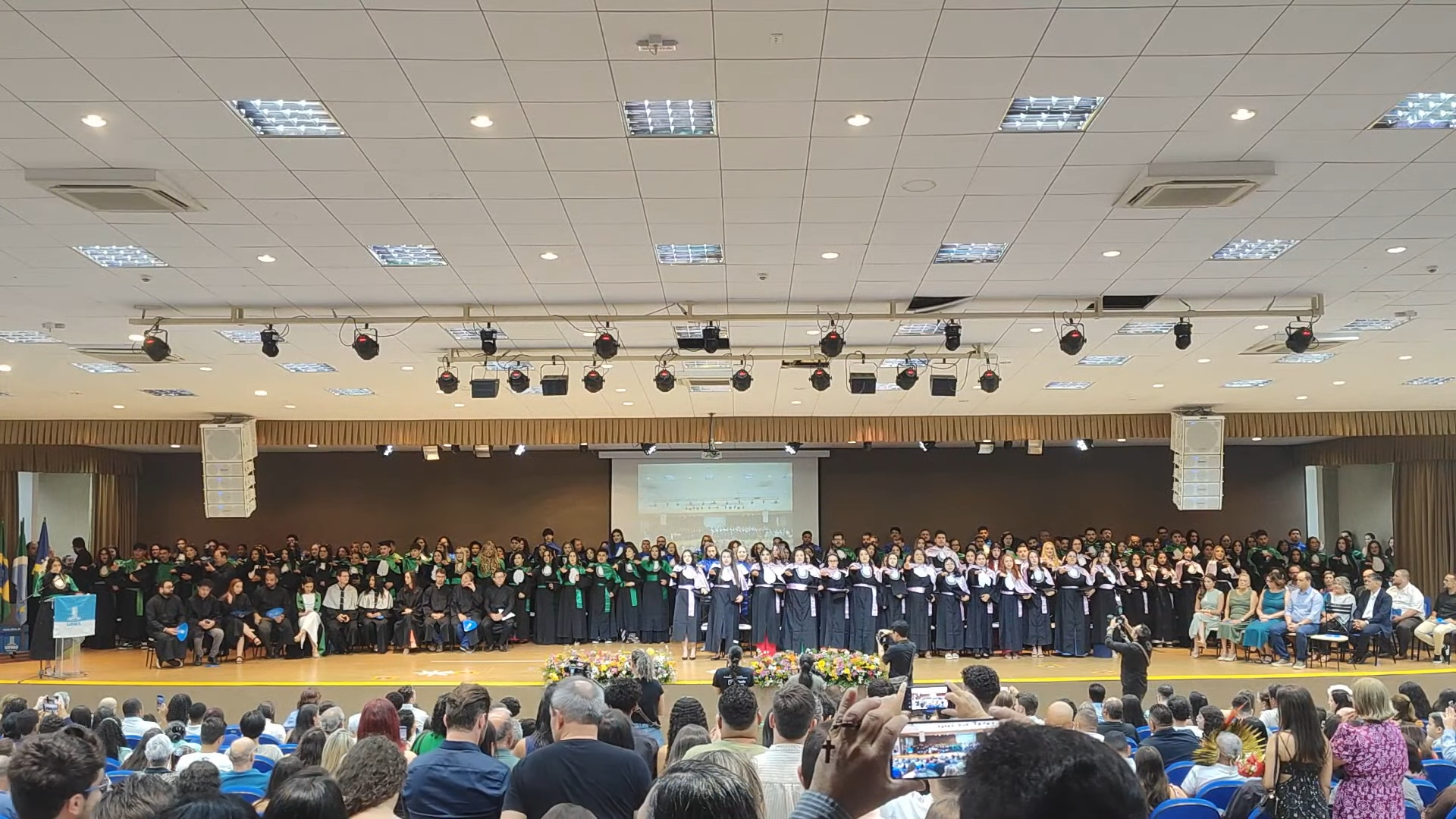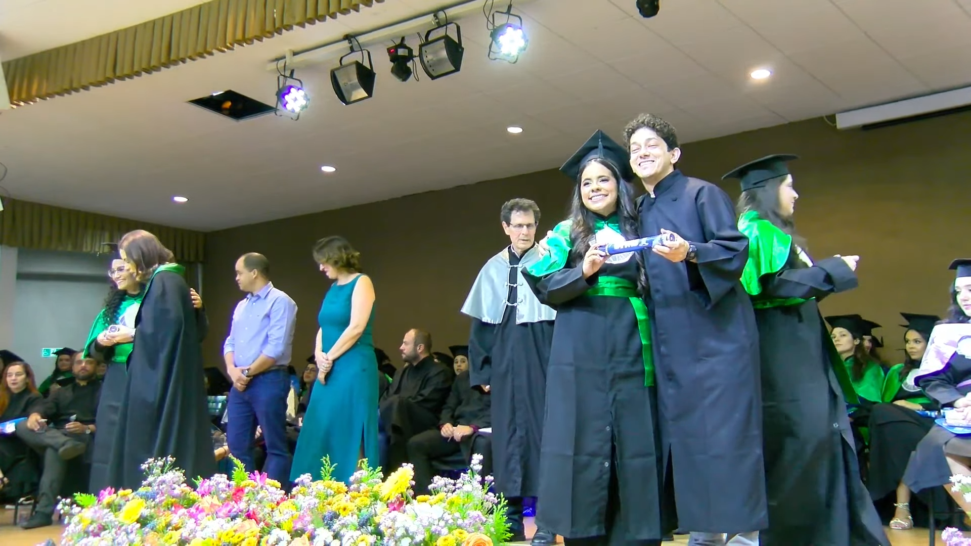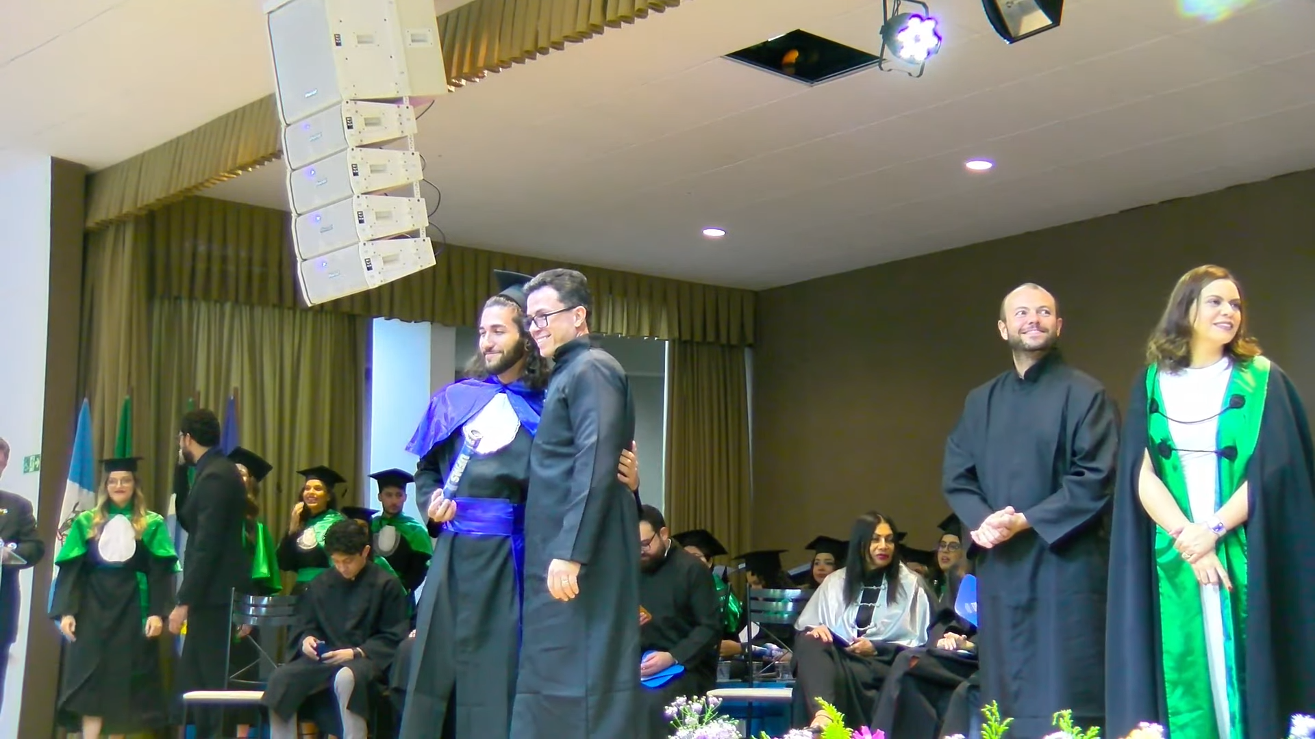 A sessão solene foi presidida pelo vice-reitor Albert Schiaveto, que fez votos de sucesso para a jornada profissional de cada egresso. “As estrelas desta tarde vão voar, e muito. Nossa missão como Universidade é formar líderes. Além de cidadãos conscientes, profissionais, nós formamos líderes. Parafraseando Martin Luther King, ativista norte-americano, ‘eu não sou quem eu gostaria de ser’, talvez vocês possam dizer isso. ‘Eu não sou quem eu poderia ser’ e, ainda, ‘eu não sou quem eu deveria ser’, mas graças à UFMS ‘eu não sou mais quem eu era’. Agora, vocês são os profissionais que podem fazer toda a diferença aonde quer que estejam. O futuro tem muitos nomes: para os fracos é o inalcançável, para os temerosos é o desconhecido. Mas para os valentes, para os corajosos, o futuro é a oportunidade’, motivou.