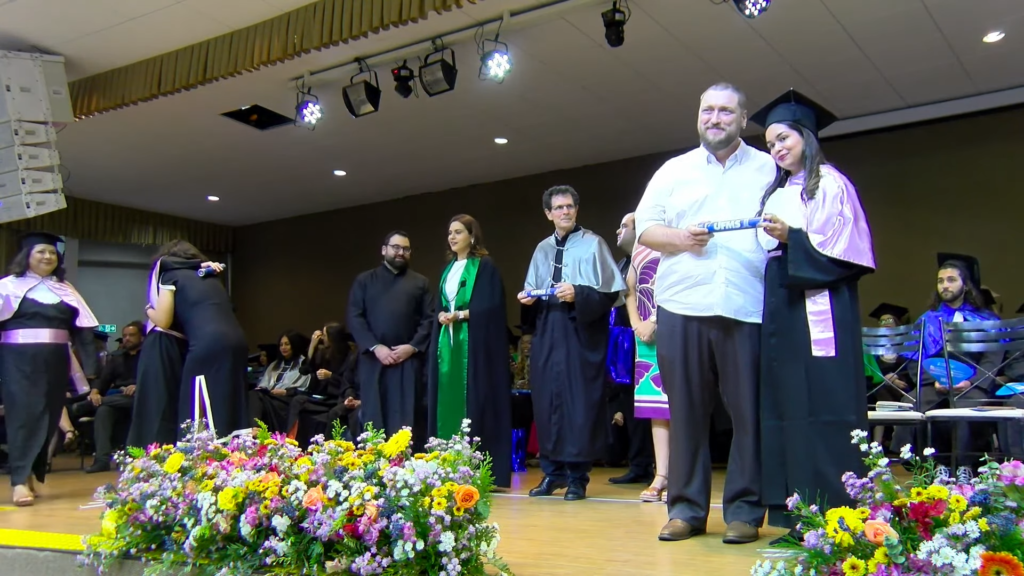 A reitora Camila Ítavo enviou uma mensagem de agradecimento aos novos profissionais. “Vocês são o nosso orgulho e a razão de existirmos. Parabéns pela jornada! Hoje a UFMS se renova com a entrega do nosso trabalho que se materializa, que se concretiza na formação de cada um de vocês. Vocês tiveram uma formação de excelência reconhecida nacional e internacionalmente. Mais do que isso, uma formação cidadã, ética, baseada em valores comprometidos com toda a sociedade e com a melhoria do nosso território. Parabéns, que vocês sigam iluminando. A partir de agora, vocês têm a UFMS como alma mater. Levem nossa Universidade no coração de vocês”, incentivou.