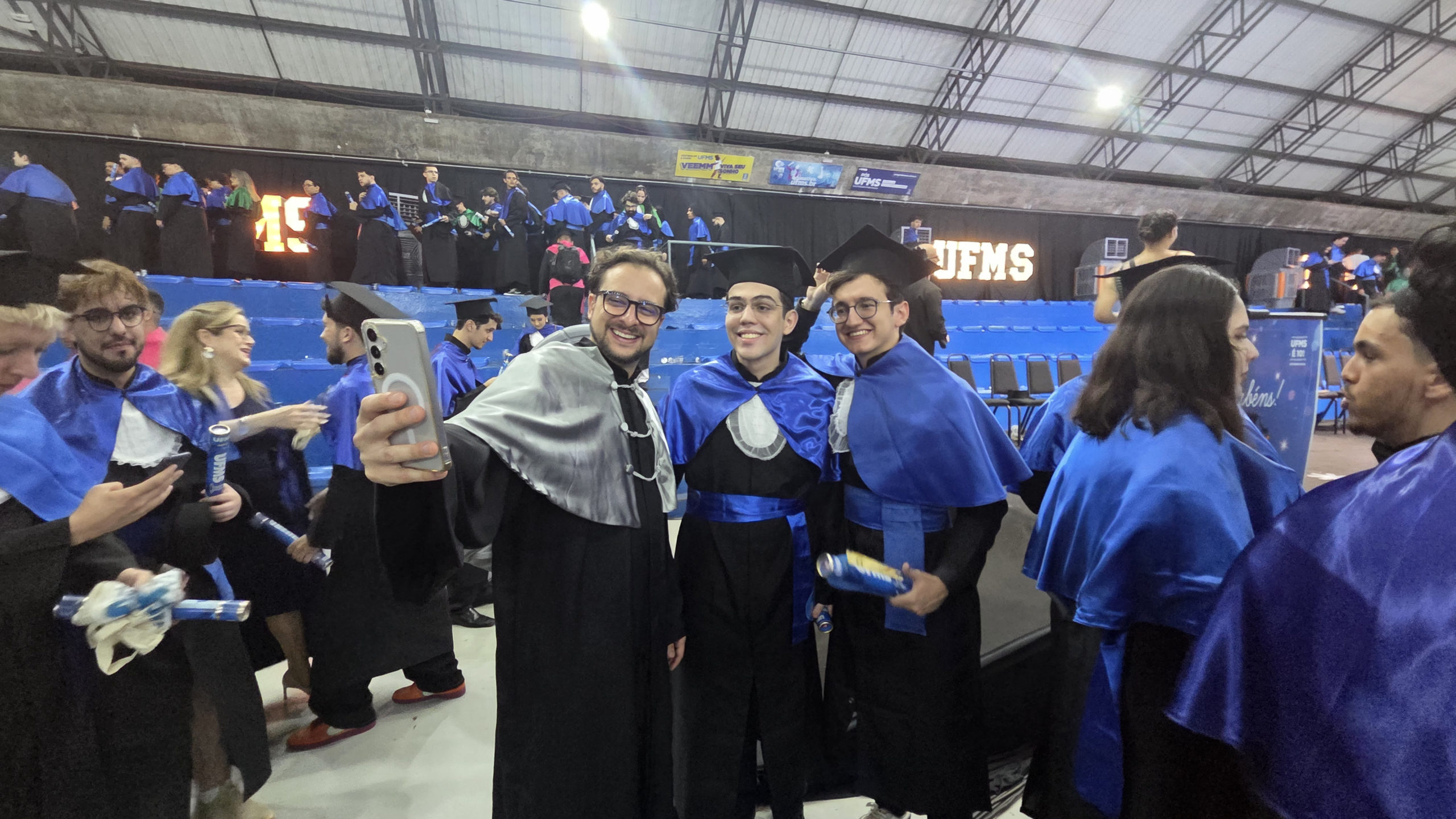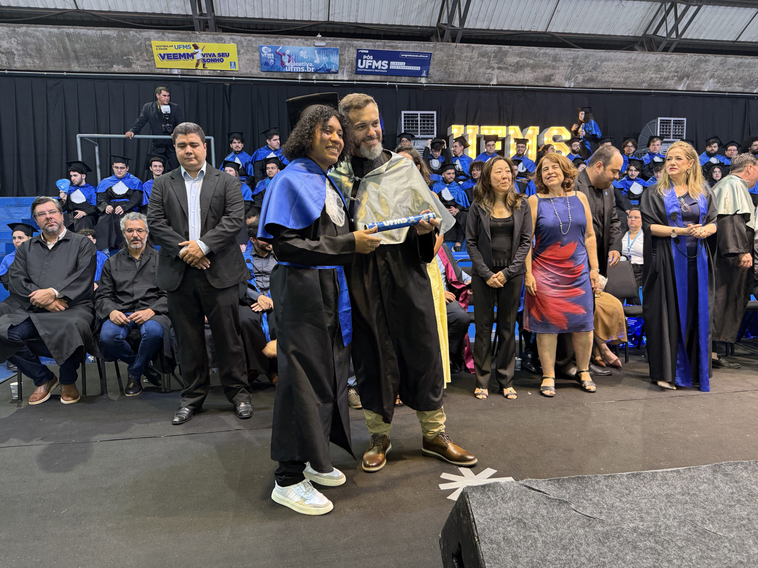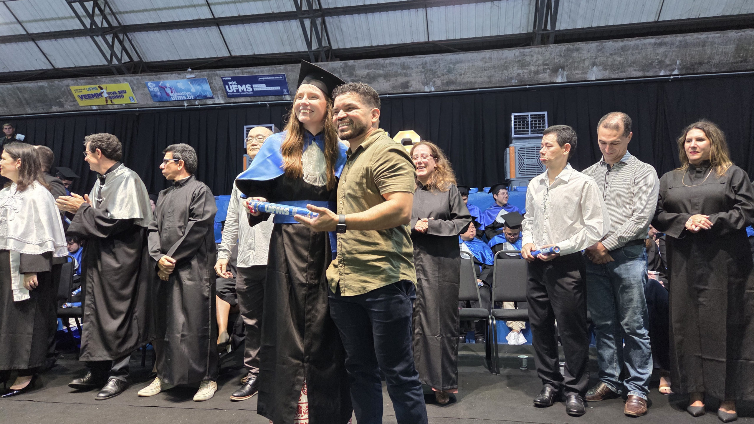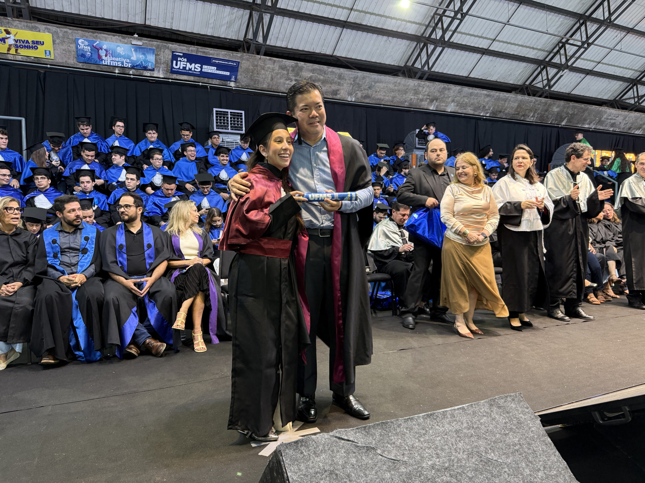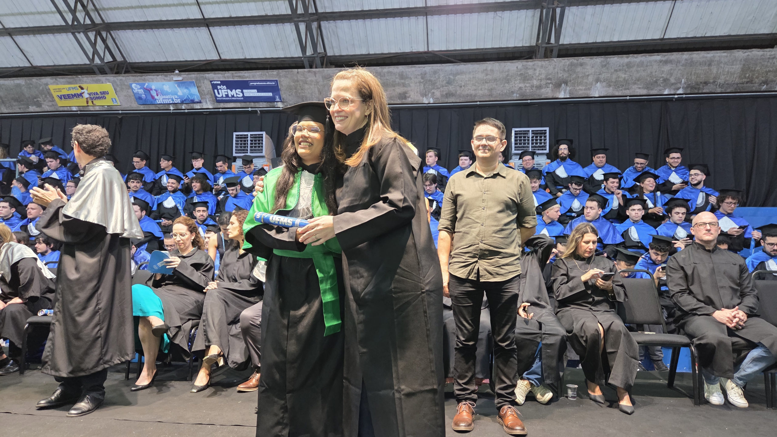 A UFMS de Campo Grande celebrou neste sábado, 13, a cerimônia de colação de grau de 308 formandos da Escola de Administração e Negócios (Esan), das faculdades de Computação (Facom) e de Odontologia (Faodo), além dos institutos de Biociências (Inbio), Matemática (Inma) e Química (Inqui). A solenidade foi realizada no Ginásio Moreninho, com transmissão ao vivo no canal da TV UFMS.
