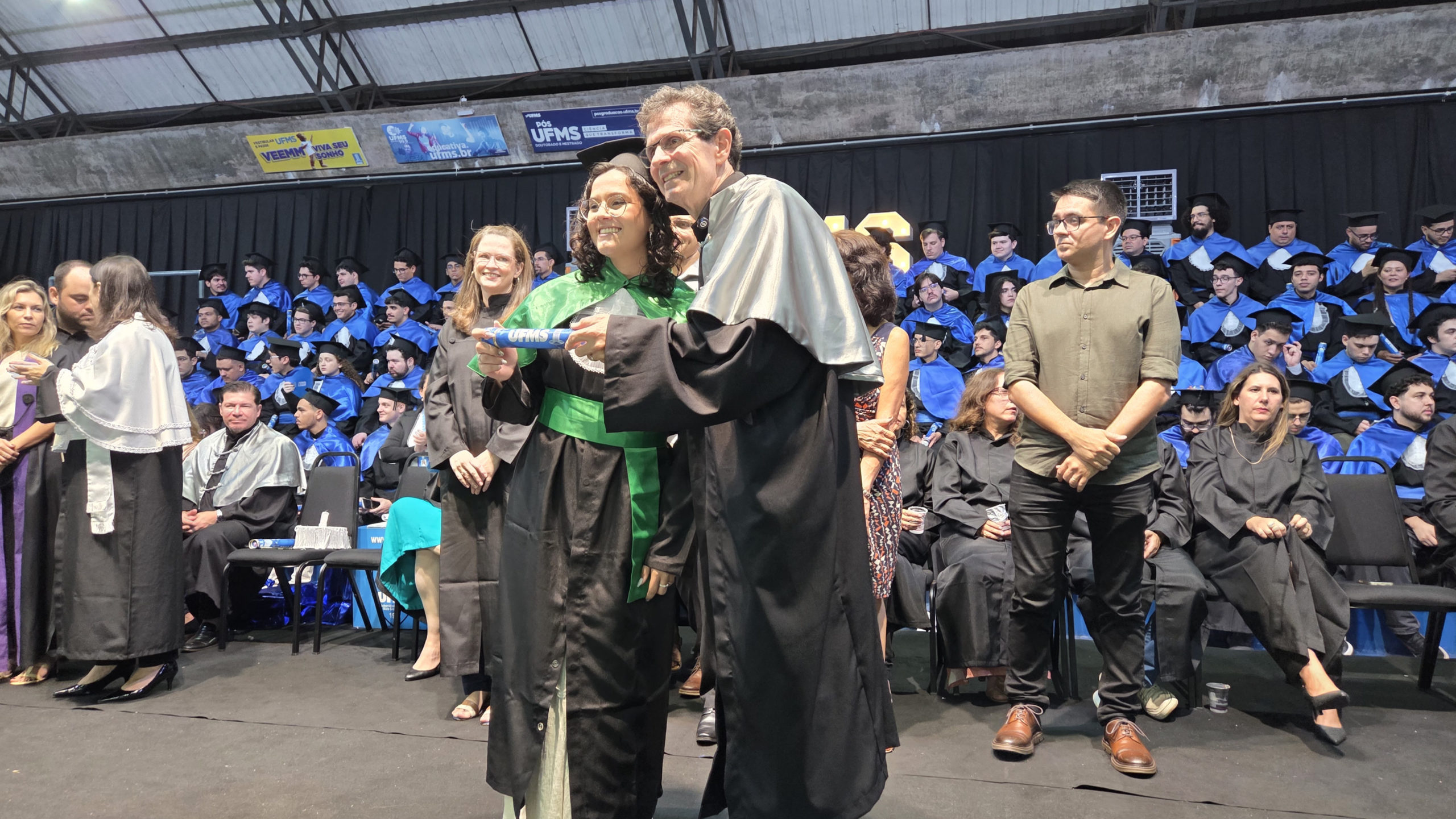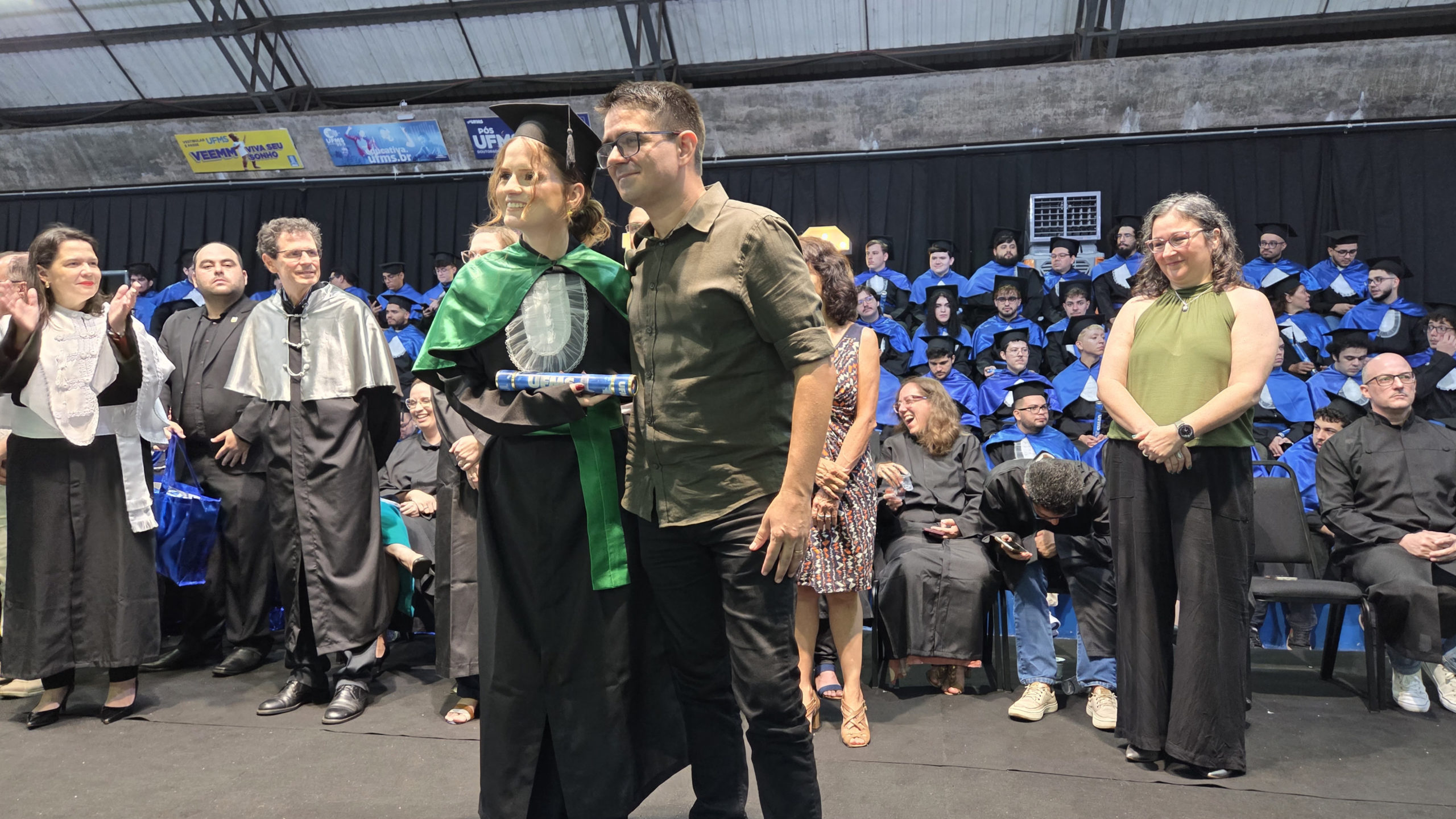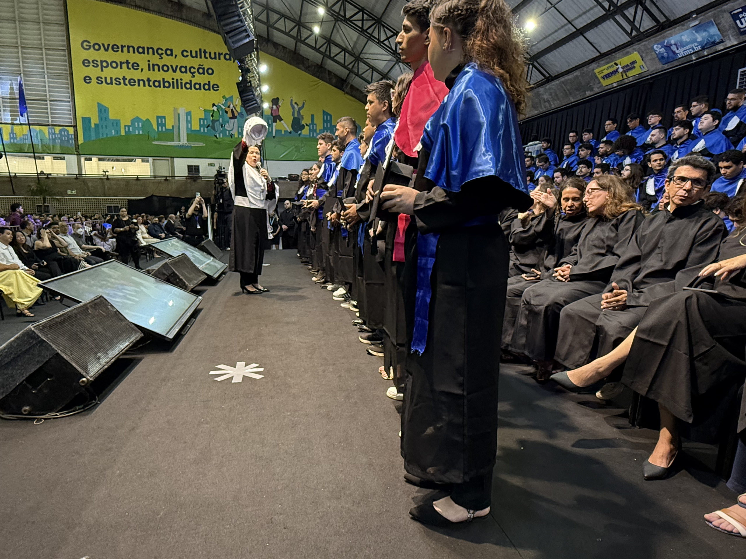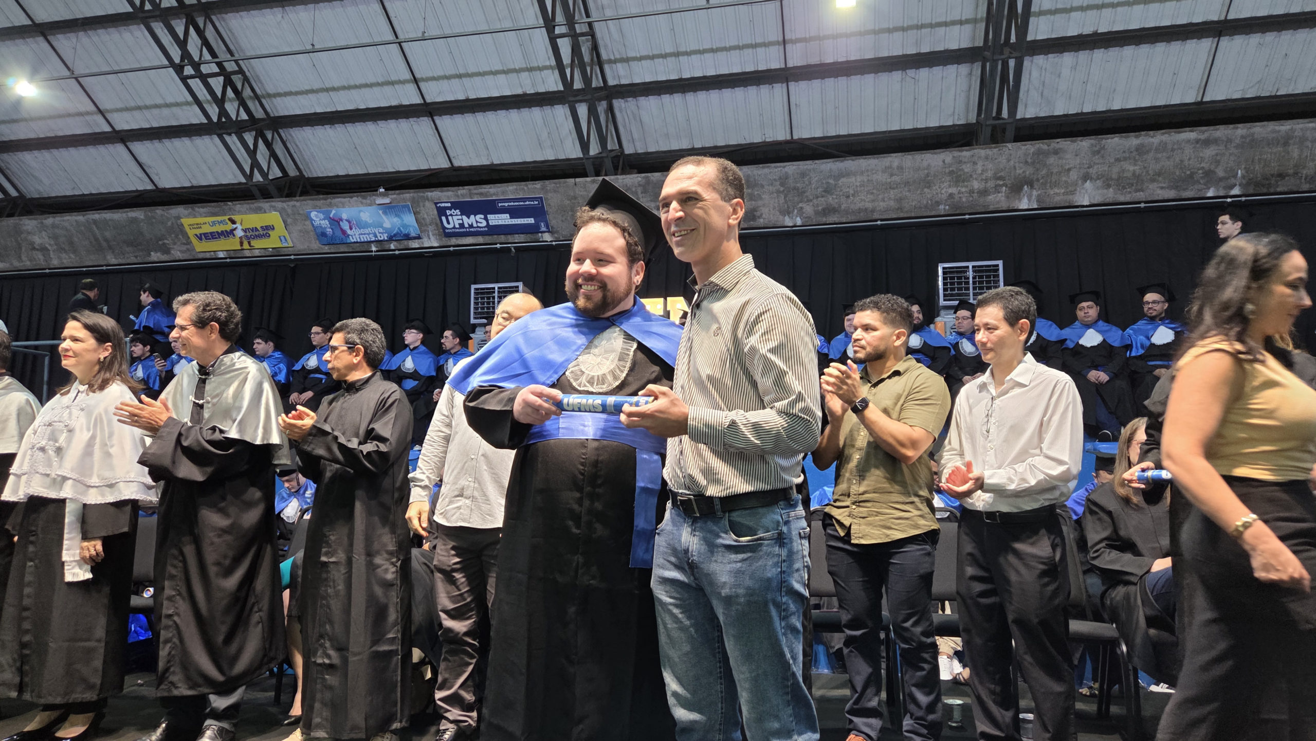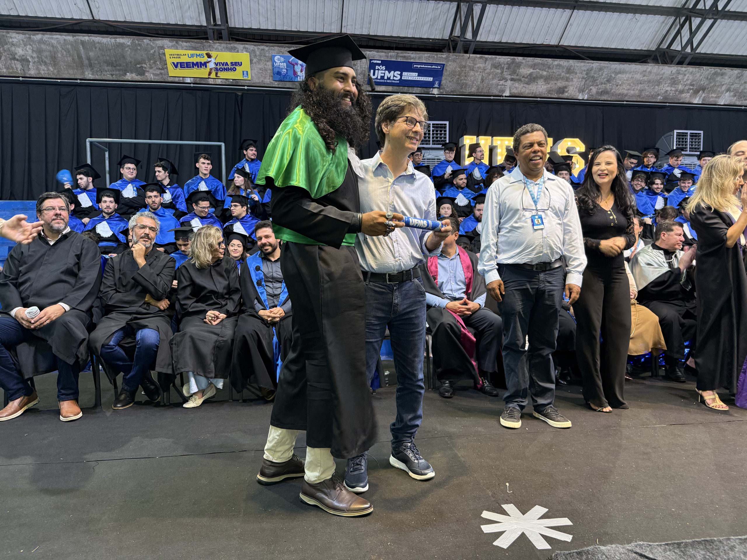 A UFMS de Campo Grande celebrou neste sábado, 13, a cerimônia de colação de grau de 308 formandos da Escola de Administração e Negócios (Esan), das faculdades de Computação (Facom) e de Odontologia (Faodo), além dos institutos de Biociências (Inbio), Matemática (Inma) e Química (Inqui). A solenidade foi realizada no Ginásio Moreninho, com transmissão ao vivo no canal da TV UFMS.