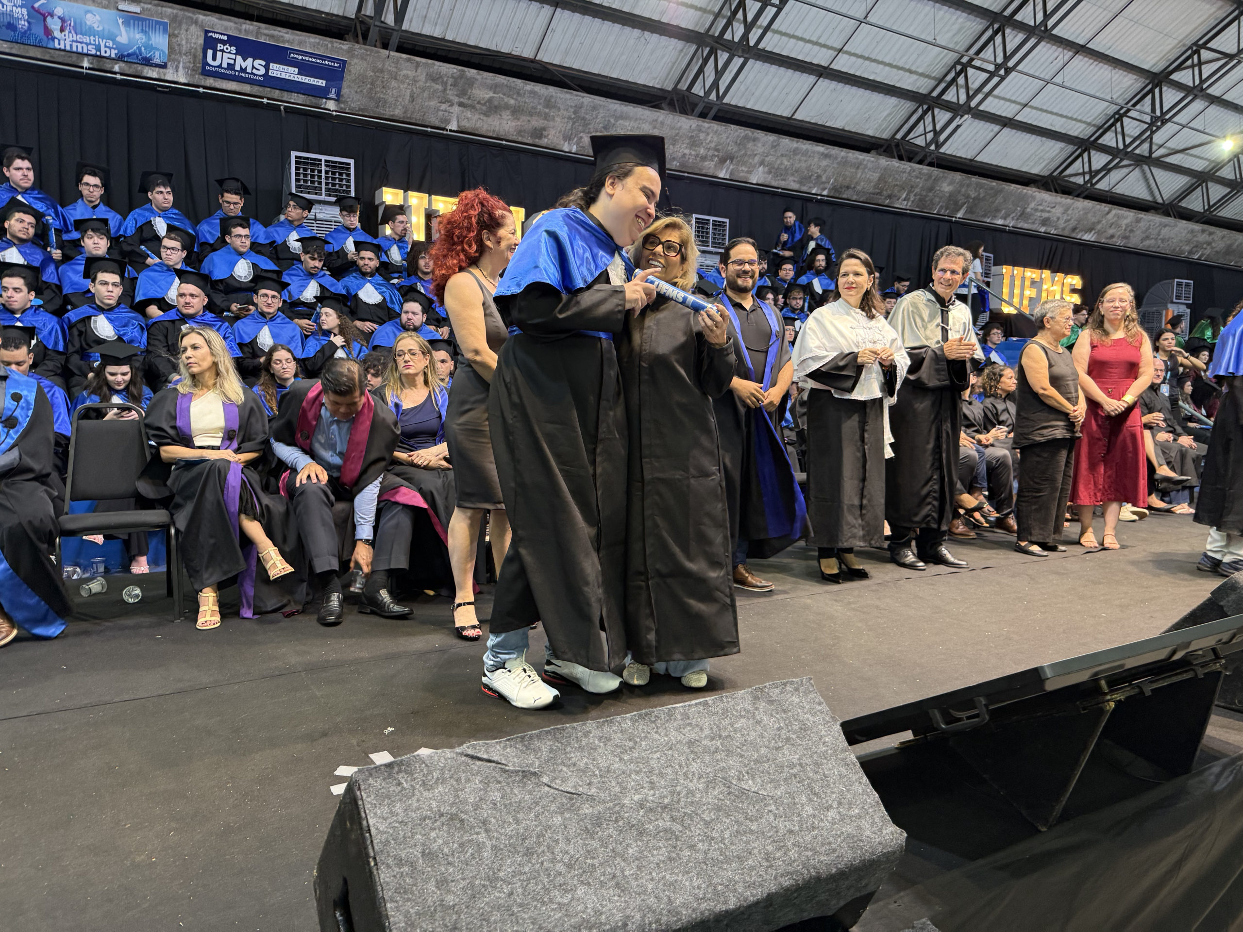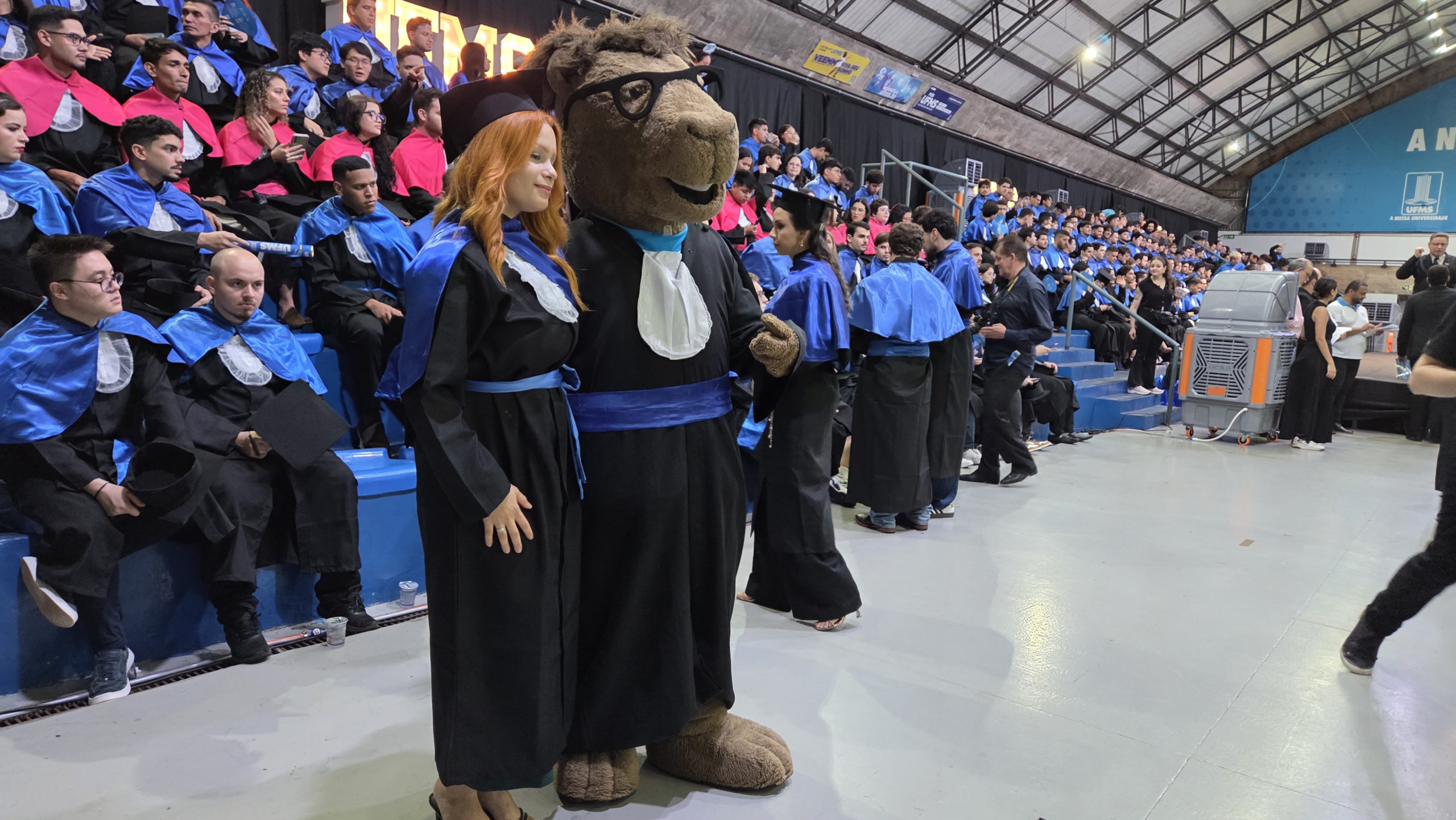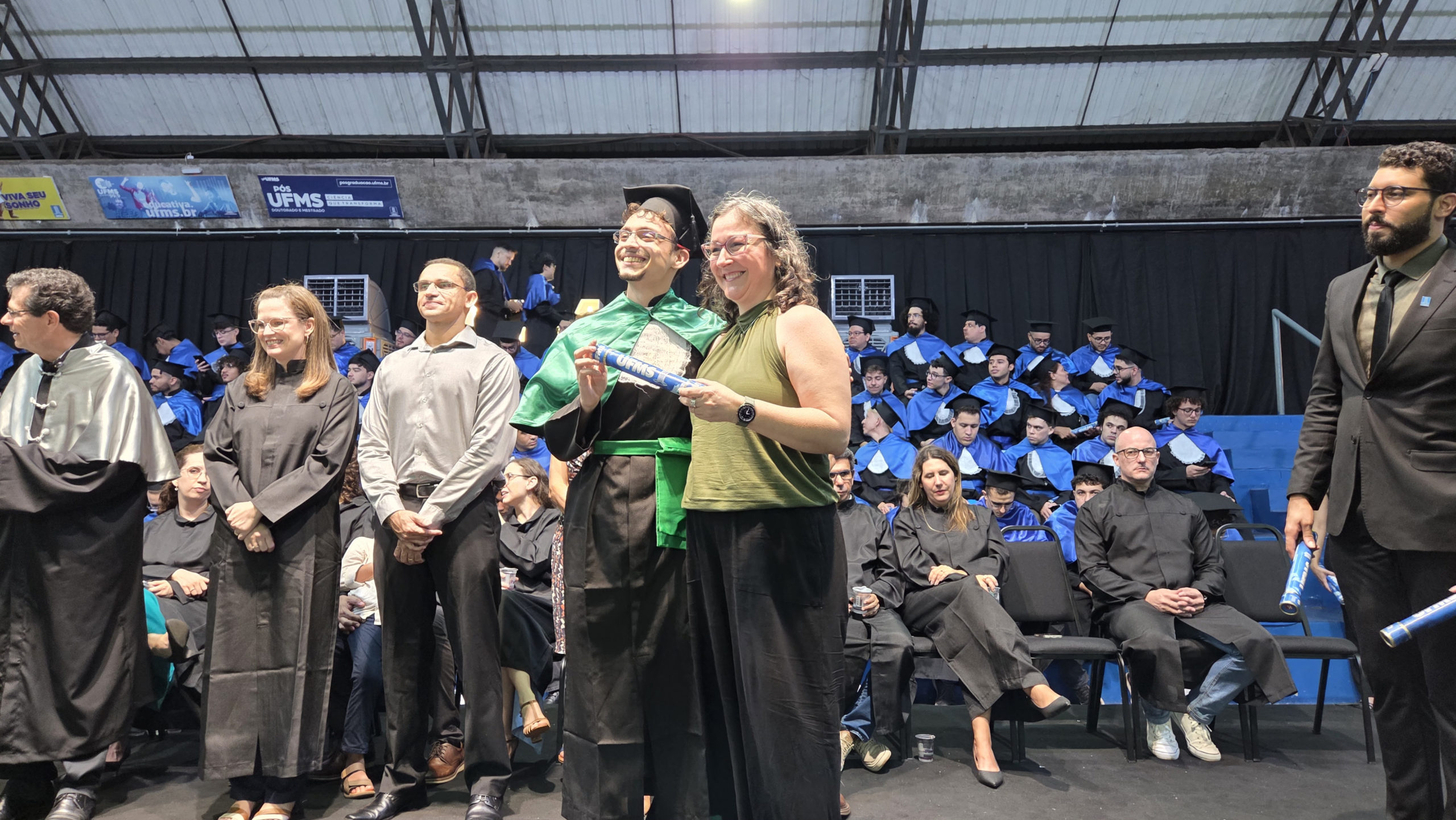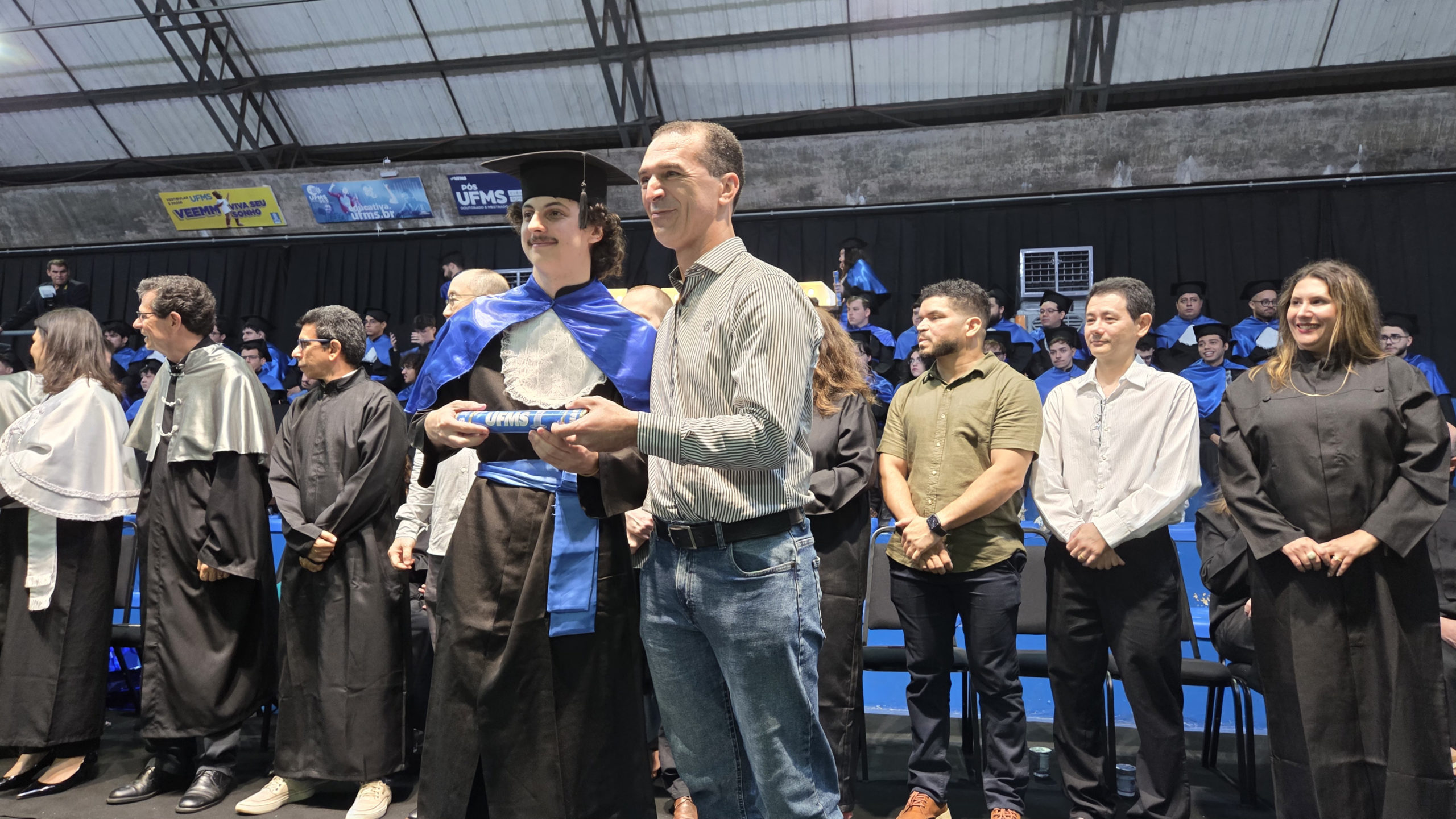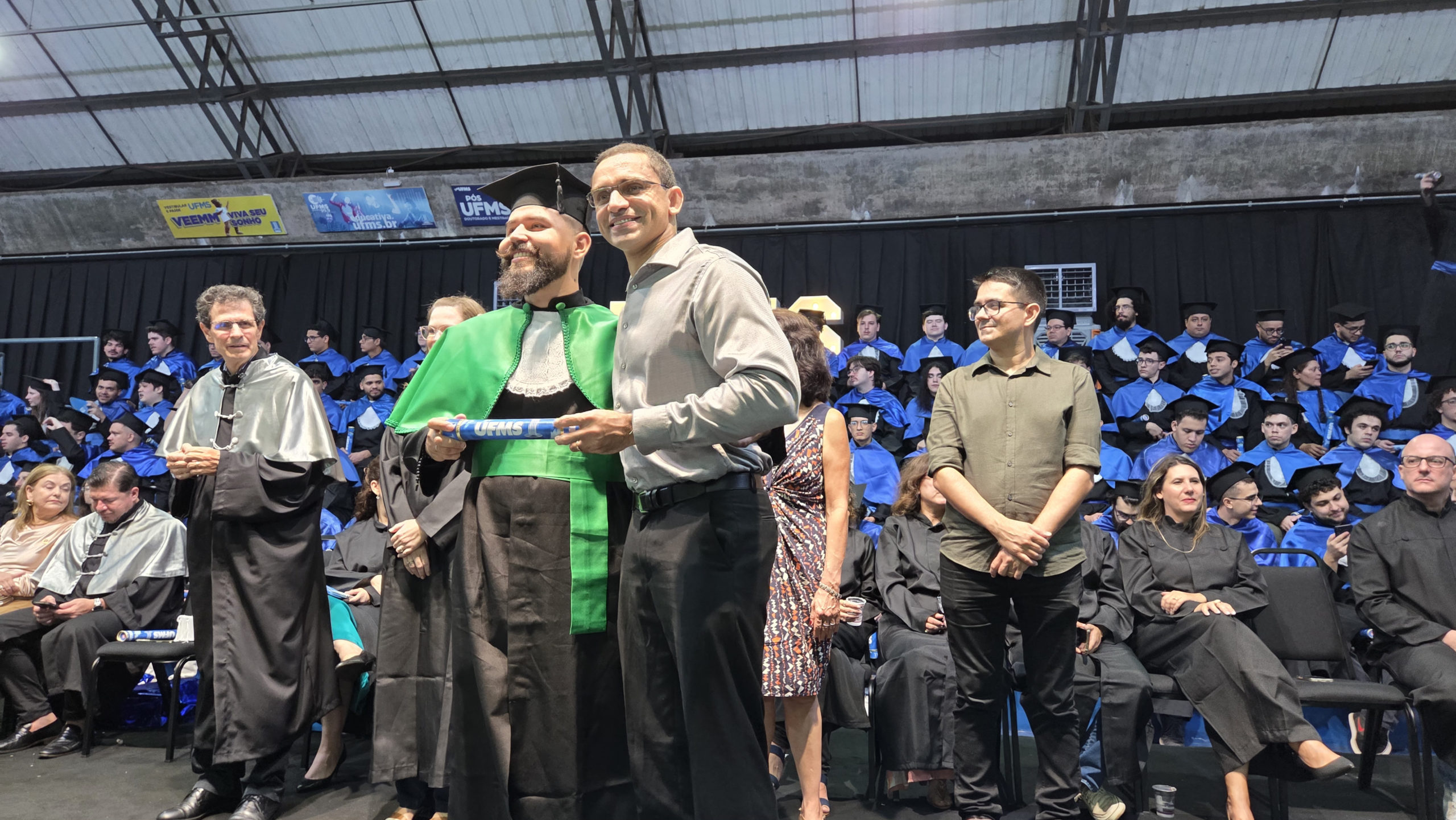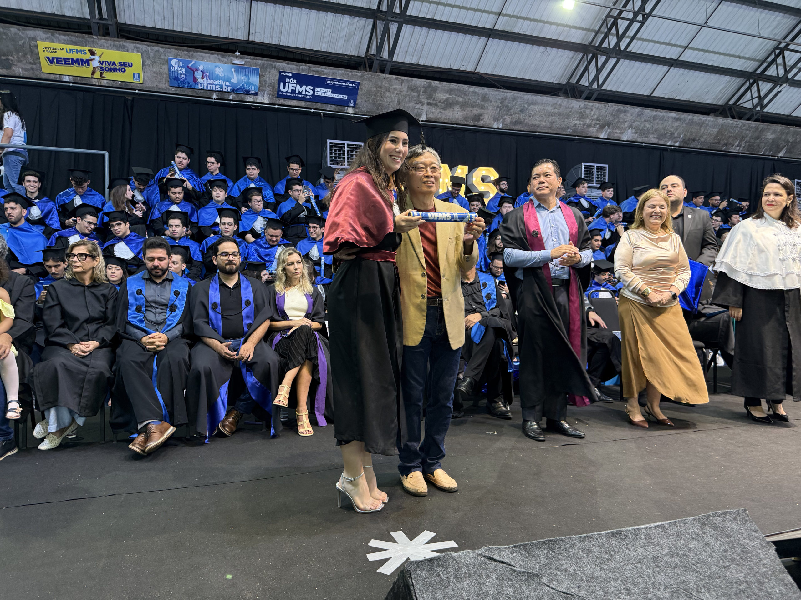 A UFMS de Campo Grande celebrou neste sábado, 13, a cerimônia de colação de grau de 308 formandos da Escola de Administração e Negócios (Esan), das faculdades de Computação (Facom) e de Odontologia (Faodo), além dos institutos de Biociências (Inbio), Matemática (Inma) e Química (Inqui). A solenidade foi realizada no Ginásio Moreninho, com transmissão ao vivo no canal da TV UFMS.