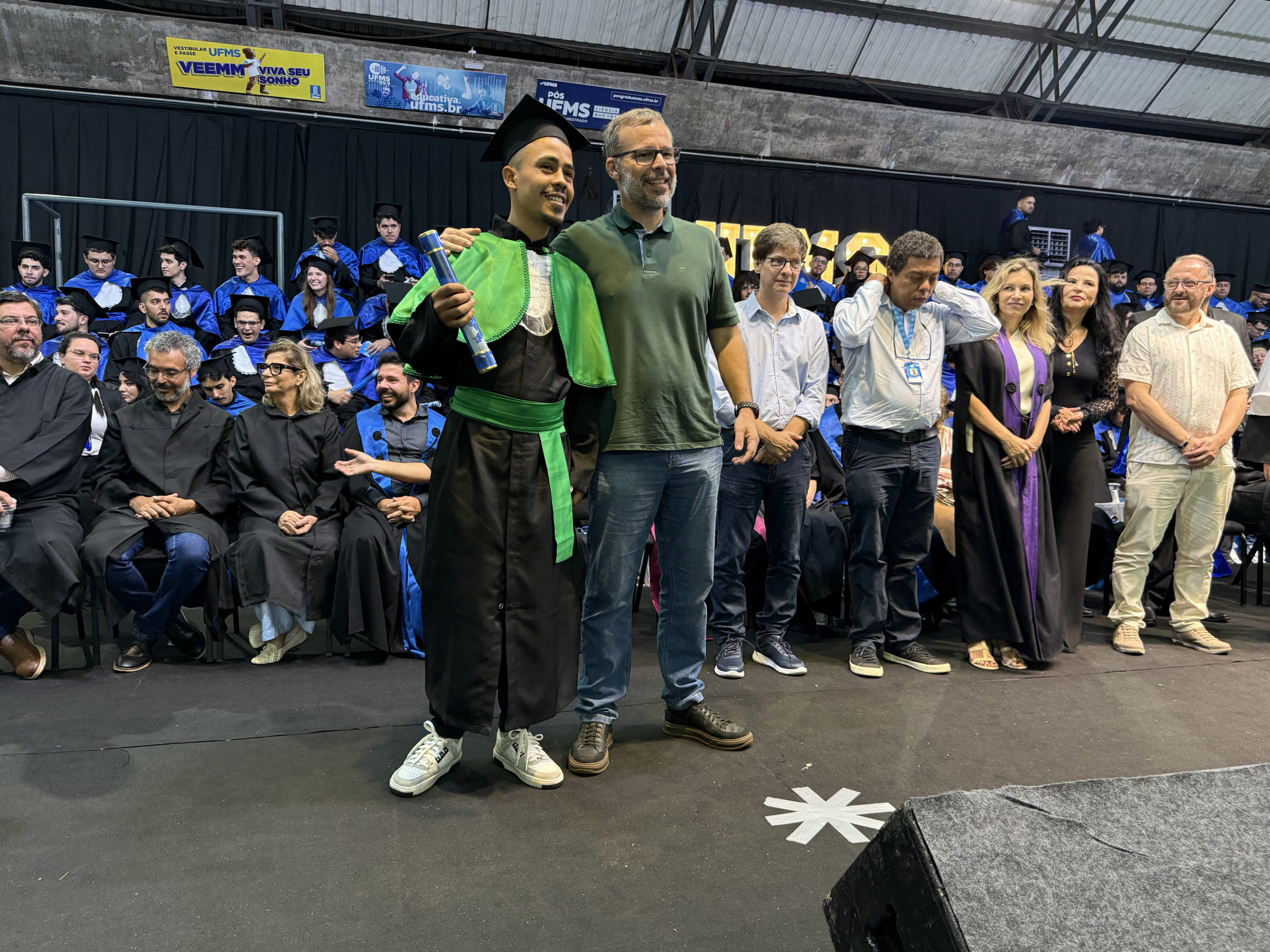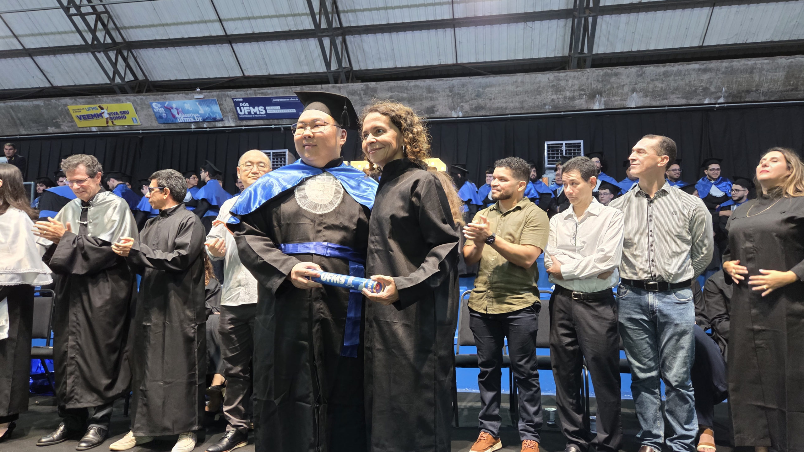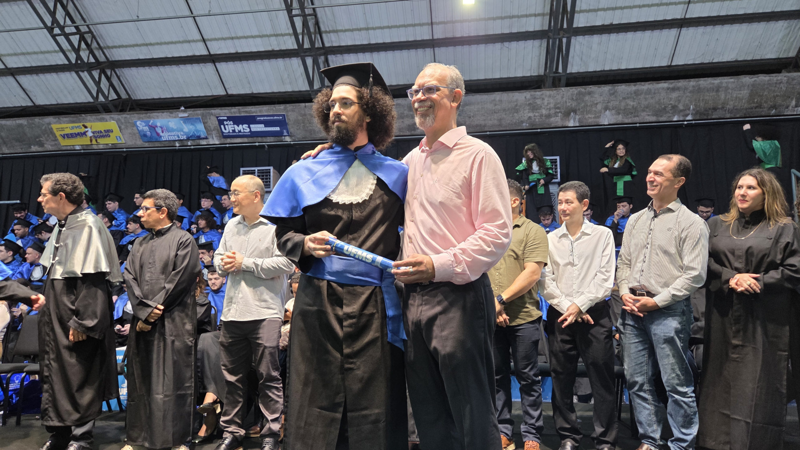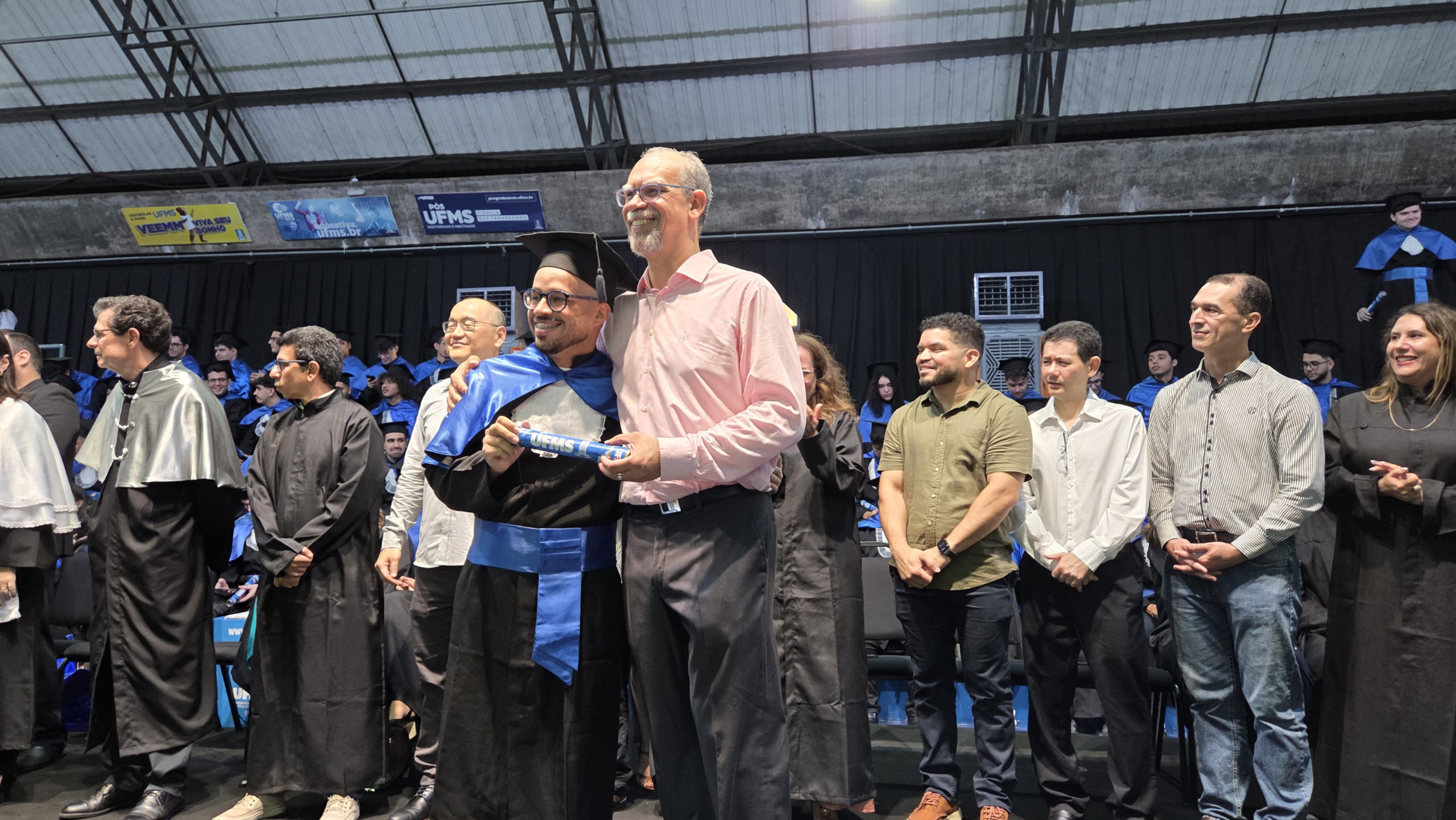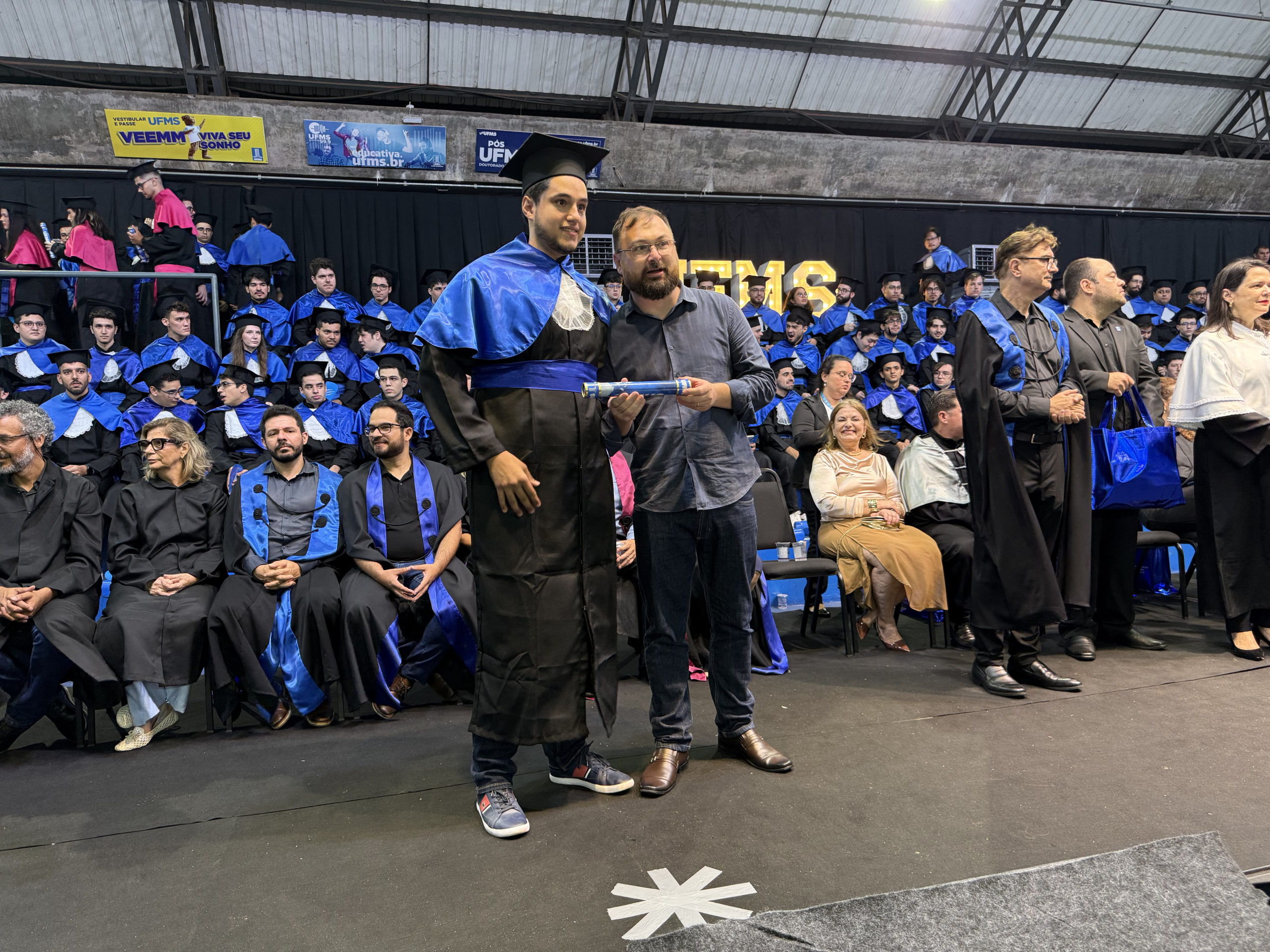 A UFMS de Campo Grande celebrou neste sábado, 13, a cerimônia de colação de grau de 308 formandos da Escola de Administração e Negócios (Esan), das faculdades de Computação (Facom) e de Odontologia (Faodo), além dos institutos de Biociências (Inbio), Matemática (Inma) e Química (Inqui). A solenidade foi realizada no Ginásio Moreninho, com transmissão ao vivo no canal da TV UFMS.
