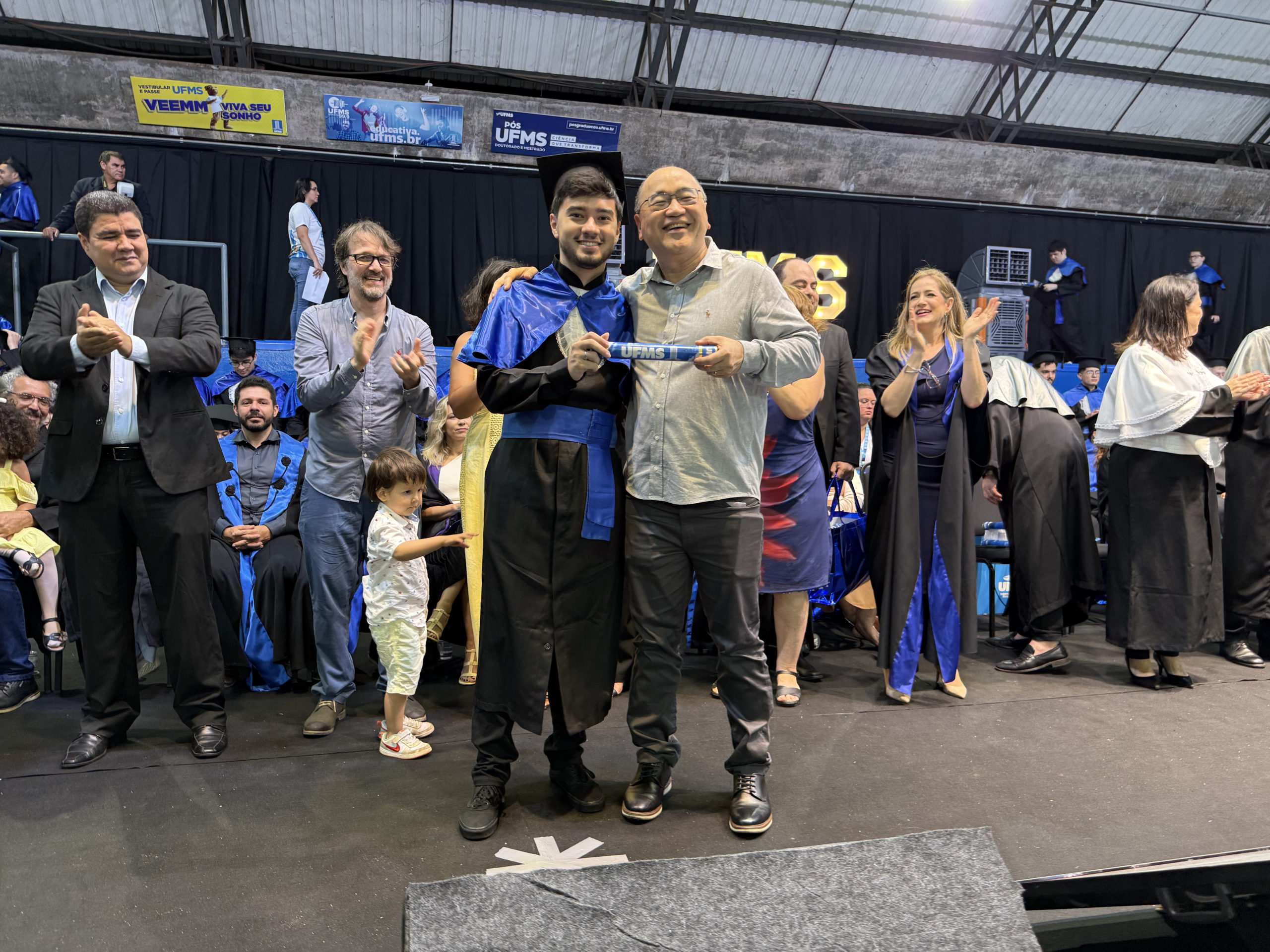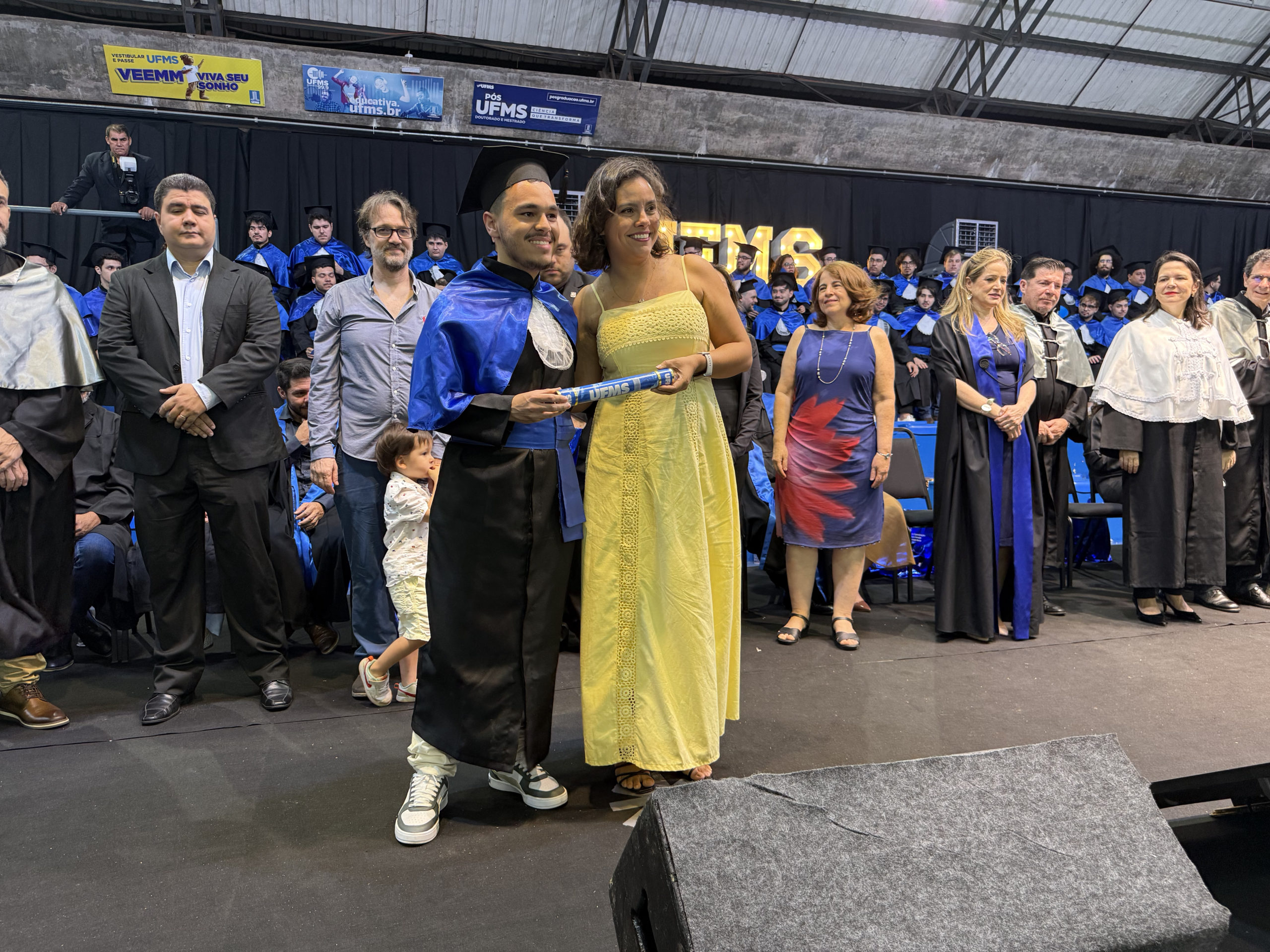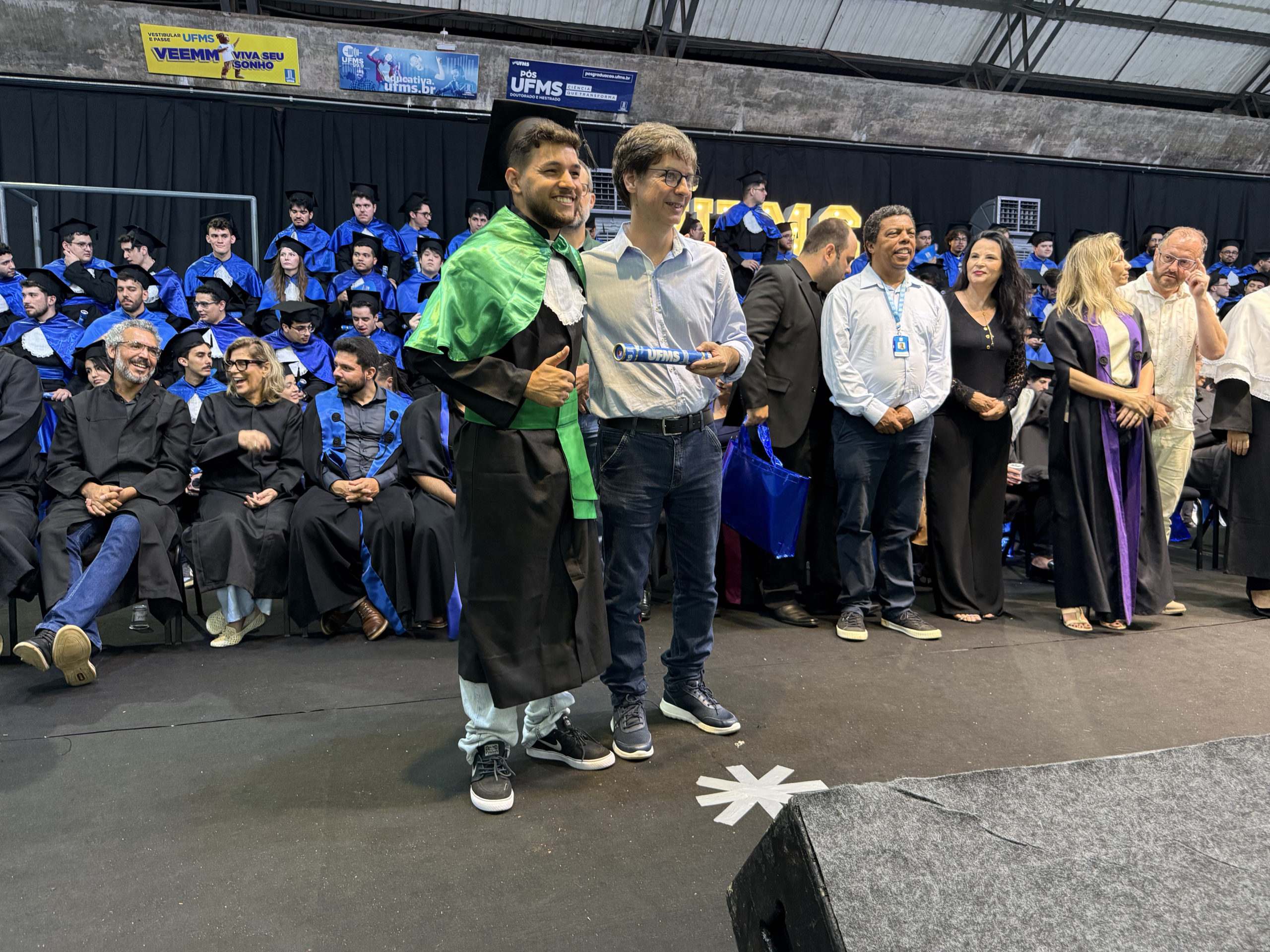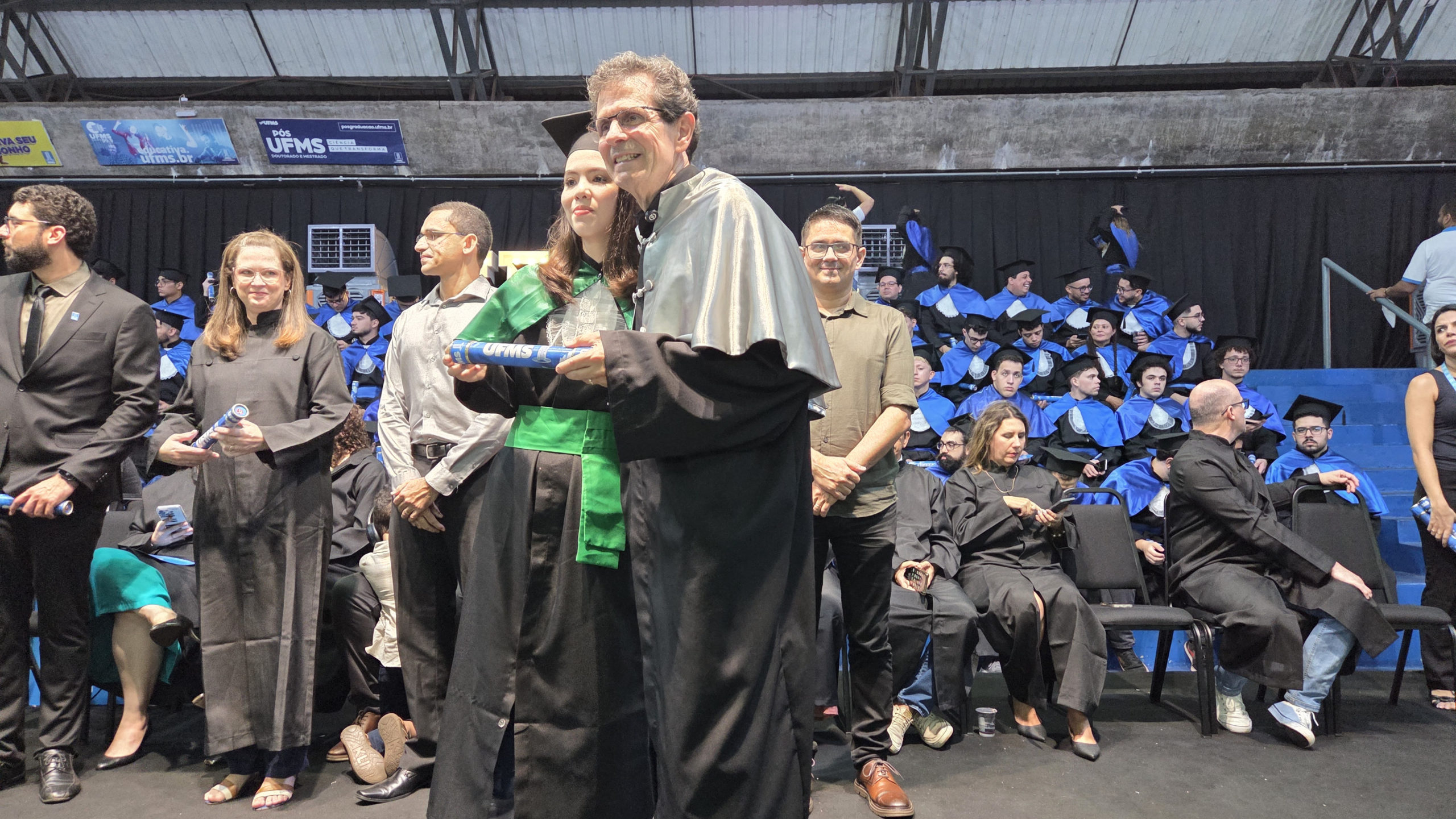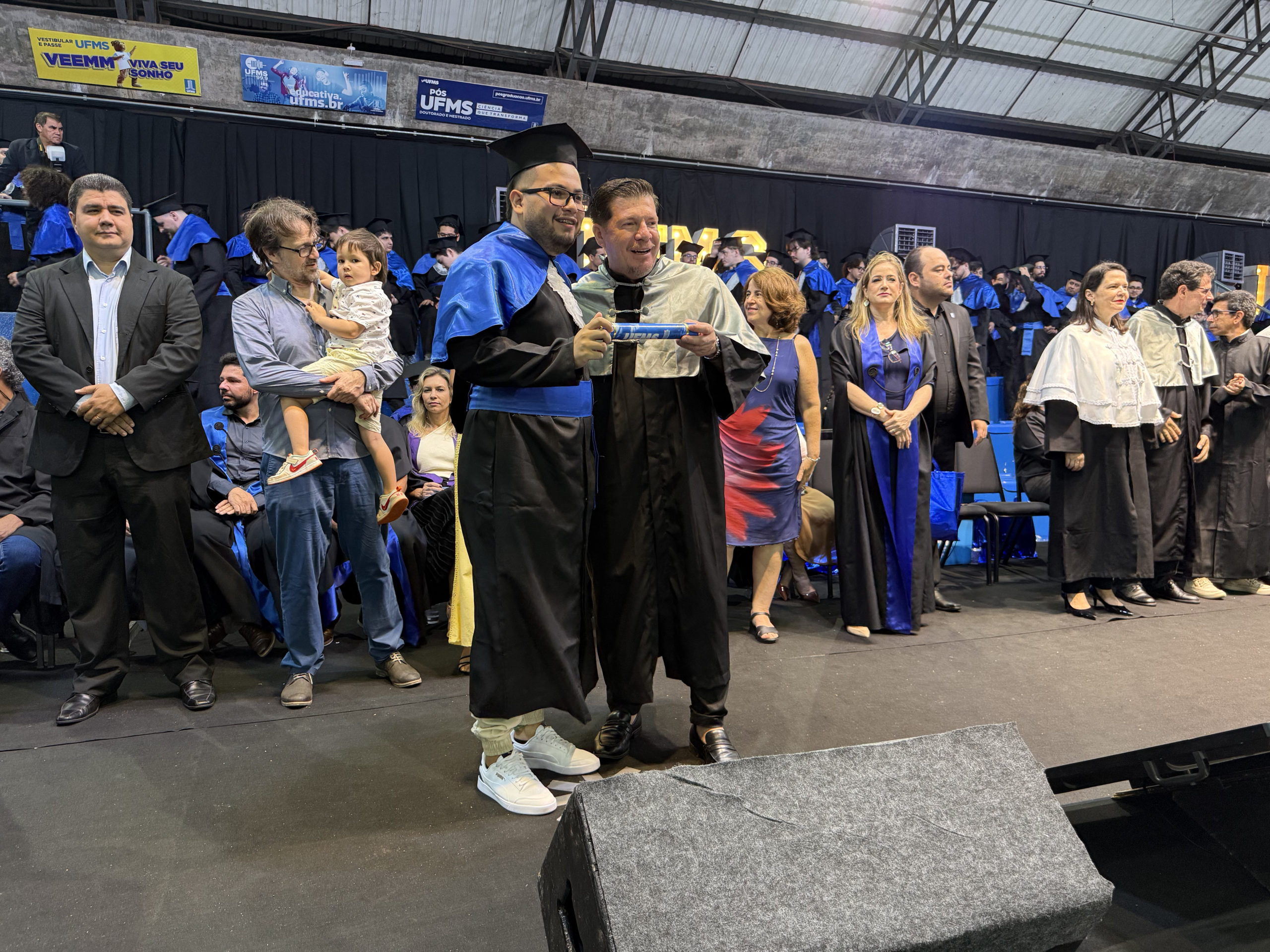 A UFMS de Campo Grande celebrou neste sábado, 13, a cerimônia de colação de grau de 308 formandos da Escola de Administração e Negócios (Esan), das faculdades de Computação (Facom) e de Odontologia (Faodo), além dos institutos de Biociências (Inbio), Matemática (Inma) e Química (Inqui). A solenidade foi realizada no Ginásio Moreninho, com transmissão ao vivo no canal da TV UFMS.