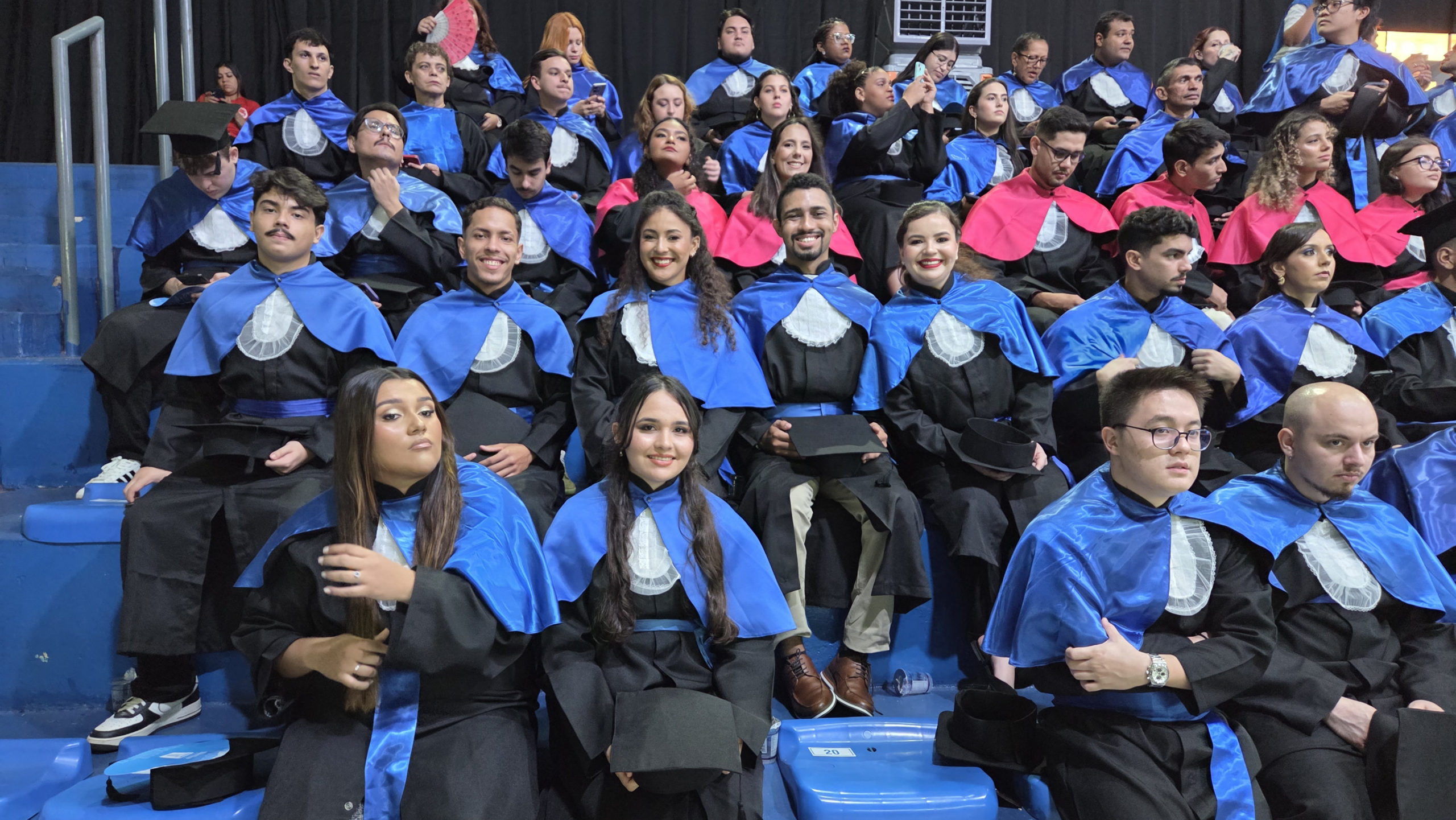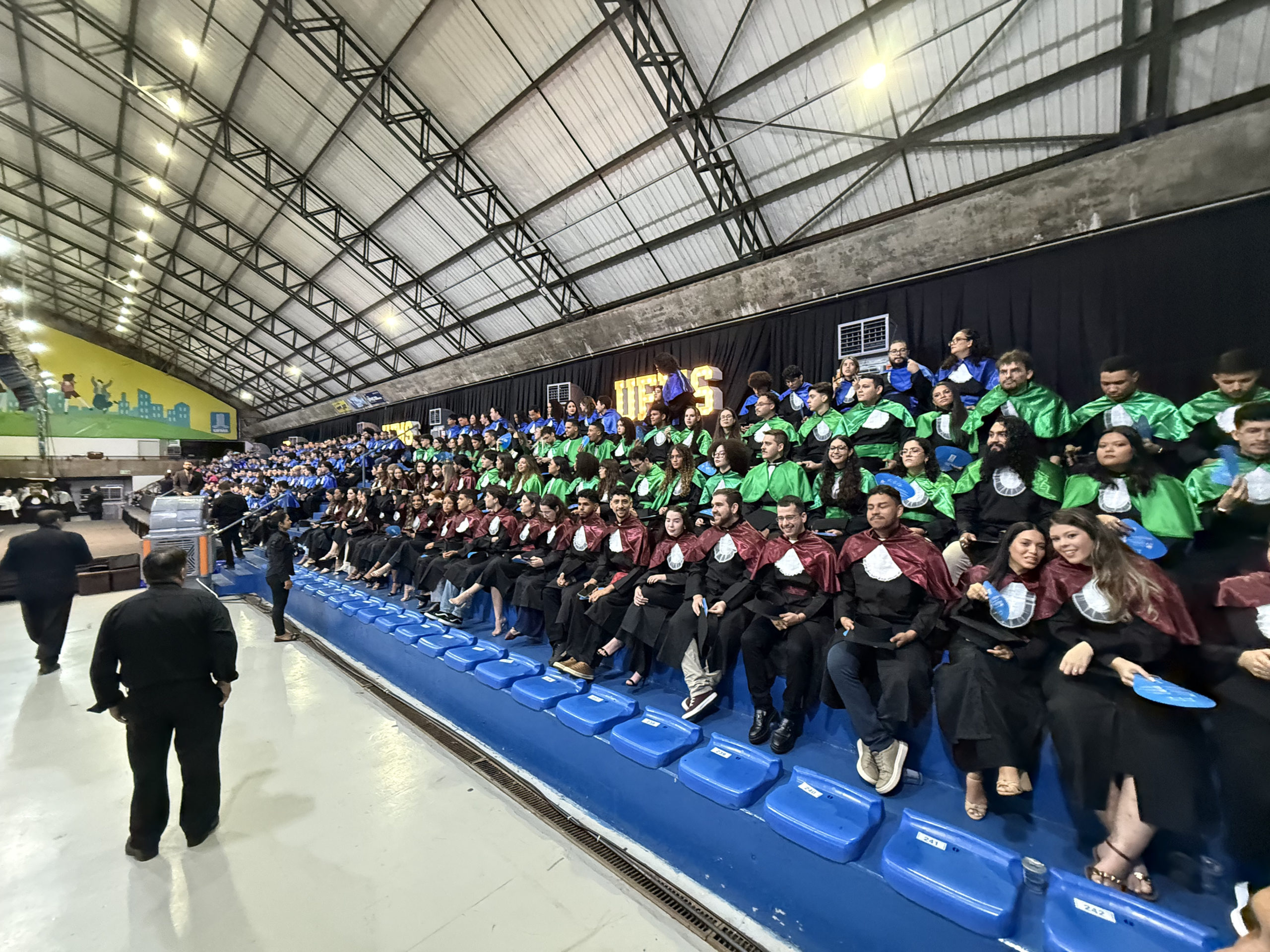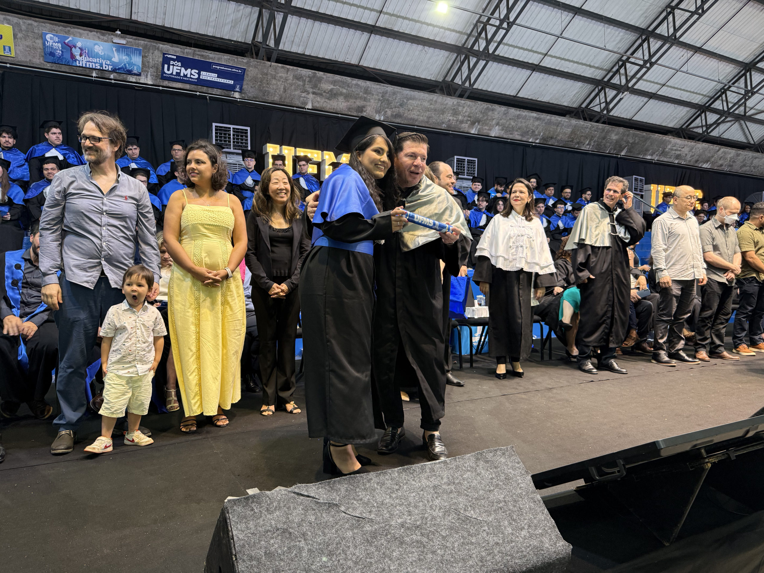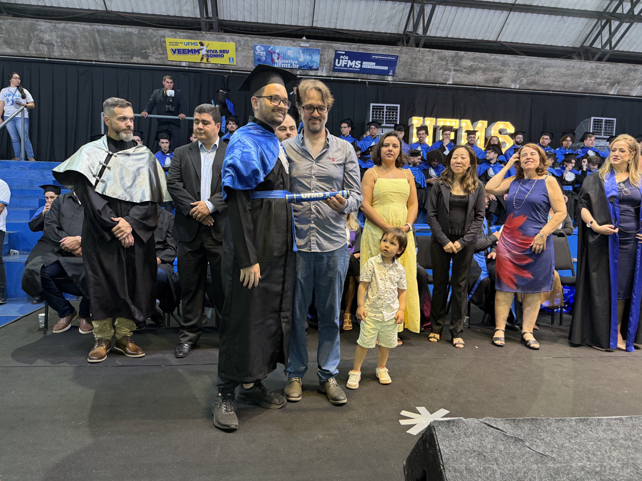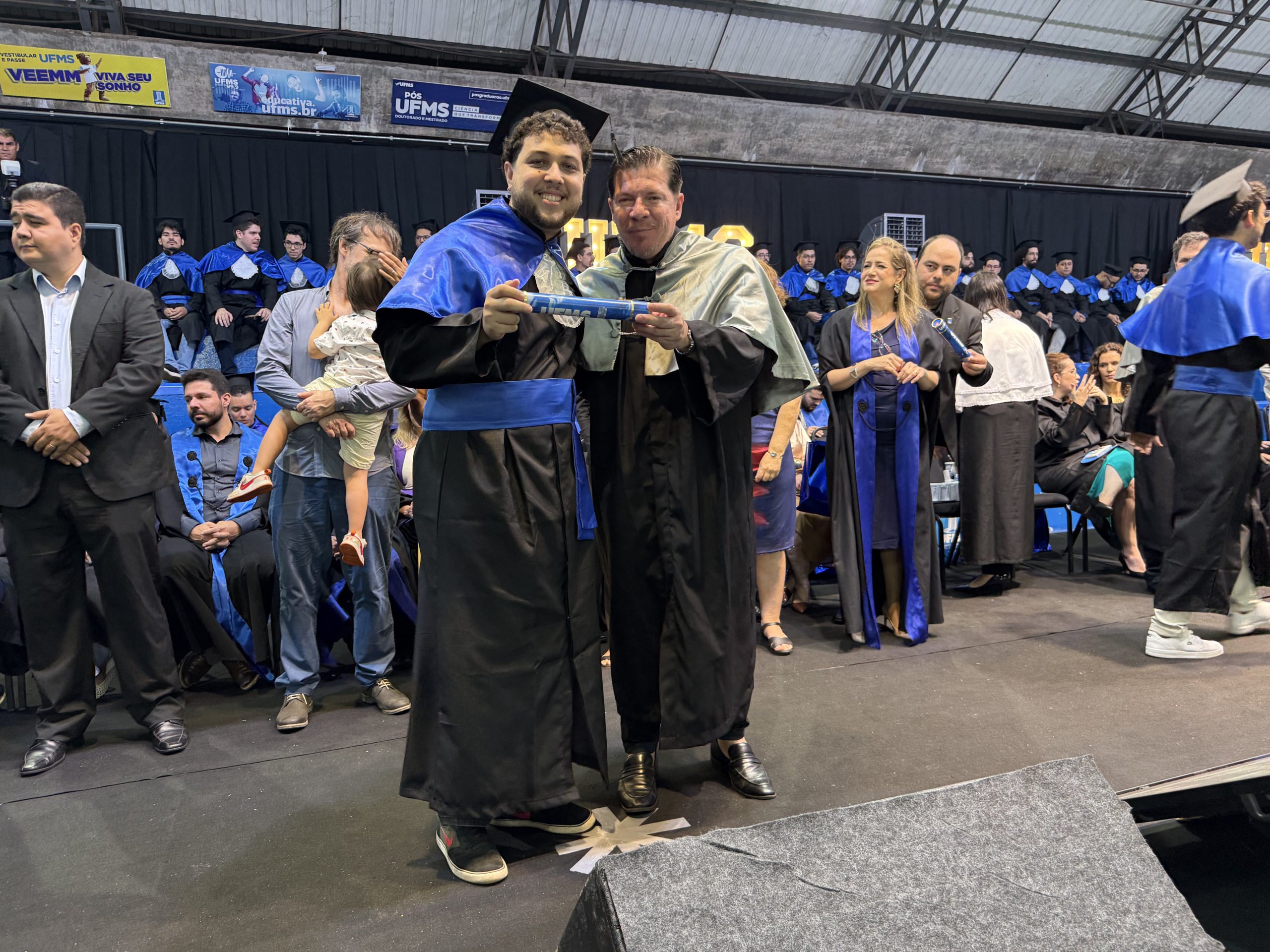 A UFMS de Campo Grande celebrou neste sábado, 13, a cerimônia de colação de grau de 308 formandos da Escola de Administração e Negócios (Esan), das faculdades de Computação (Facom) e de Odontologia (Faodo), além dos institutos de Biociências (Inbio), Matemática (Inma) e Química (Inqui). A solenidade foi realizada no Ginásio Moreninho, com transmissão ao vivo no canal da TV UFMS.