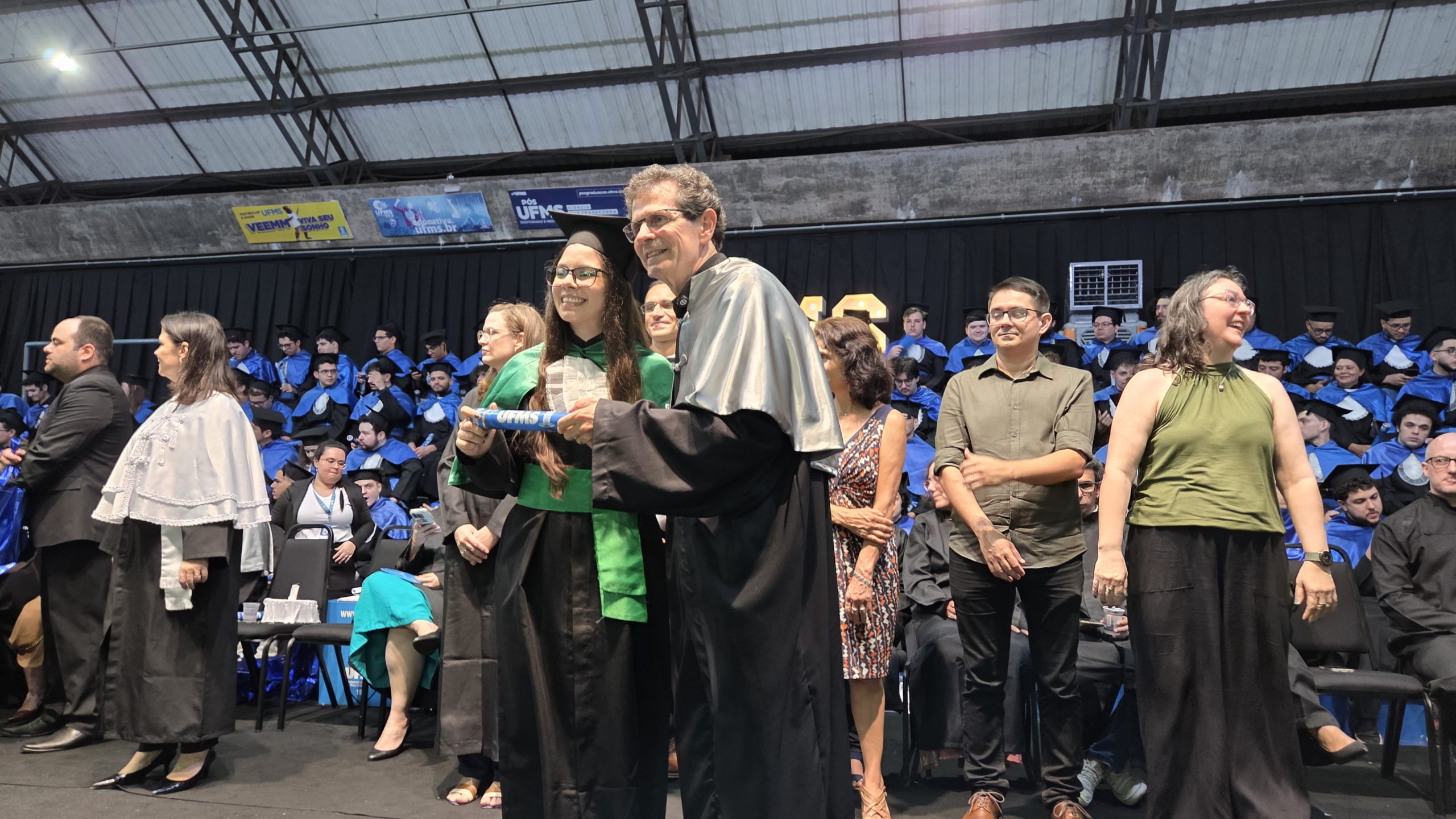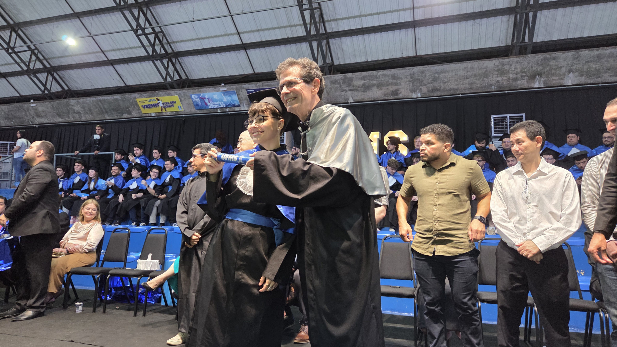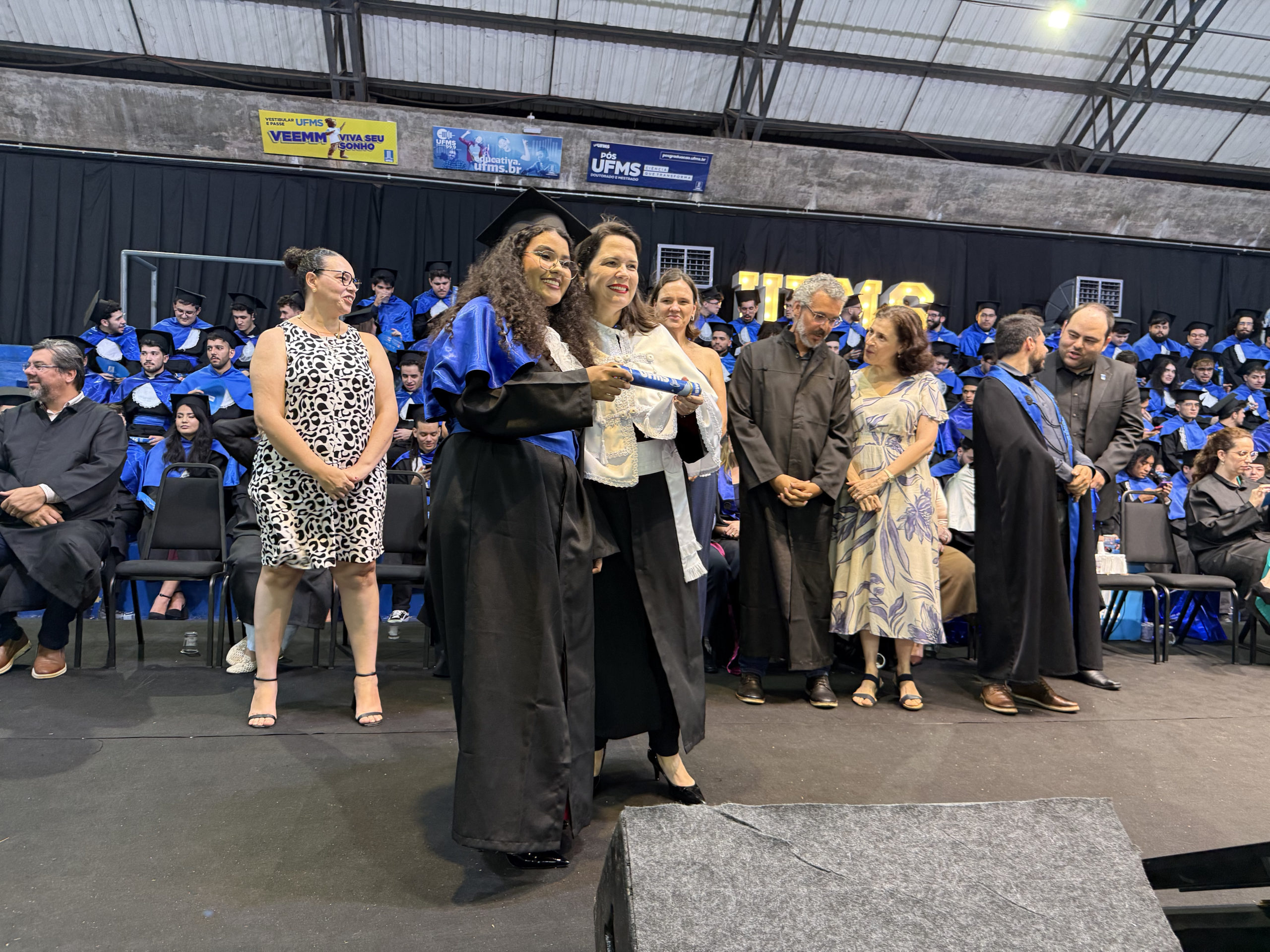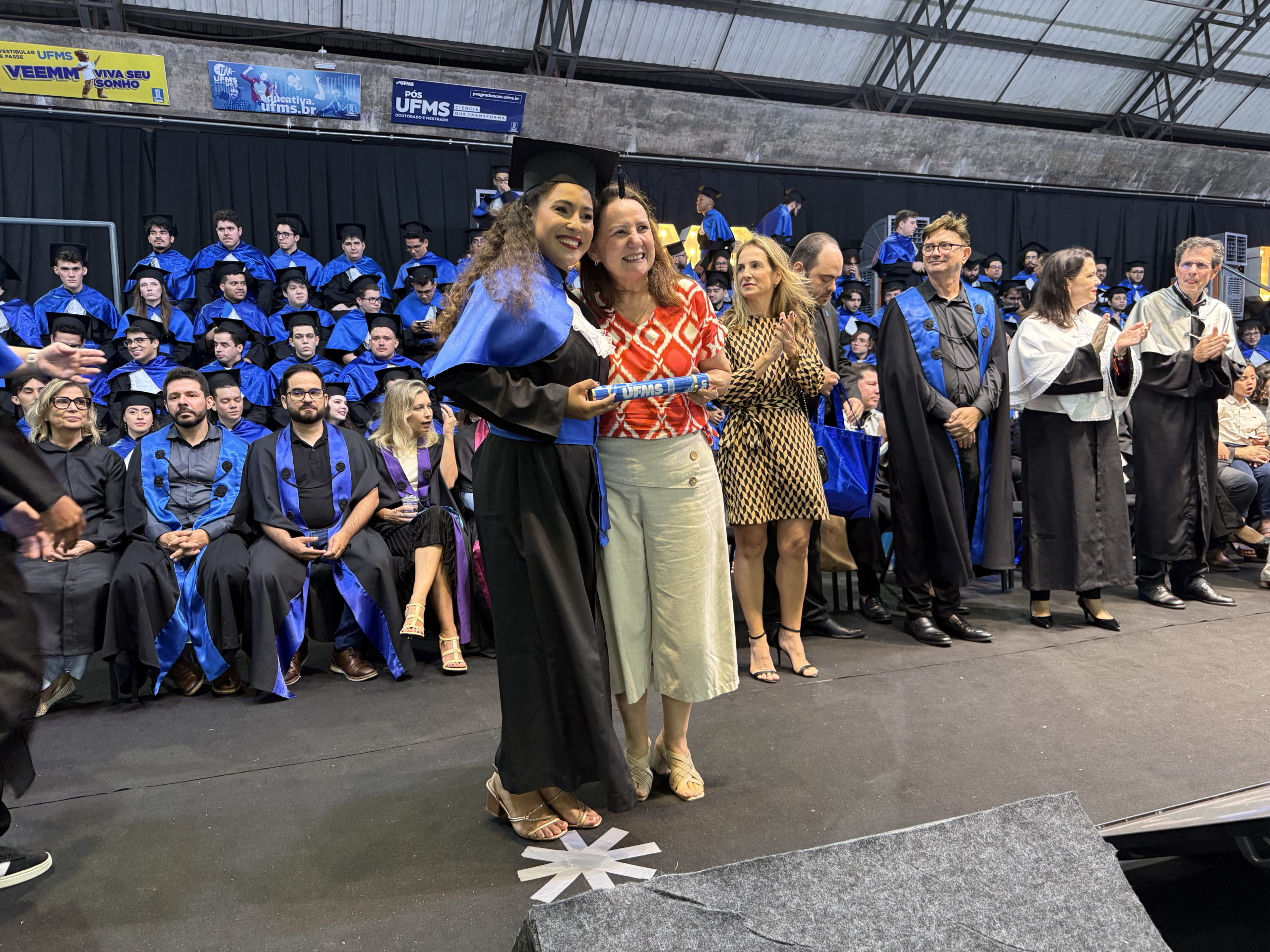 A bacharel em Ciências Econômicas Jéssica Gonçalez Ribeiro representou os colegas como oradora. “A Universidade foi para nós um ambiente de formação intelectual e humana, onde aprendemos a questionar e a lidar com a complexidade da realidade. Fomos desafiados diariamente, e cada um sabe por tudo o que passou, mas superamos as adversidades e construímos nosso próprio caminho e conquistas. Deixamos o nosso agradecimento à UFMS por manter viva a missão da educação pública, gratuita e de qualidade. Encerramos aqui um ciclo importante e iniciamos muitos outros. Levaremos conosco o orgulho dessa conquista e o compromisso de honrar tudo o que aprendemos até aqui”, concluiu.