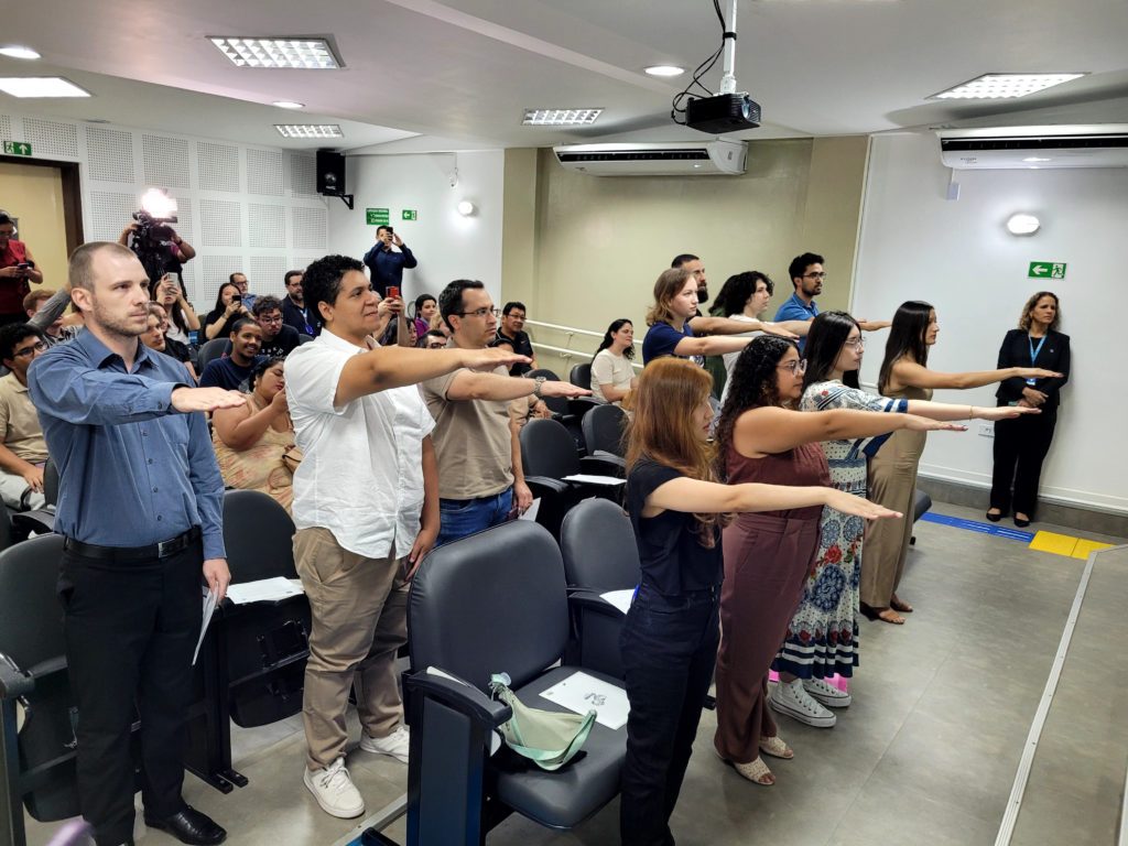 O diretor da Agência de Inovação, Saulo Moreira, deixou uma mensagem de compromisso e respeito durante a solenidade. “A gente tem muita responsabilidade nesse processo de geração de conhecimento dentro da nossa área de atuação, seja no ensino, na pesquisa, no desenvolvimento e na inovação, seja na extensão. Então, tudo isso é muito gratificante para quem atua como parte desse processo. É um orgulho que eu mesmo tenho e espero que todos vocês, a partir de hoje, também possam ter”, elencou.
