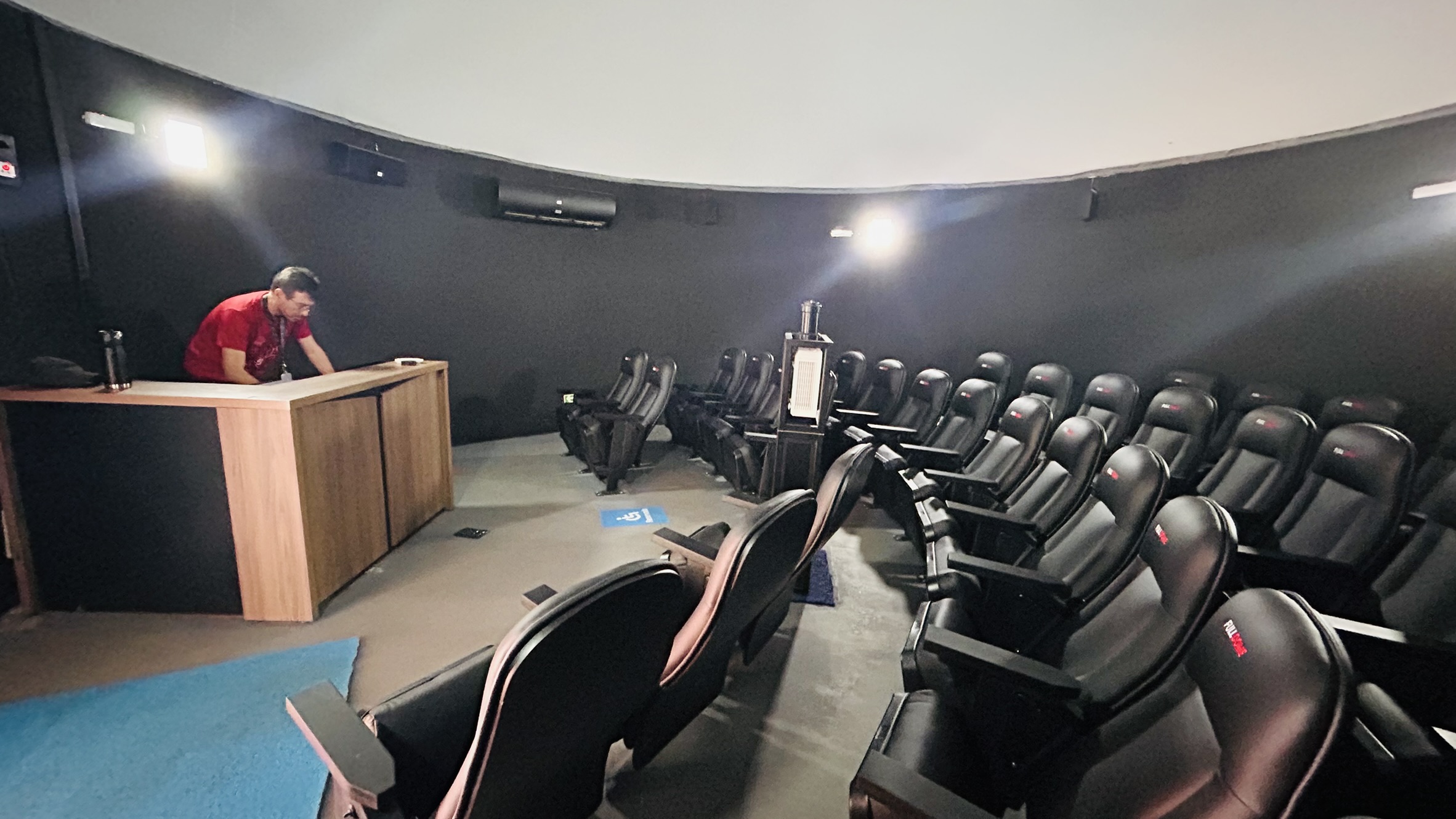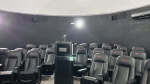 Além da imagem, o Planetário também possui um sistema especial de som e poltronas reclináveis. “O espaço também conta com um sistema de som 5.1, que proporciona não apenas uma experiência visual, mas também auditiva, com percepção diferenciada do som conforme a posição dentro do ambiente”, fala. “Além das sessões abertas ao público, o espaço também poderá ser utilizado para aulas. Na licenciatura em Física, por exemplo, há disciplinas de introdução à astronomia que podem aproveitar essa estrutura. Uma coisa é ver na tela do computador, outra é ter uma experiência imersiva como essa. Outros professores também já demonstram interesse em utilizar o espaço para enriquecer suas atividades”, salienta Além-Mar.