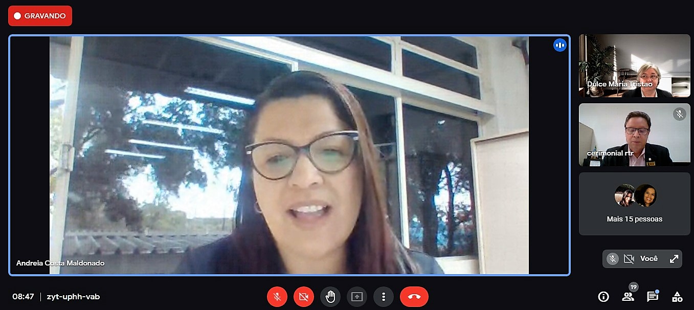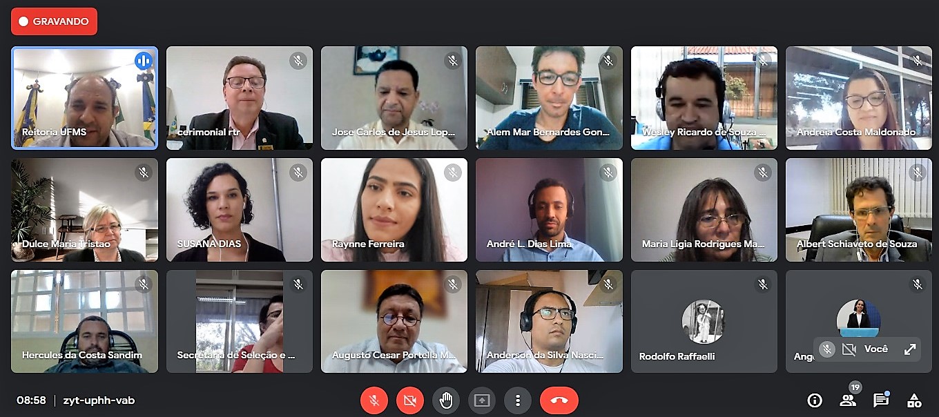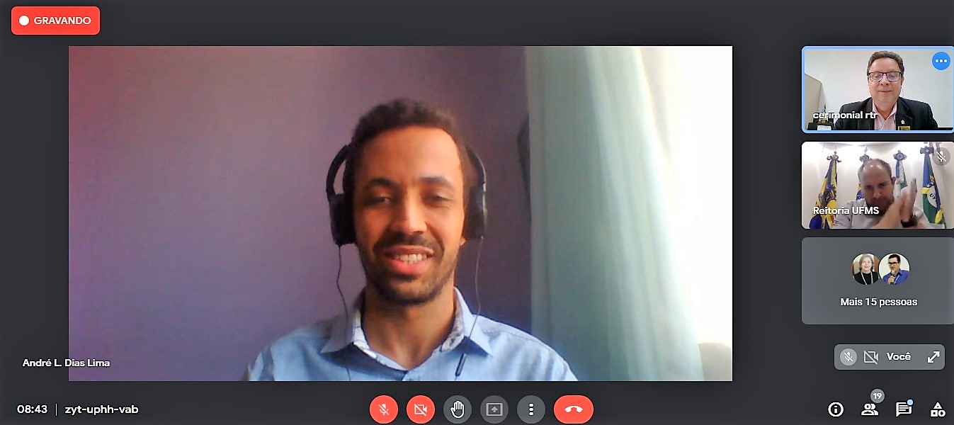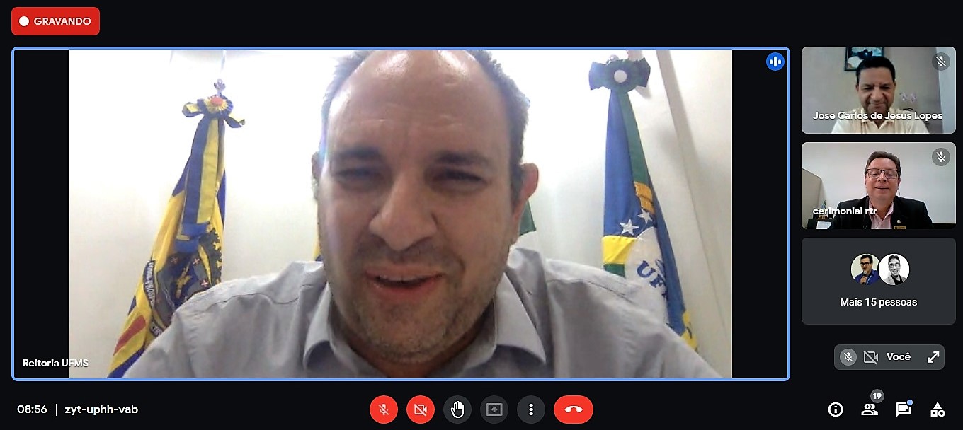 A cerimônia foi realizada pela plataforma Google Meet e contou também com a participação dos pró-reitores de Administração e Infraestrutura, Augusto Malheiros; de Pesquisa e Pós-graduação Maria Ligia Macedo; de Assistência Estudantil Albert Schiaveto; e de Planejamento, Orçamento e Finanças Dulce Maria Tristão; além do diretor da Agência de Educação Digital e a Distância Hércules Sandim; do chefe da Diretoria de Desenvolvimento Pessoal e Profissional da Progep José Carlos Crisóstomo e da secretária de Seleção e Movimentação da Progep Luciana Marta.