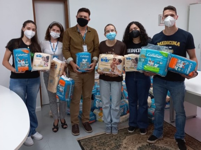 O Hospital Universitário Maria Aparecida Pedrossian (Humap-UFMS/Ebserh) recebeu na manhã do dia 18 a doação de 3.850 fraldas (infantis e adultos) fruto do Trote Solidário realizado pelos acadêmicos da Famed UFMS (Faculdade de Medicina na Universidade Federal de Mato Grosso do Sul). O Trote Solidário integrou os novos acadêmicos do curso de medicina ao ambiente universitário, além de aproximá-los dos veteranos e de despertar em todos o comprometimento com causas sociais. A ação resultou na arrecadação de 3.850 fraldas descartáveis infantil e adulto em prol de pacientes carentes do hospital.