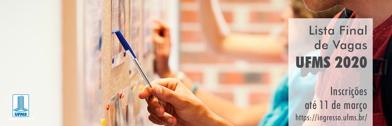 Todas as informações sobre o processo seletivo, inscrição e demais procedimentos para concorrer na Lista Final de Vagas 2020 podem ser obtidas no edital disponível no site: ingresso.ufms.br.